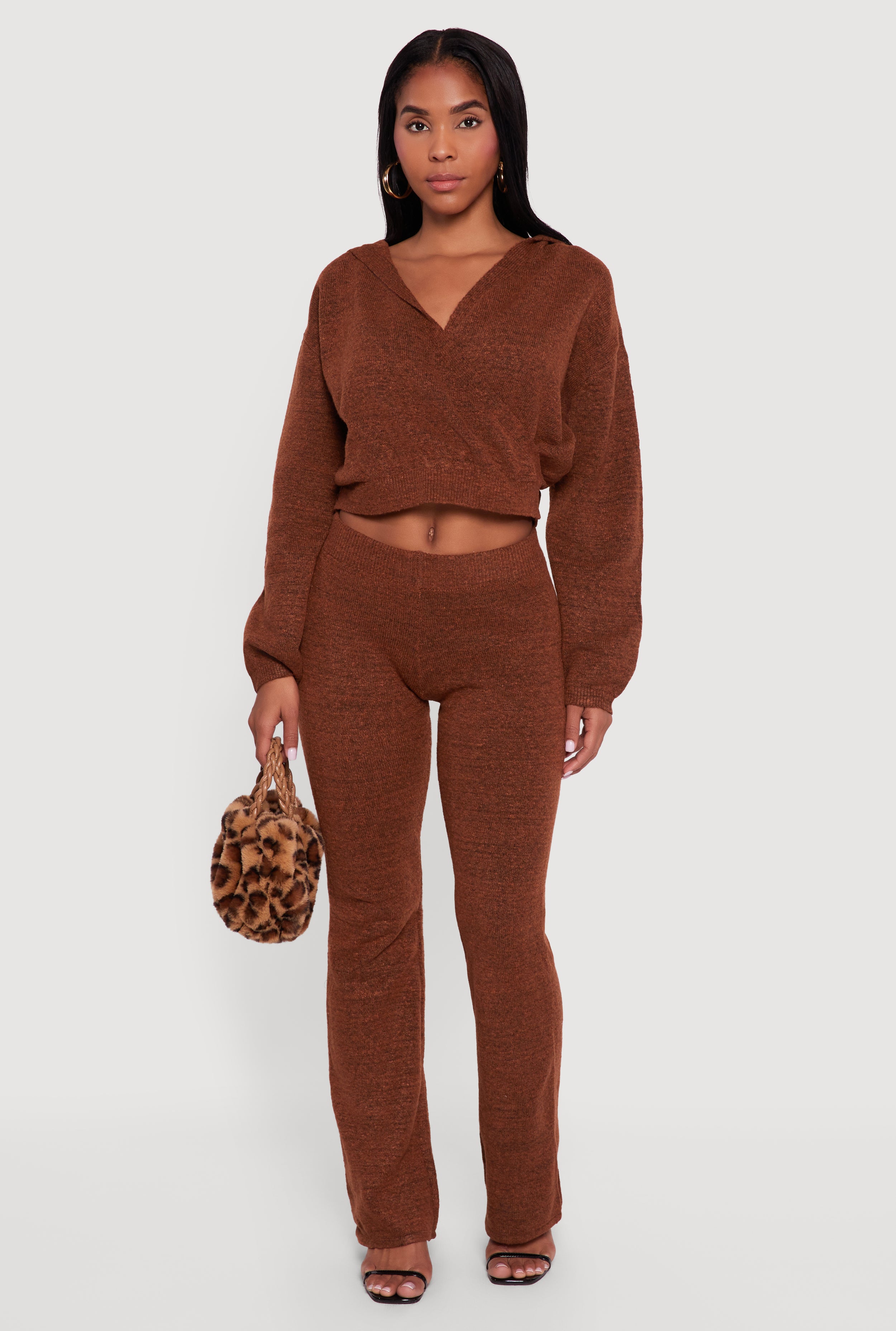 Almost Famous Brushed Knit Cropped Faux Wrap Sweater Hoodie