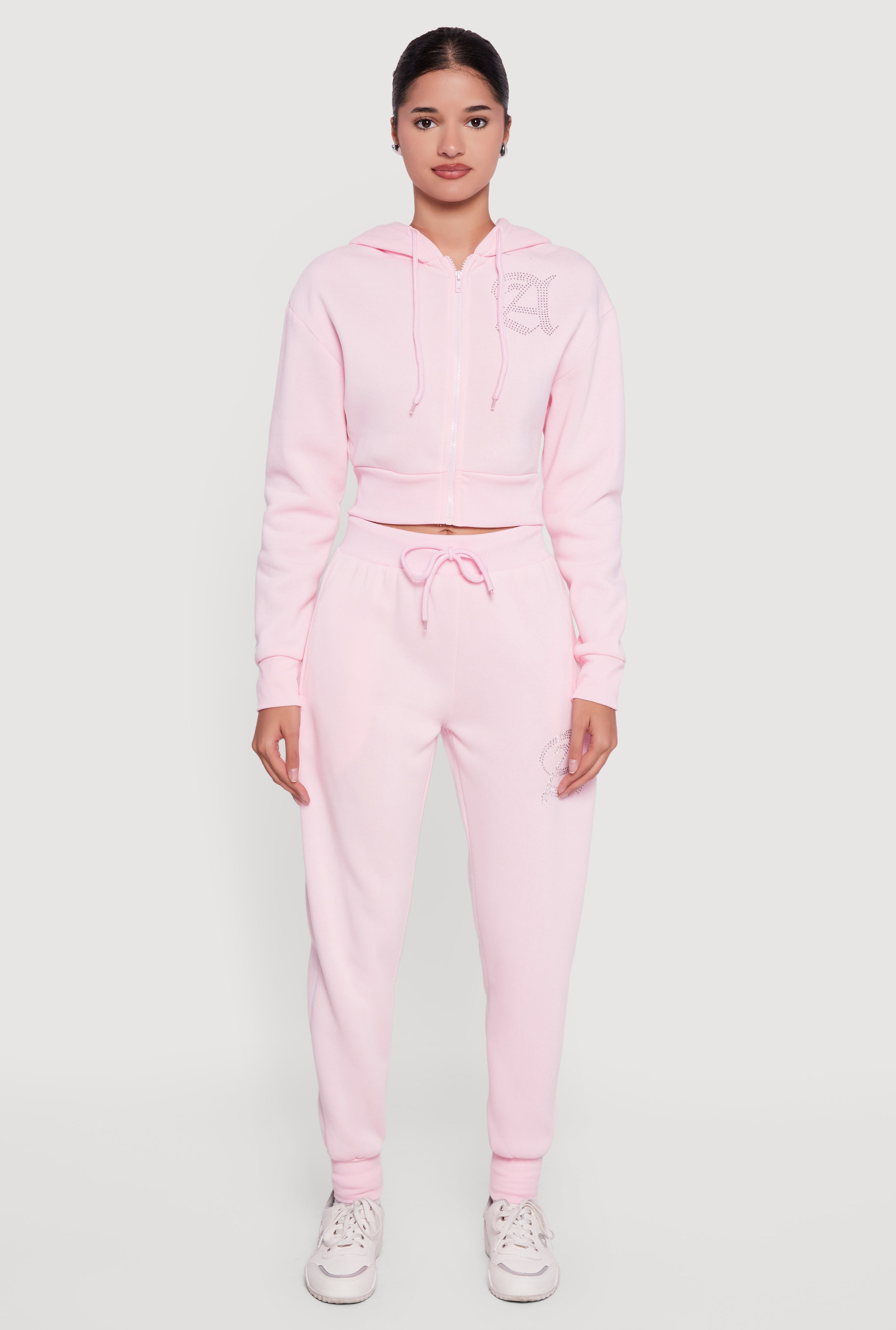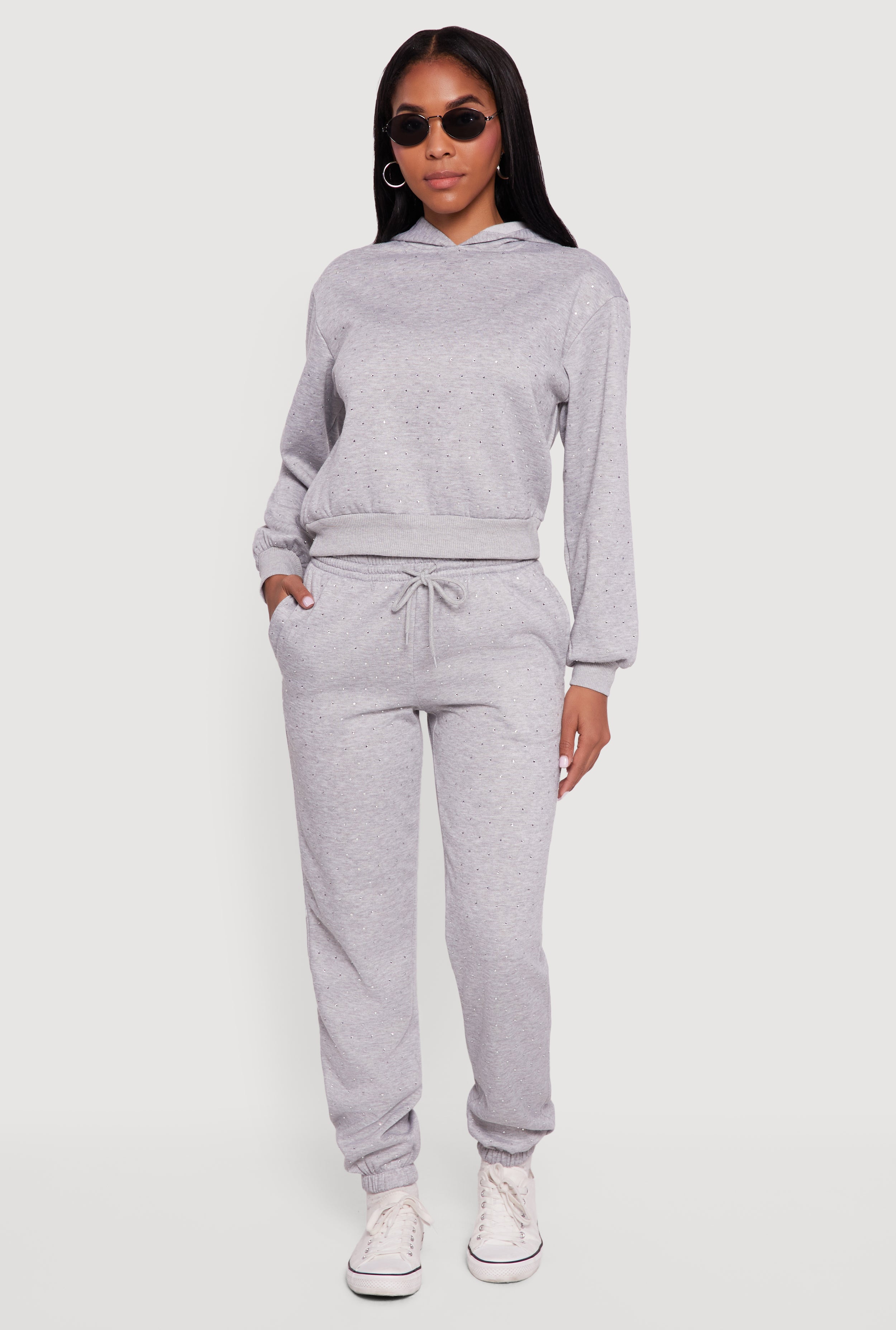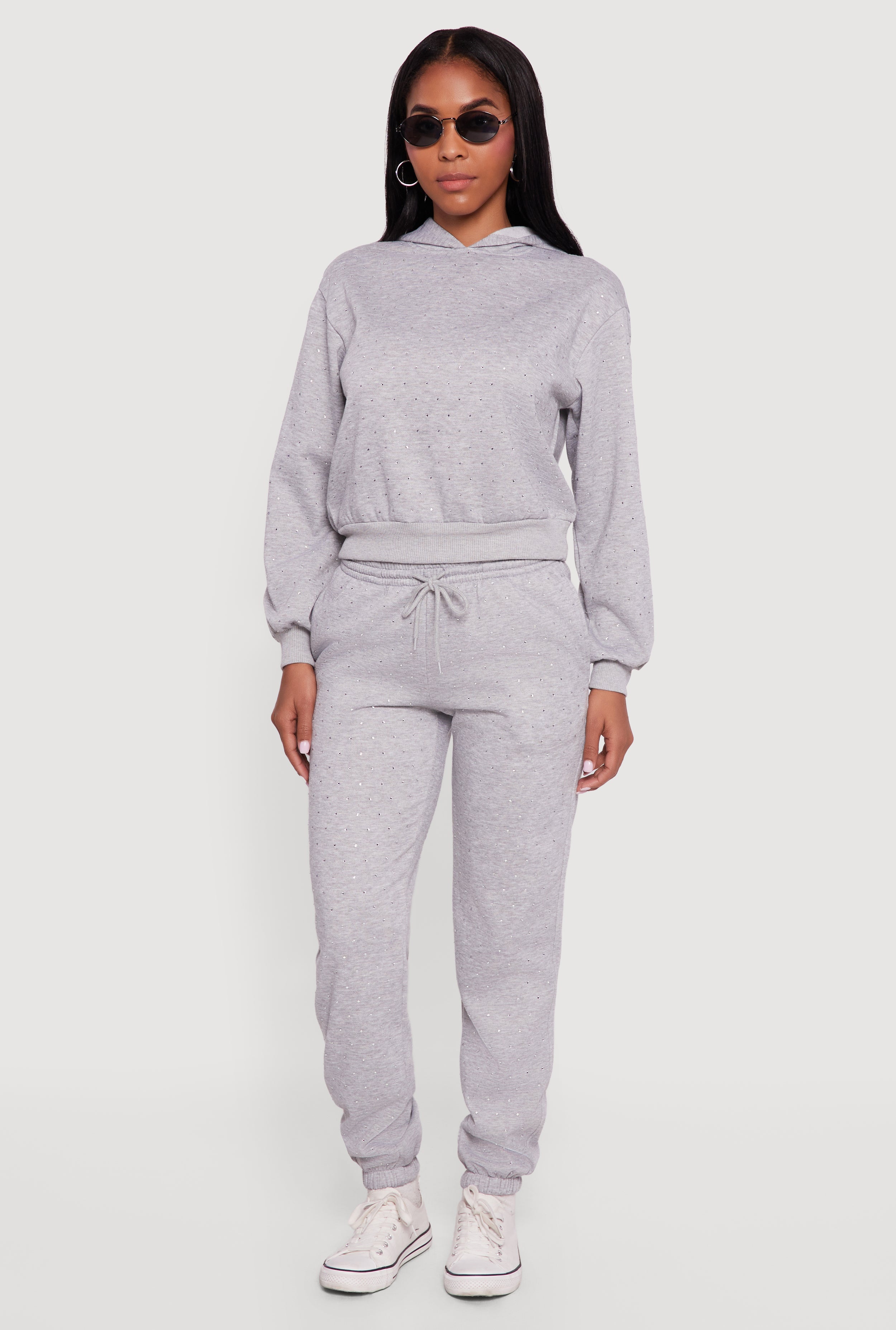 Almost Famous Rhinestone Studded Fleece Sweatpants