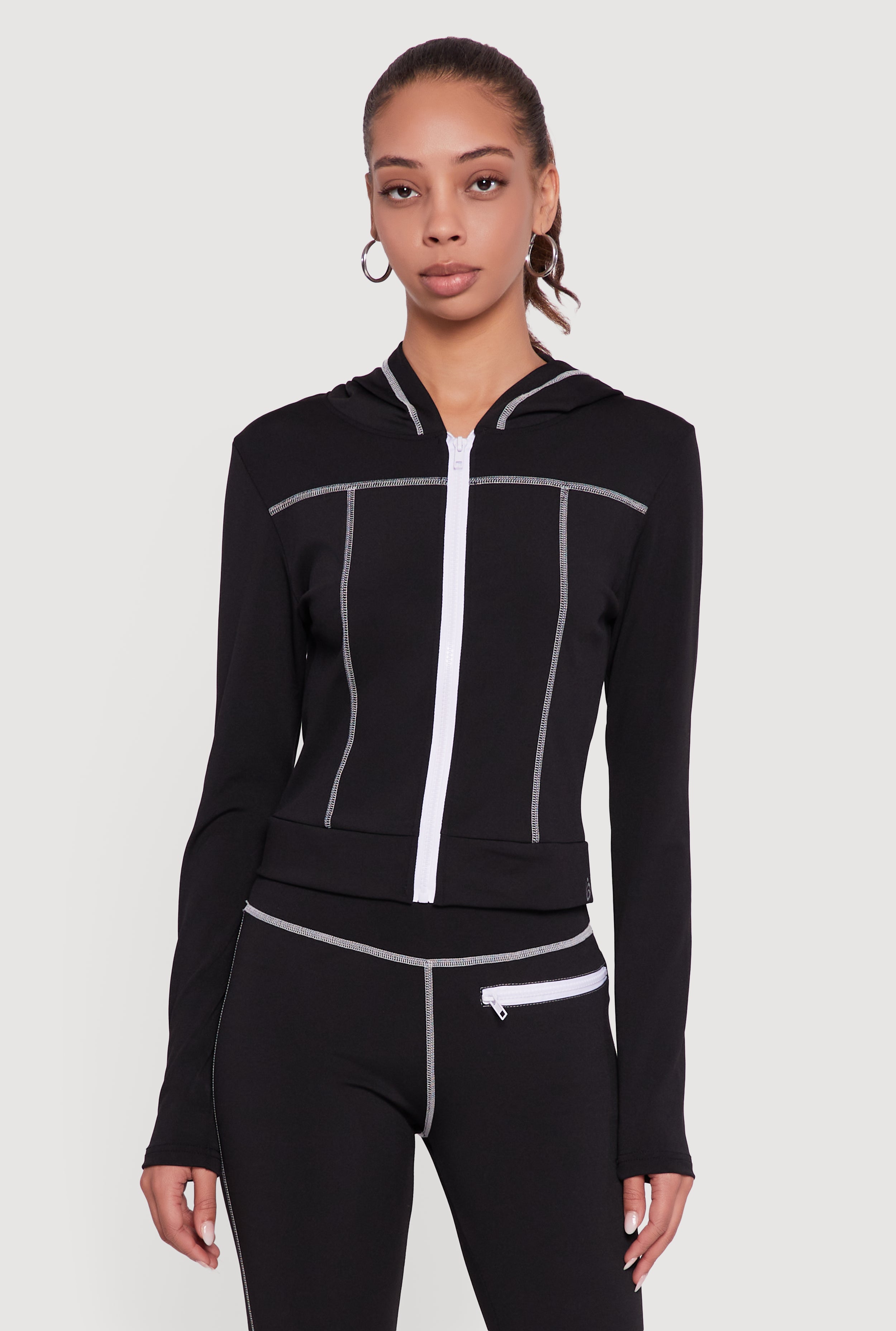 Zip Front Hooded Track Jacket with Decorative Stitching