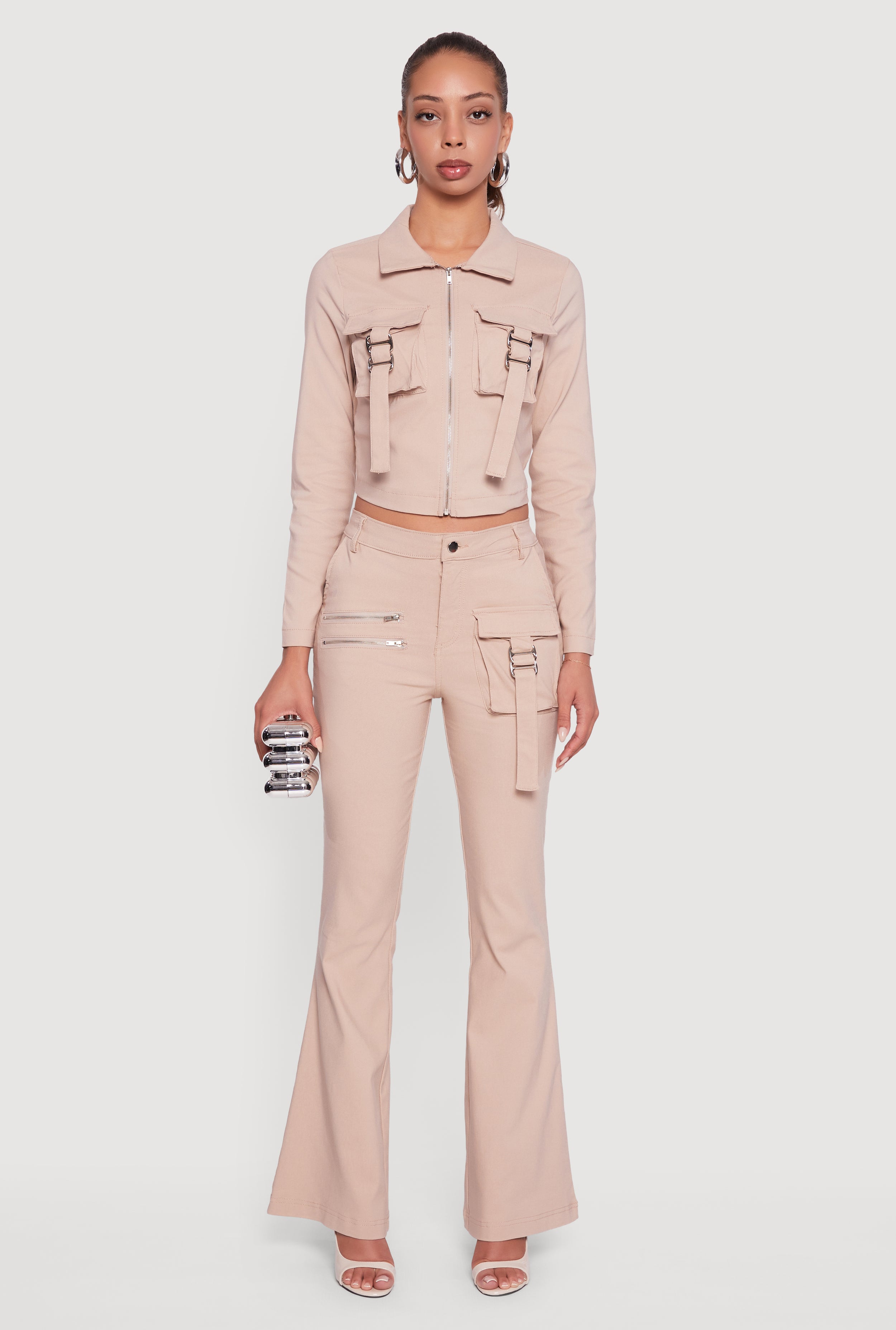 Hyper Stretch Zipper Detail Utility Flare Pants