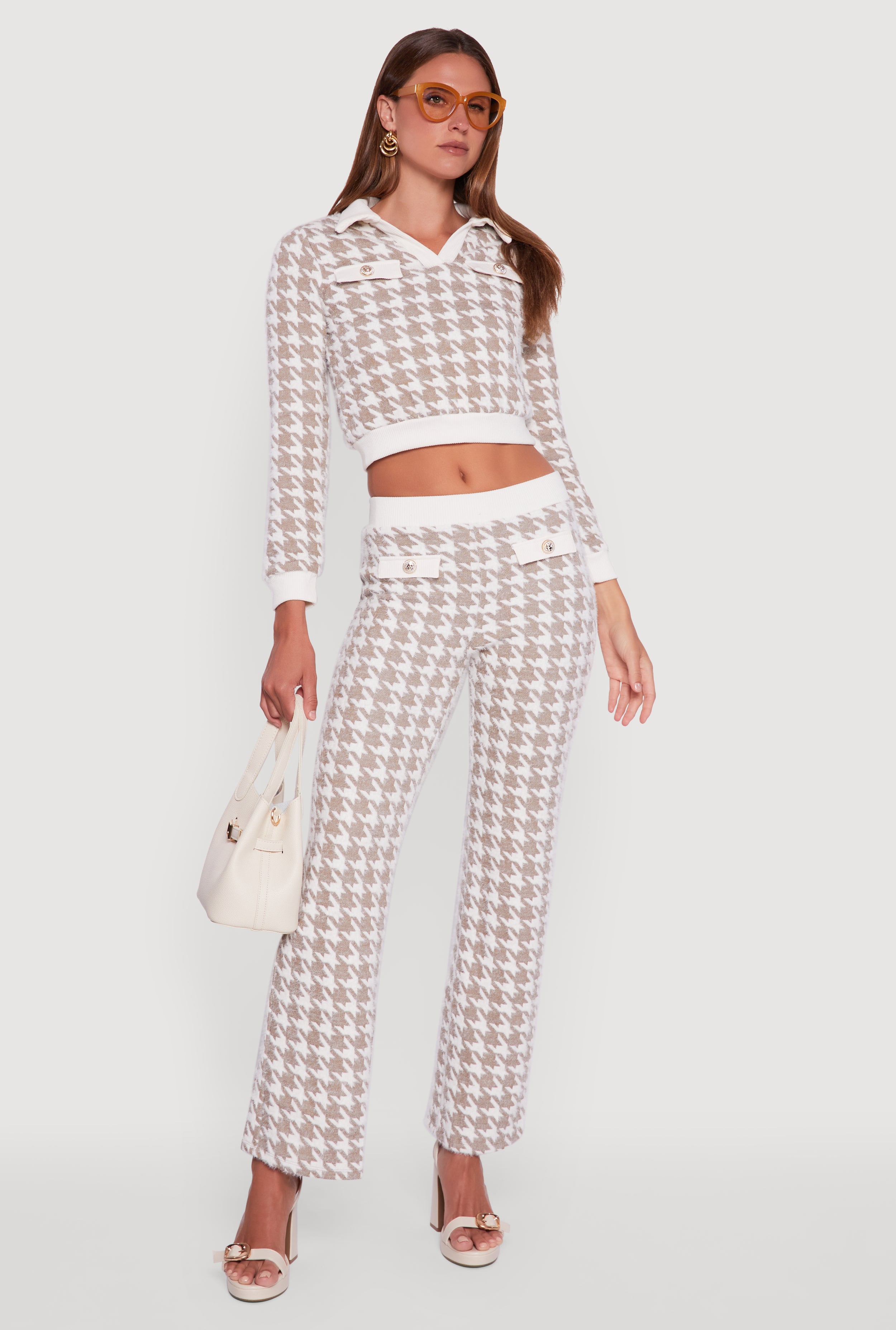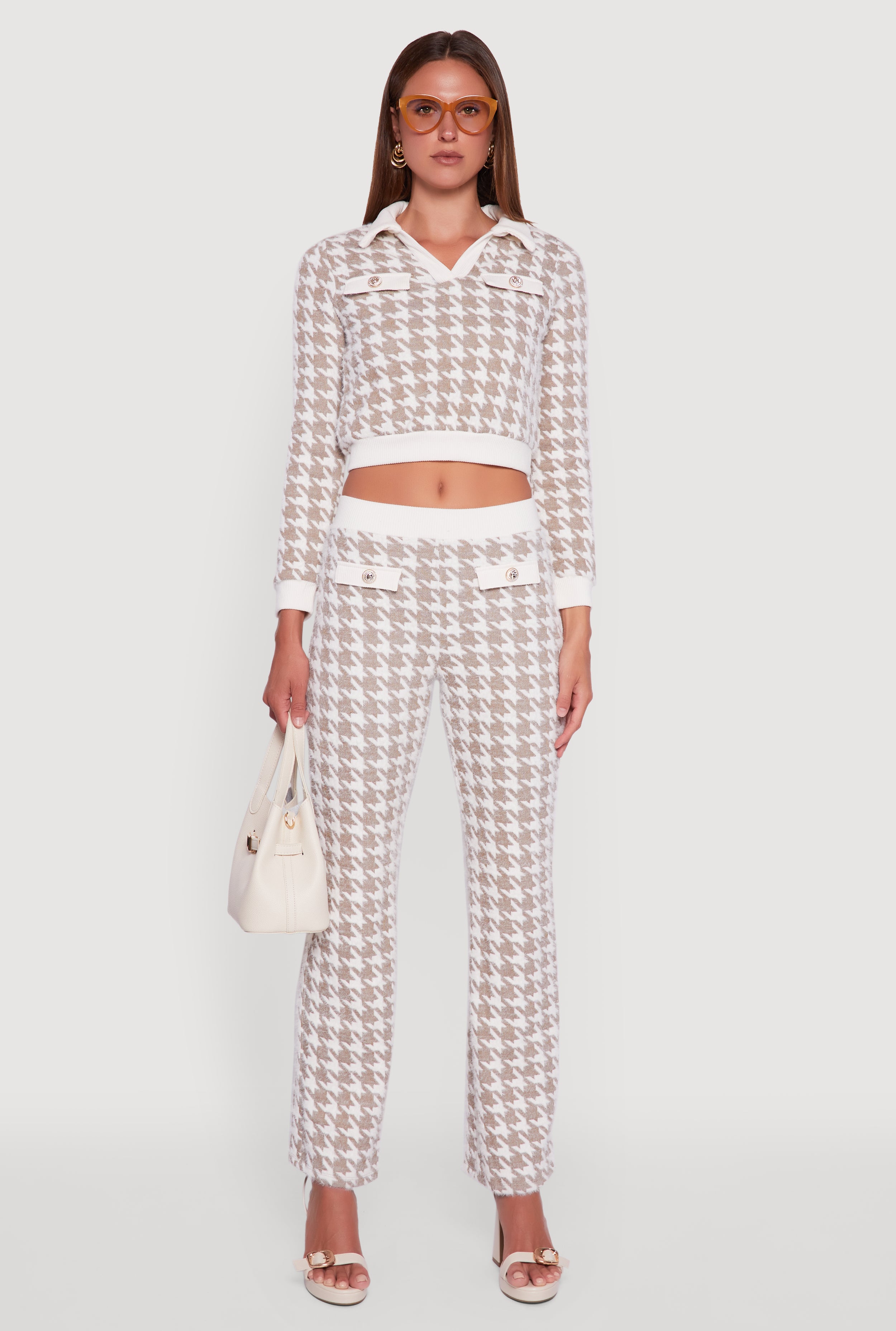 Houndstooth Cropped Sweater with Contrast Trim Collar