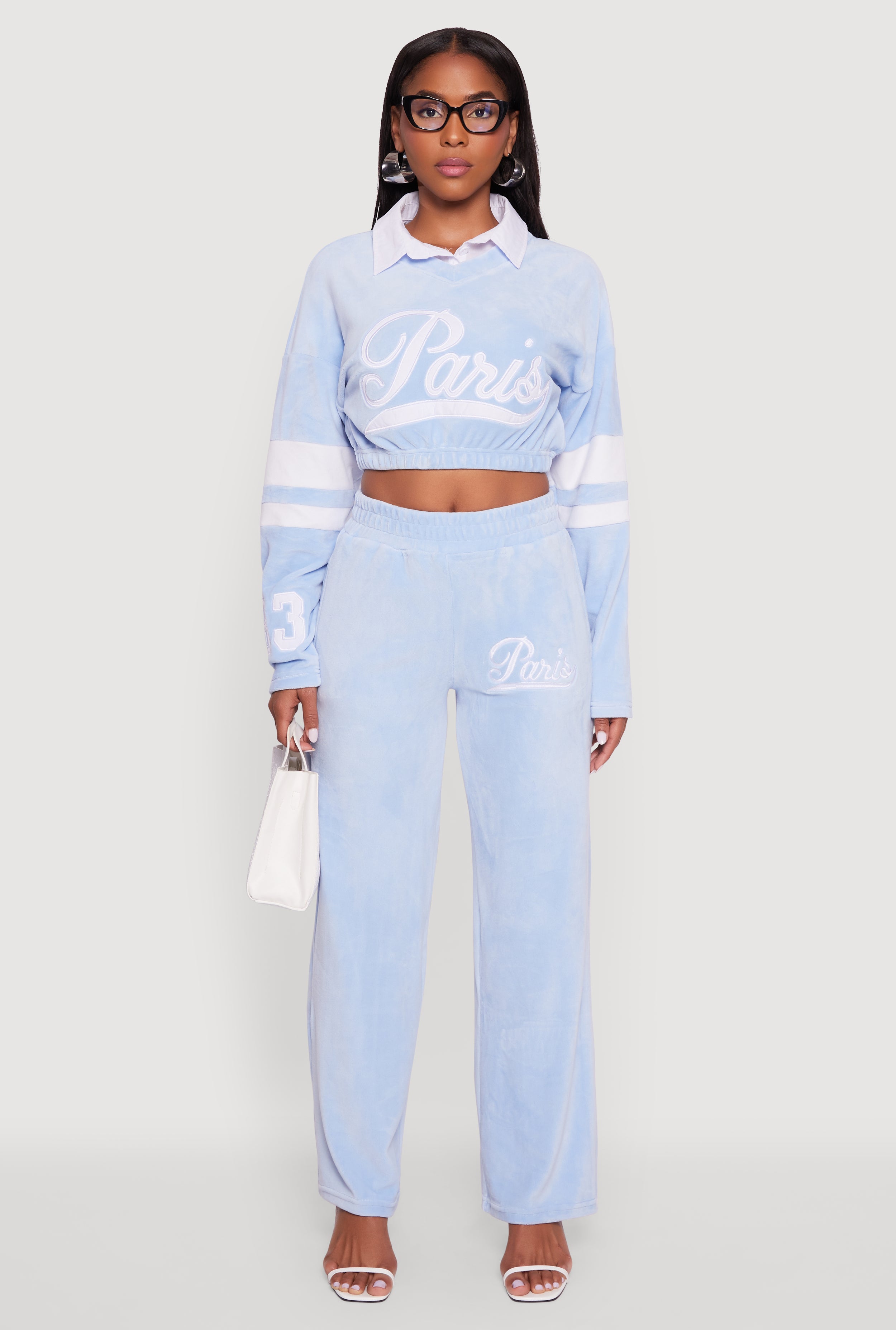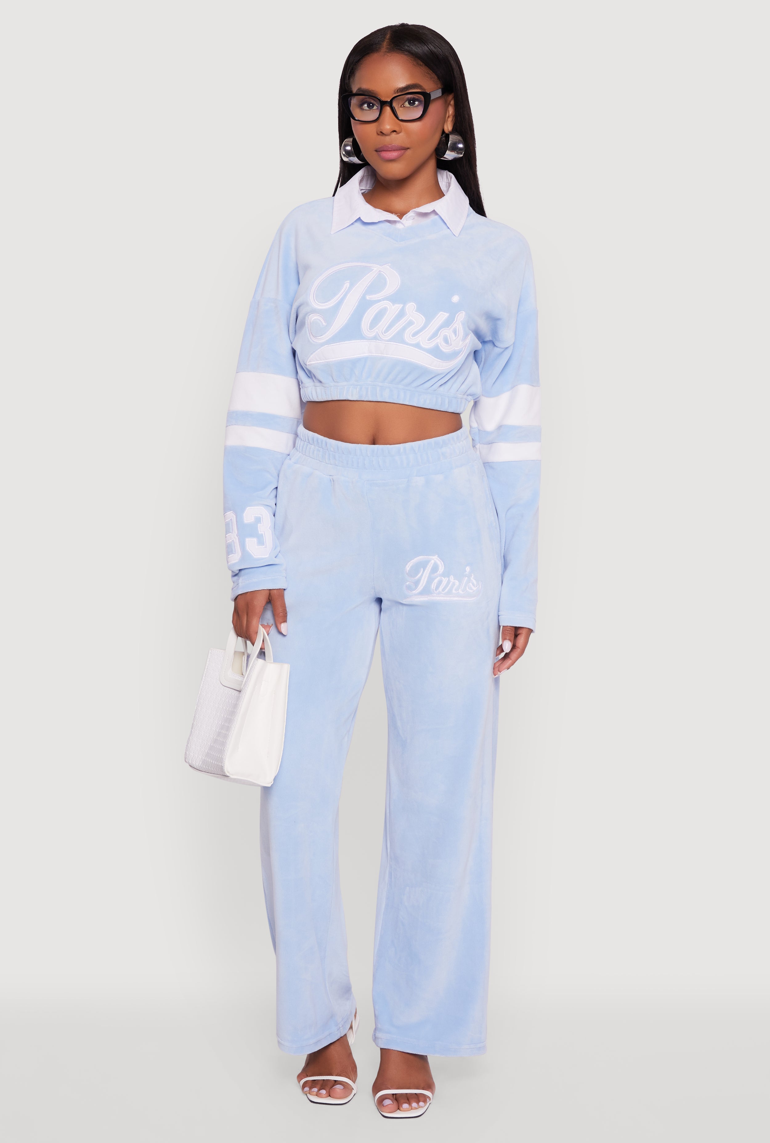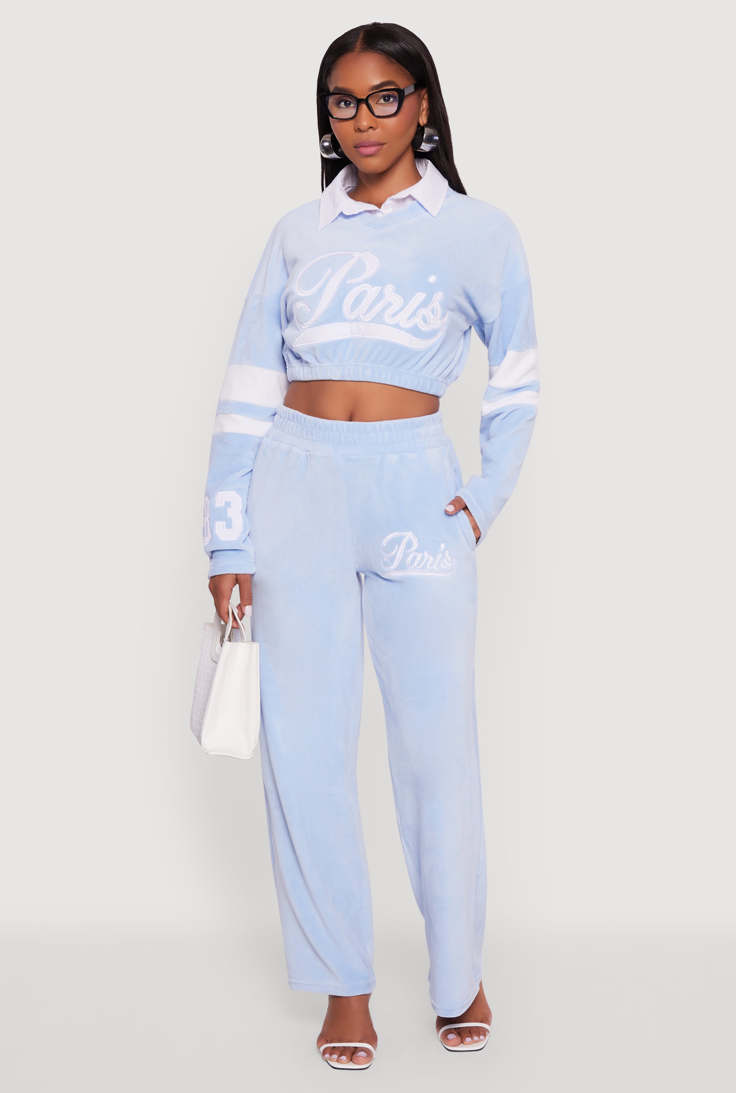 Velour Paris Embroidered Graphic Cropped Sweatshirt