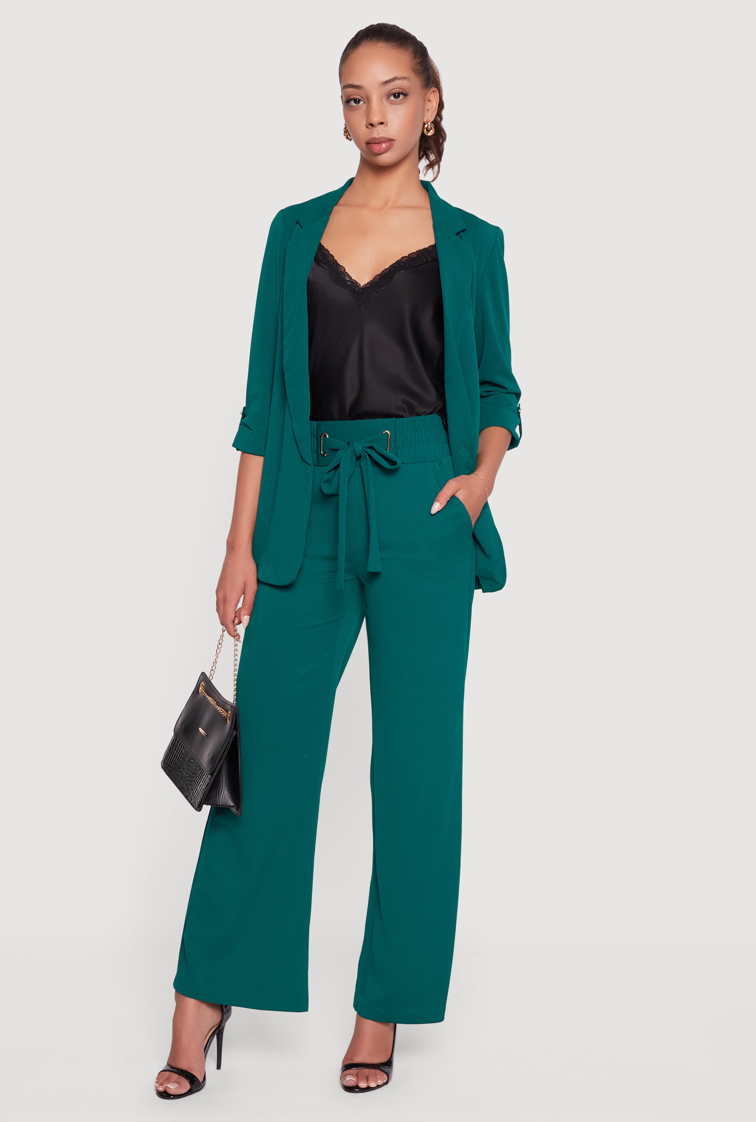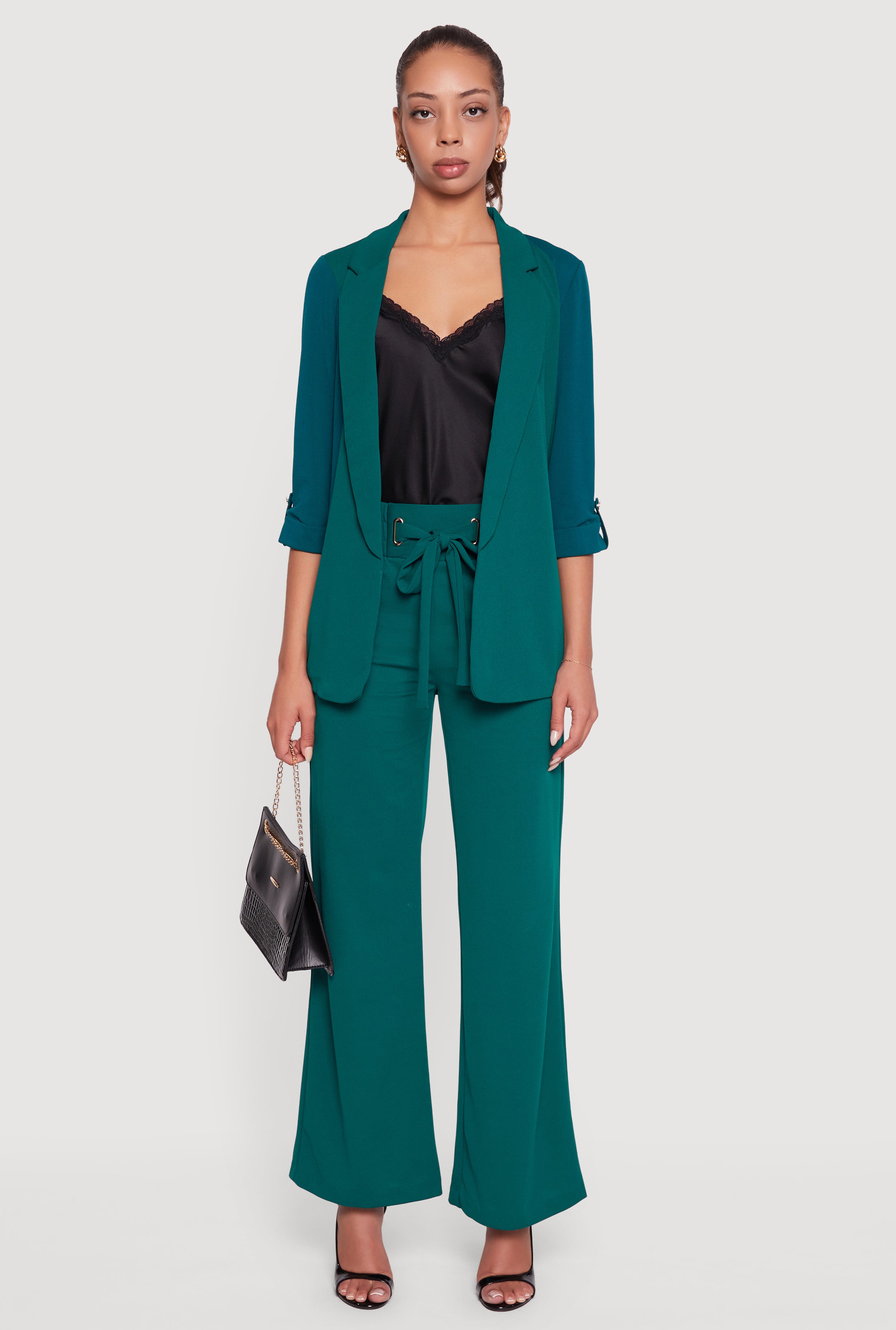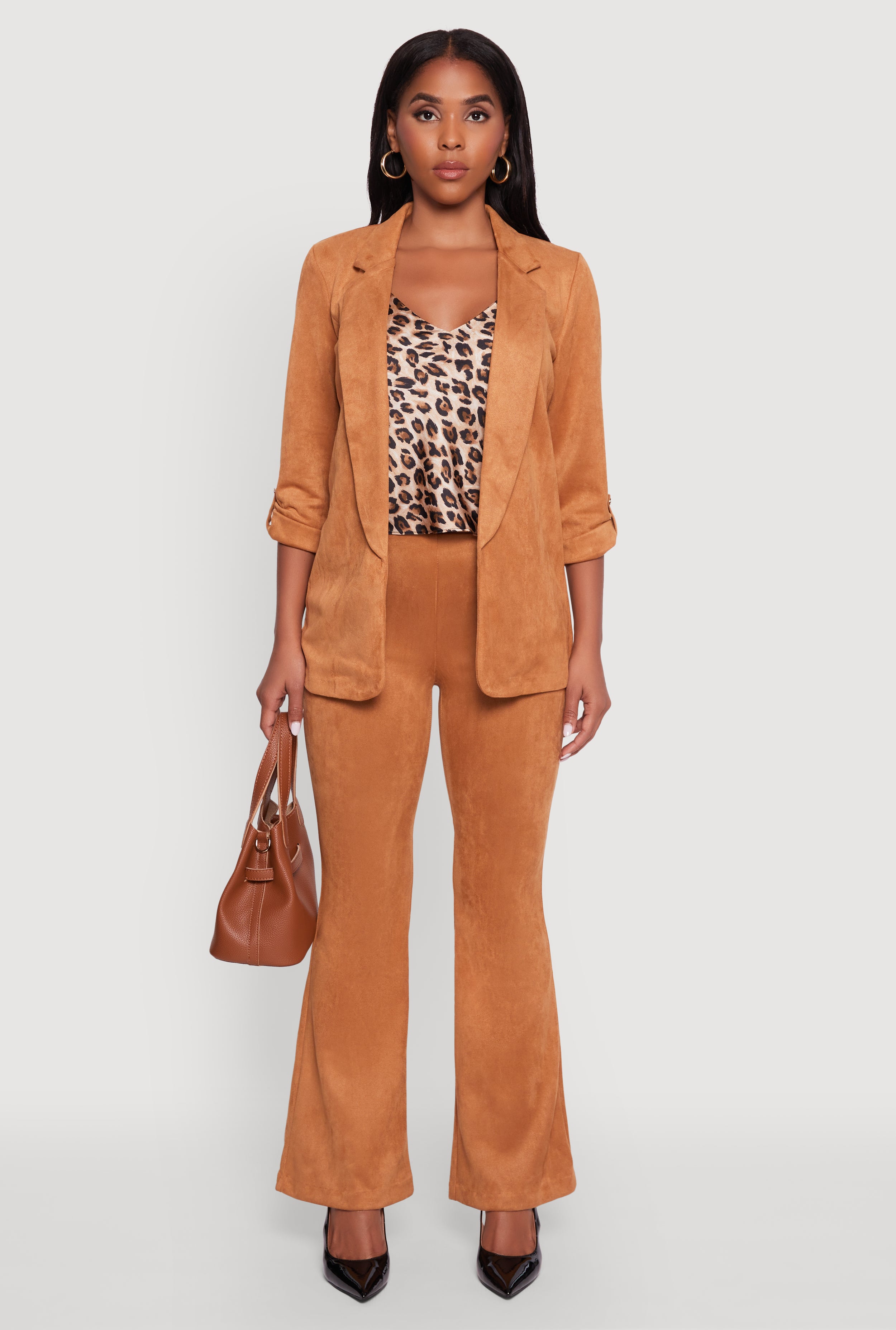 Faux Suede Tabbed Sleeve Open Front Blazer