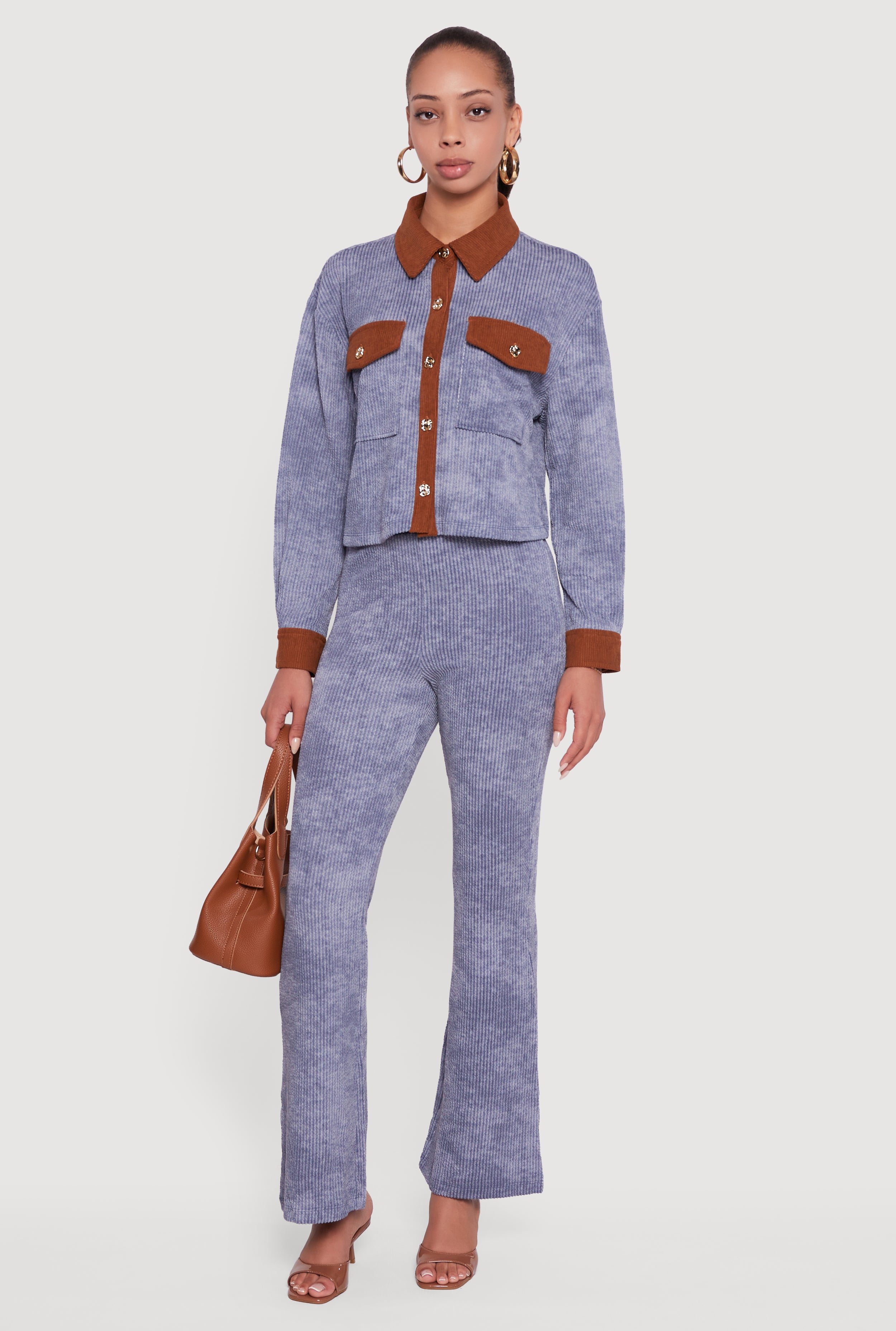 Fold Over Collar Ribbed Knit Button Front Sweater