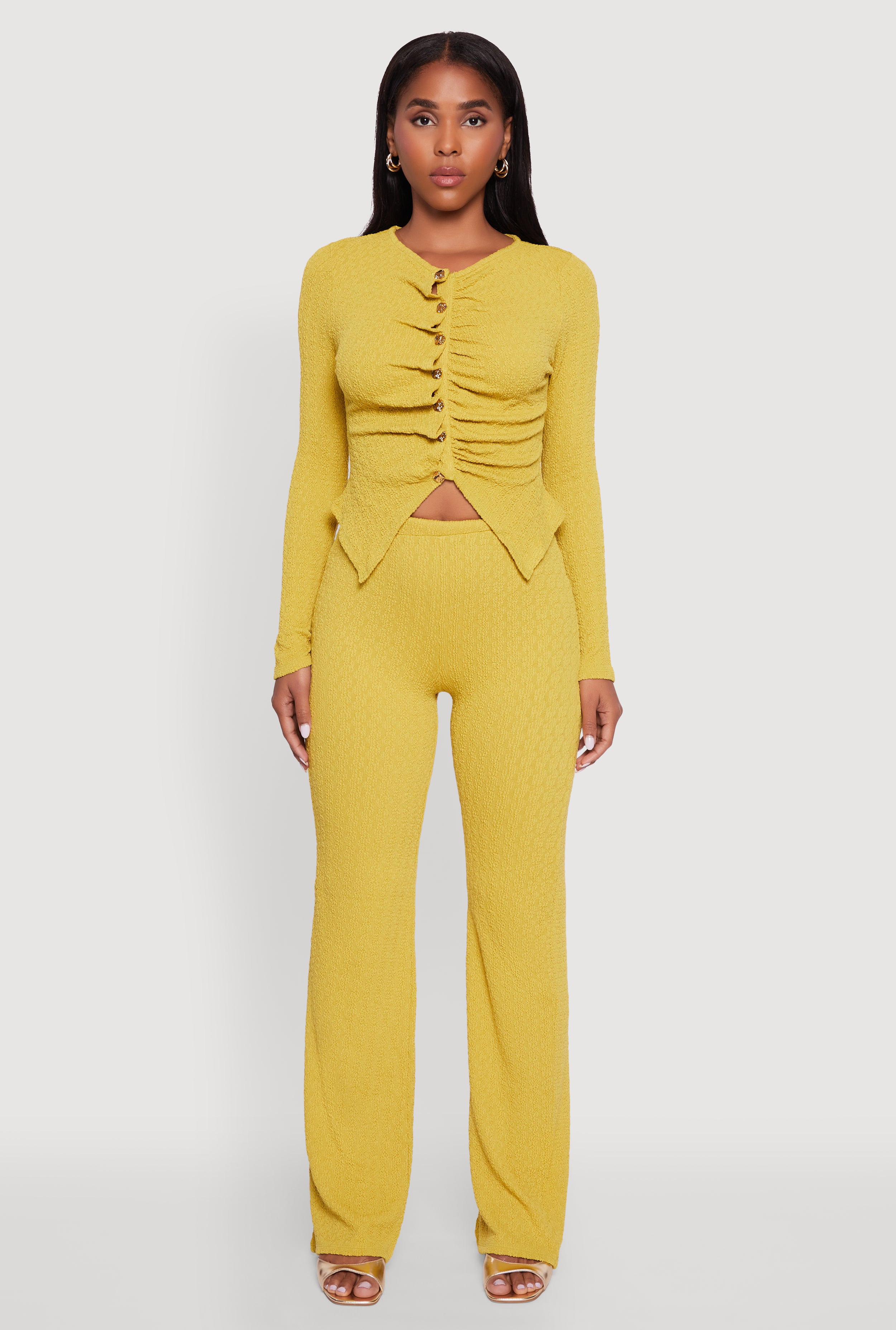 Crepe Knit Drawstring Detail Wide Leg Pants
