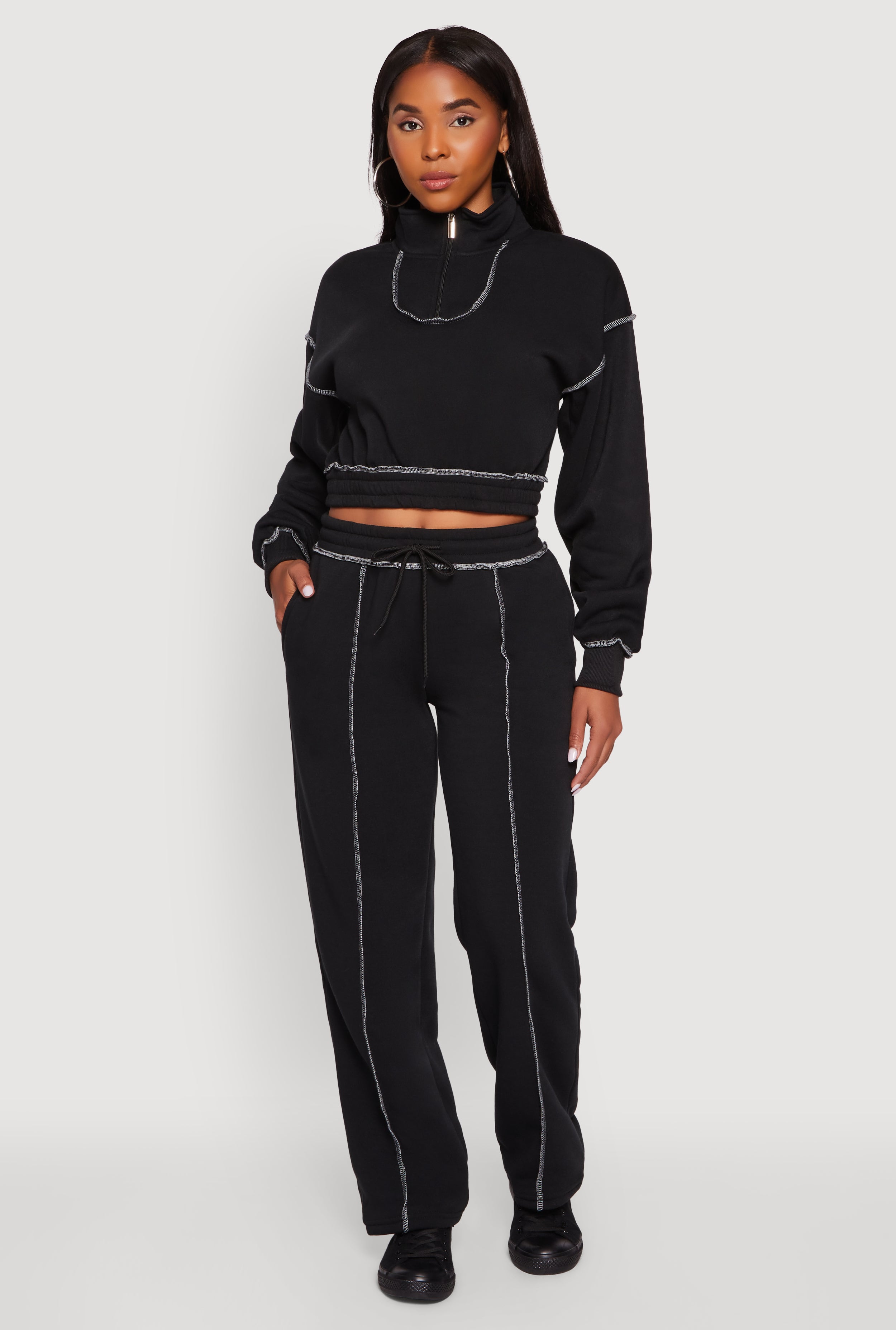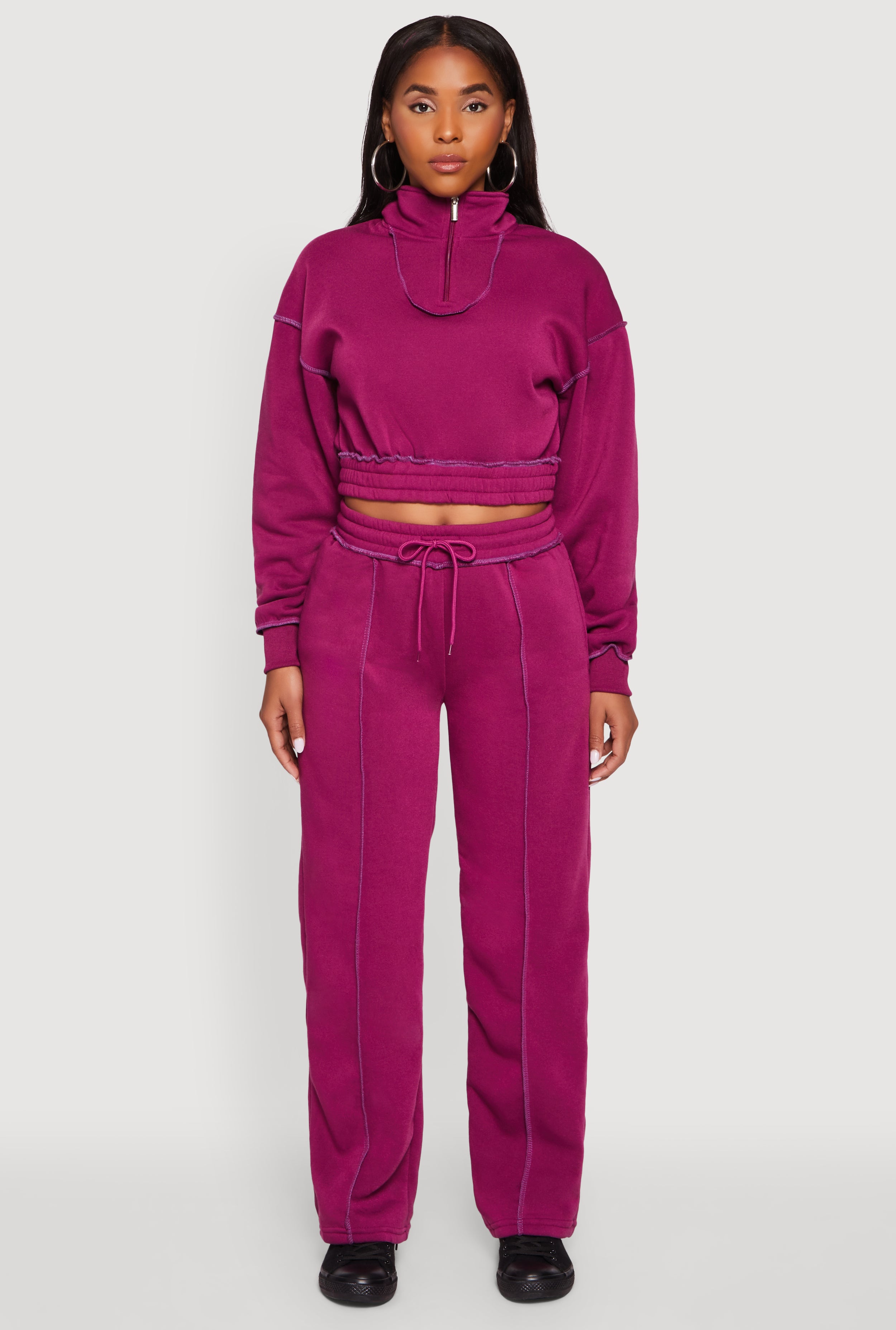 Mock Neck Half Zip Cropped Pullover Sweatshirt