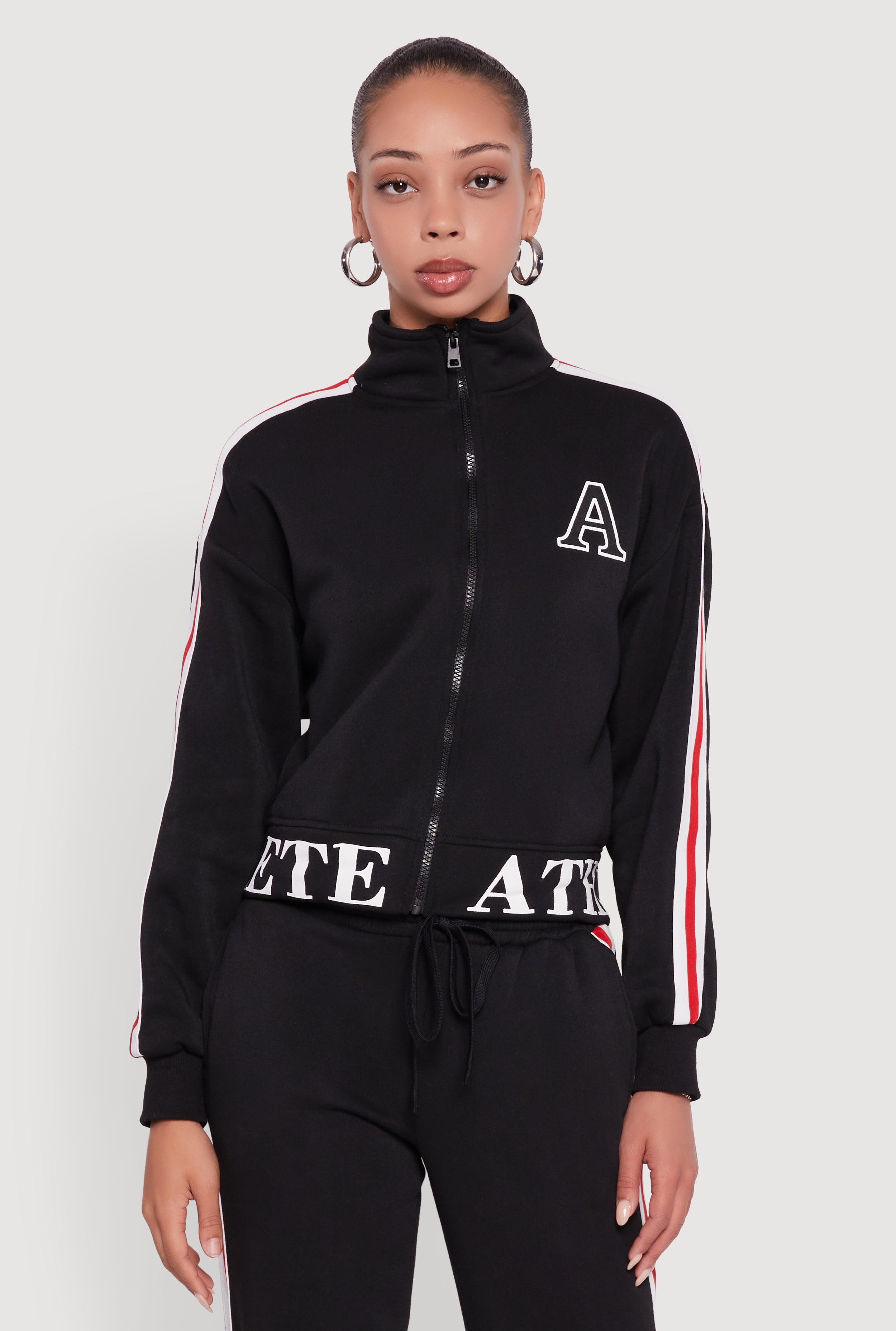 Letter Detail Fleece Lined Hooded Sweatshirt