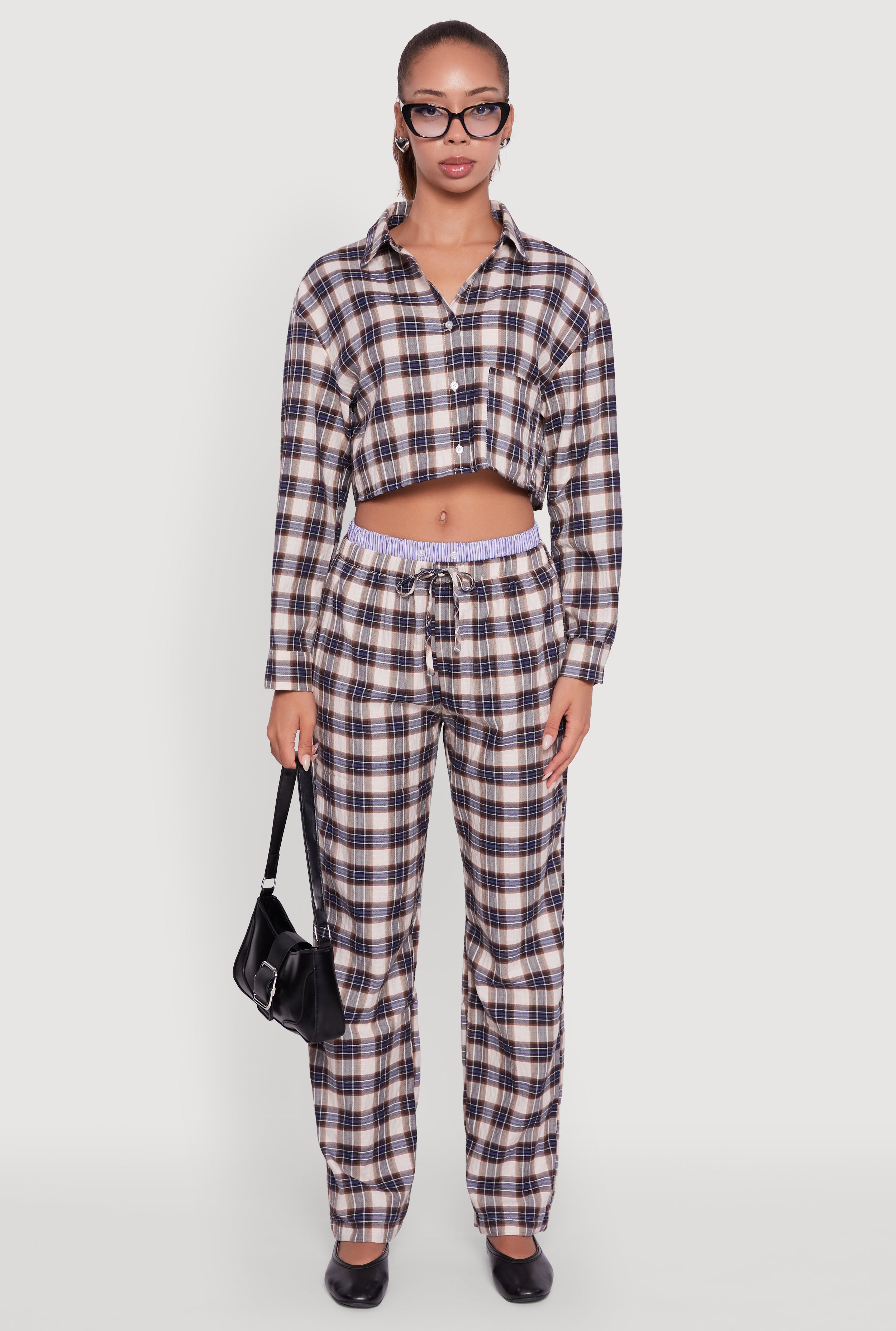 Cropped Denim Detail Raw Hem Plaid Tiered Shirt