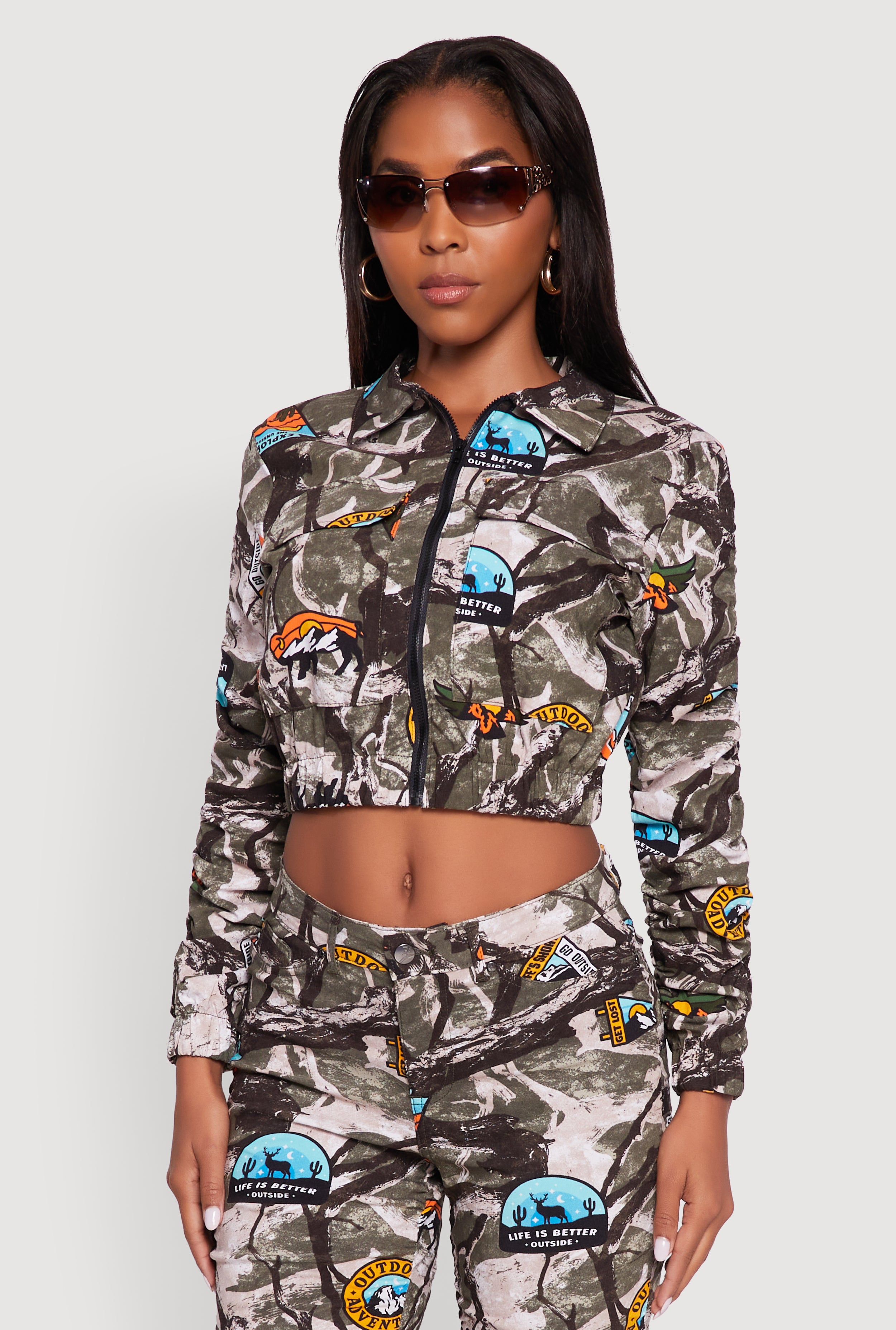 Hyper Stretch Cropped Zip Front Utility Jacket