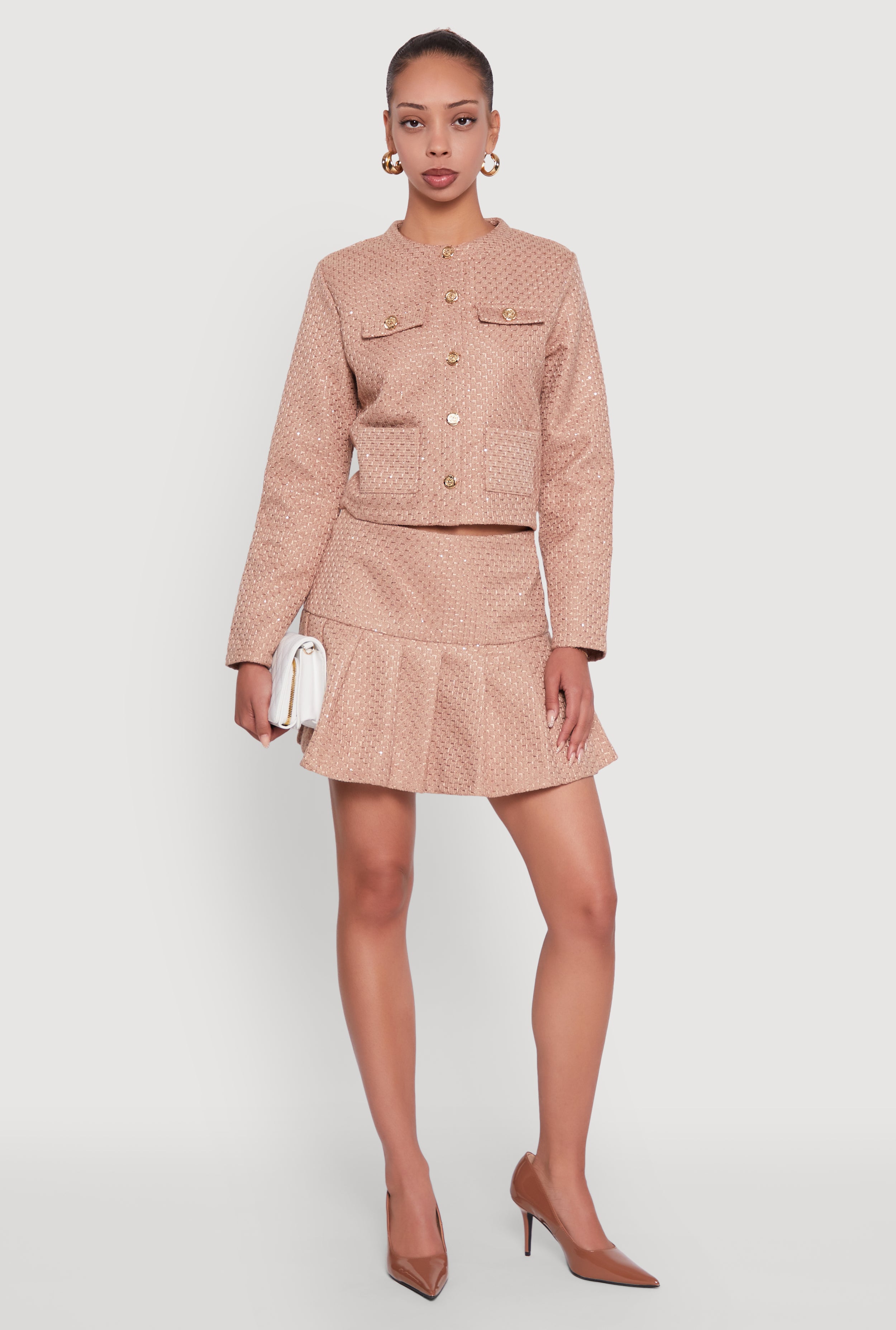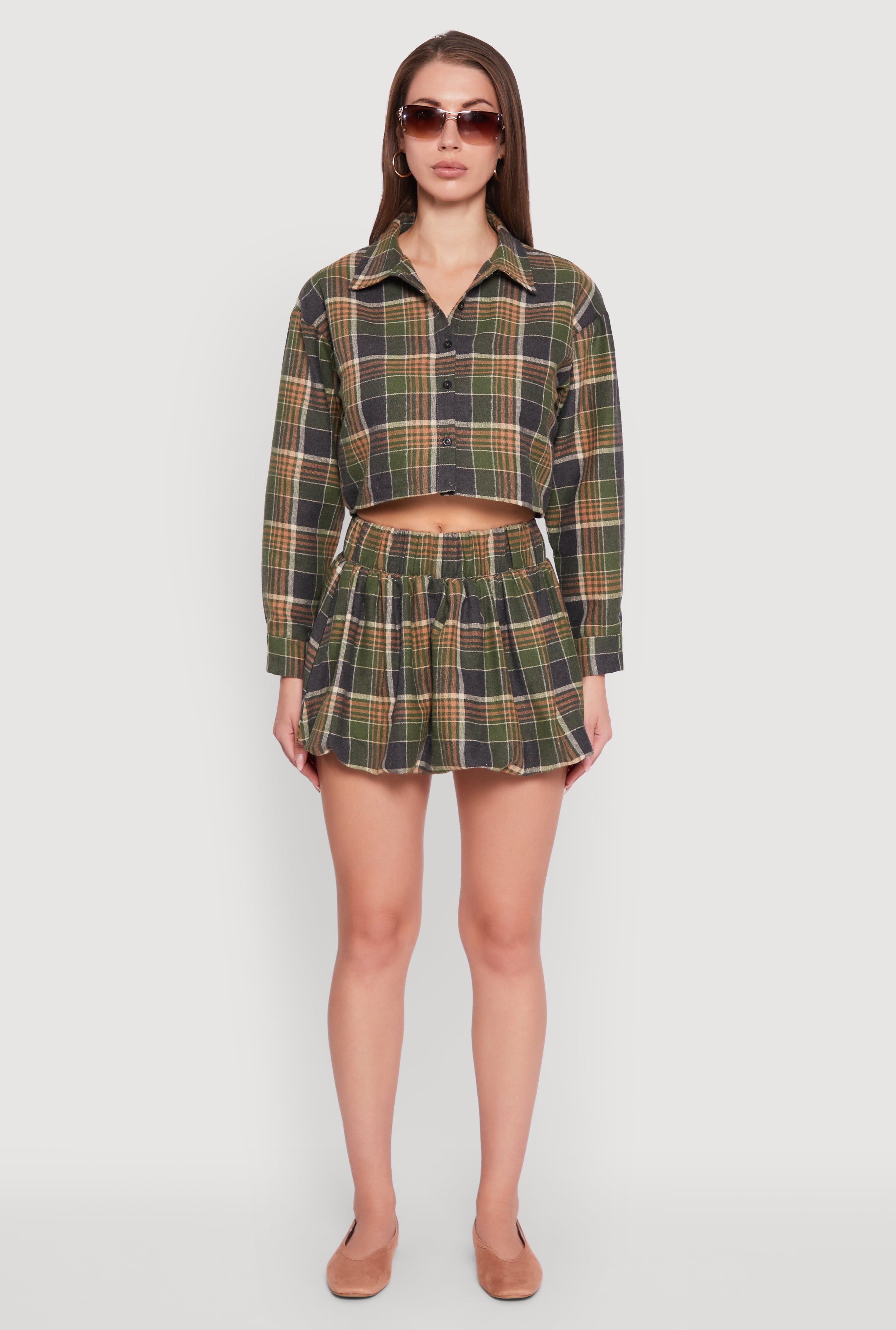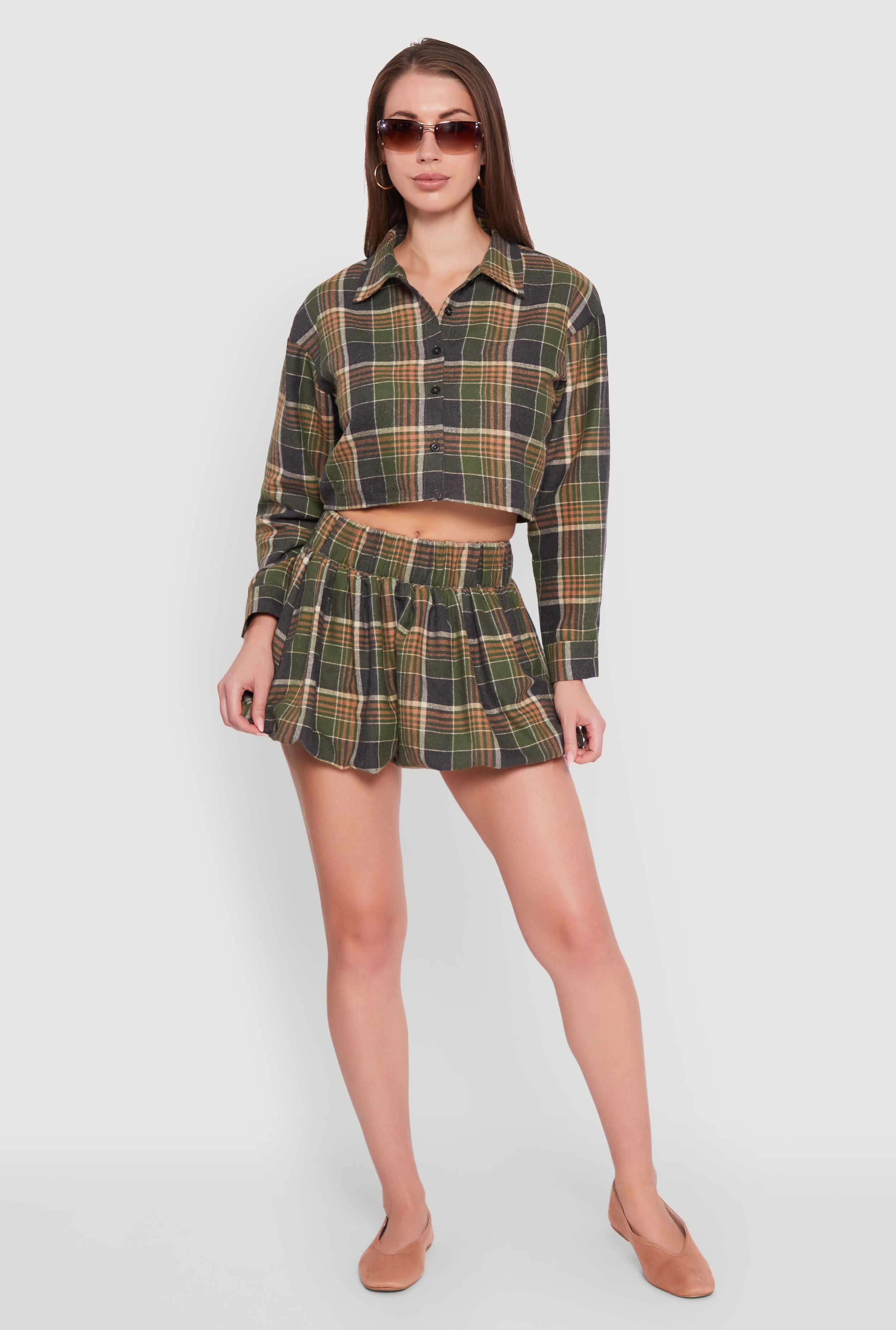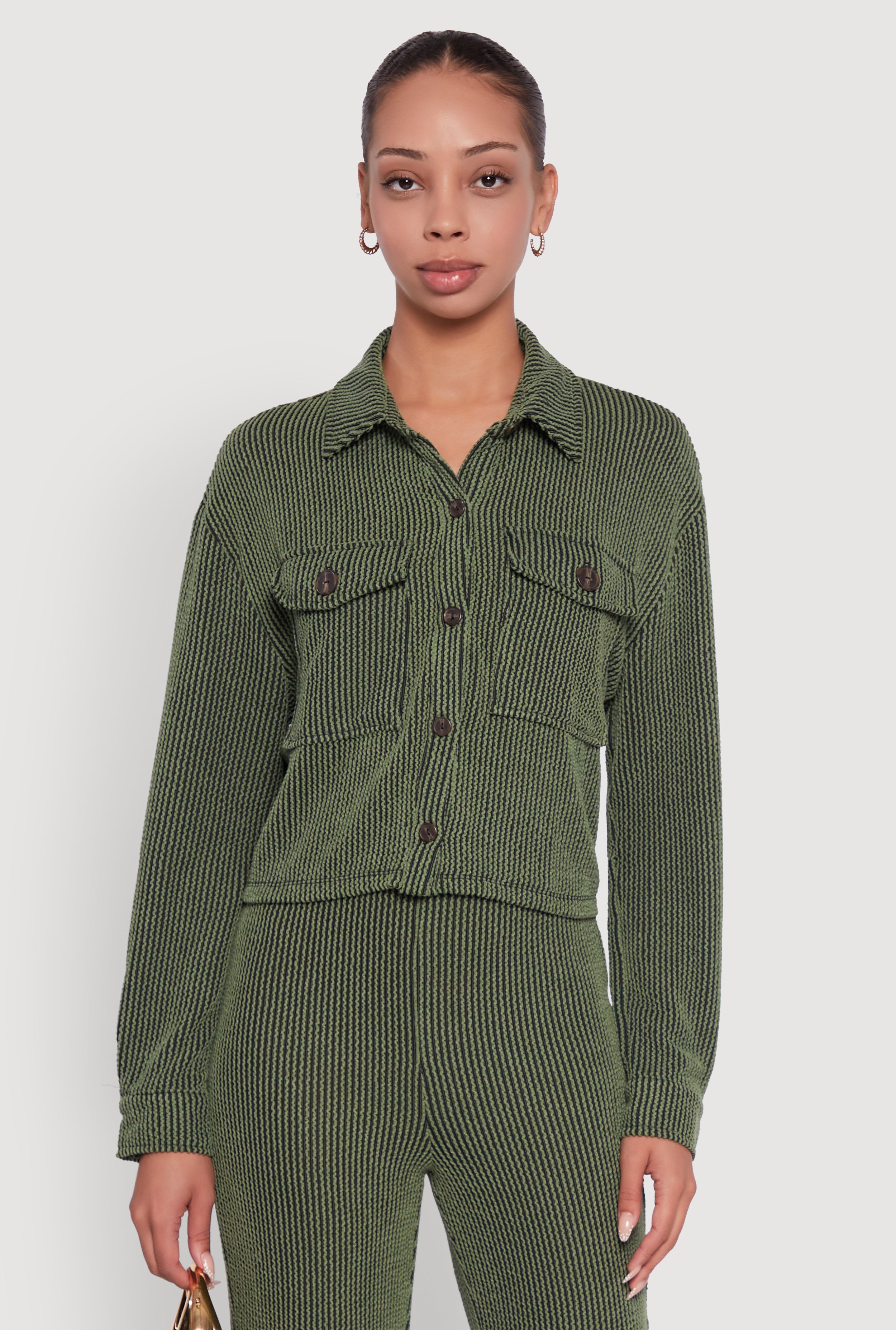 Rib Knit Shadow Stripe Button Front Cropped Shirt