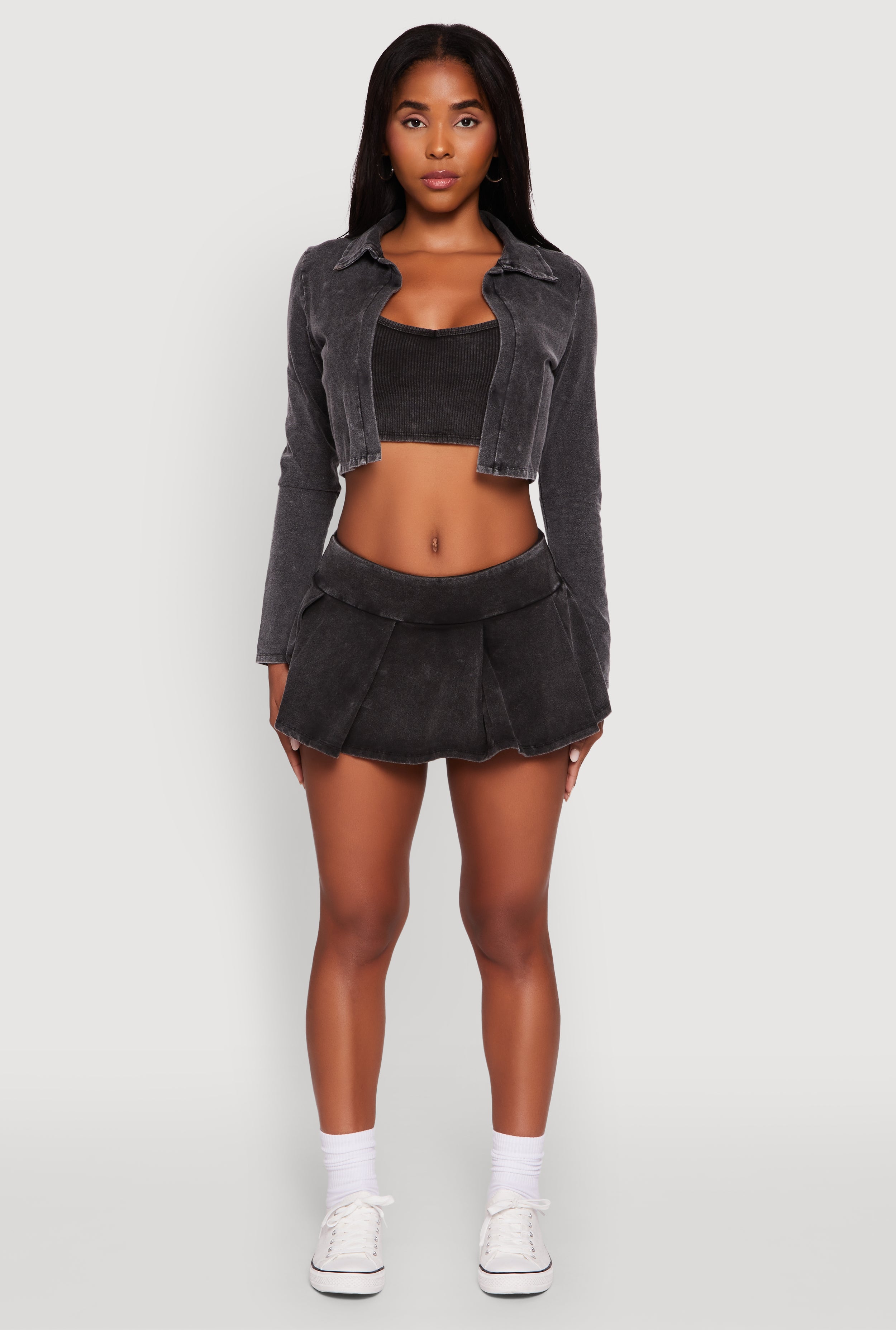 Acid Wash Cropped Rib Knit Cami with Long Sleeve Jacket