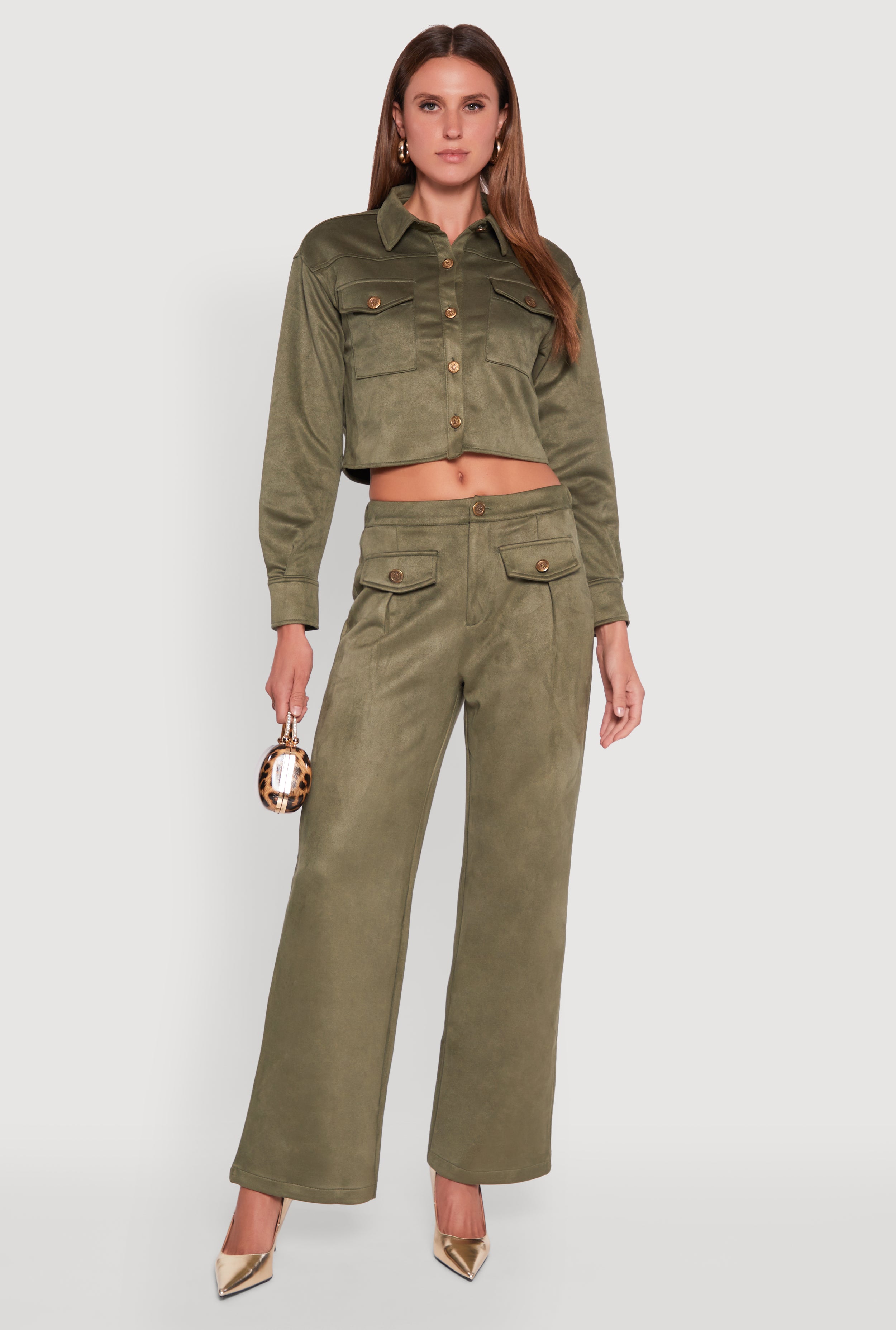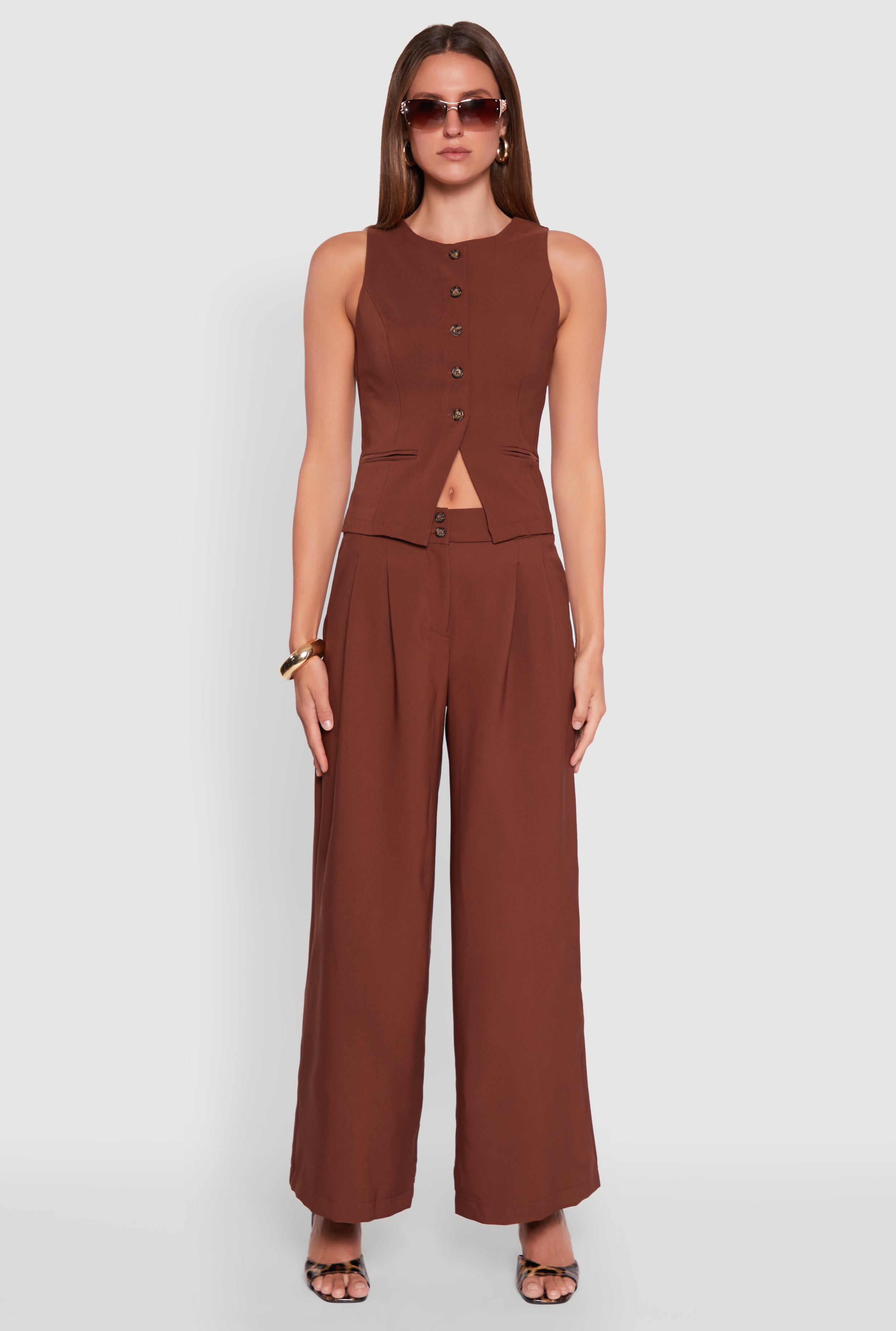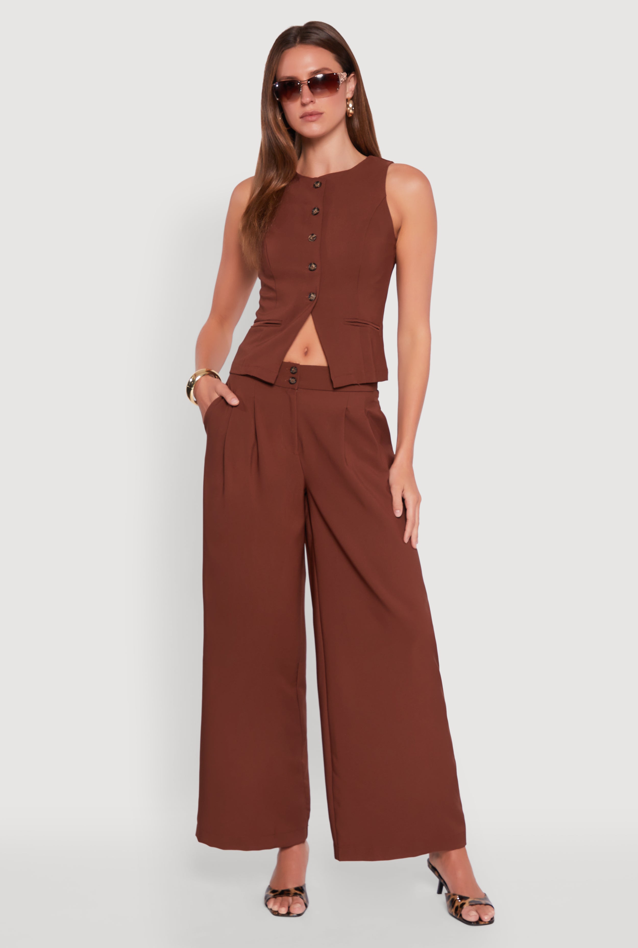 Solid Crepe Knit Pleated Detail Wide Leg Trousers