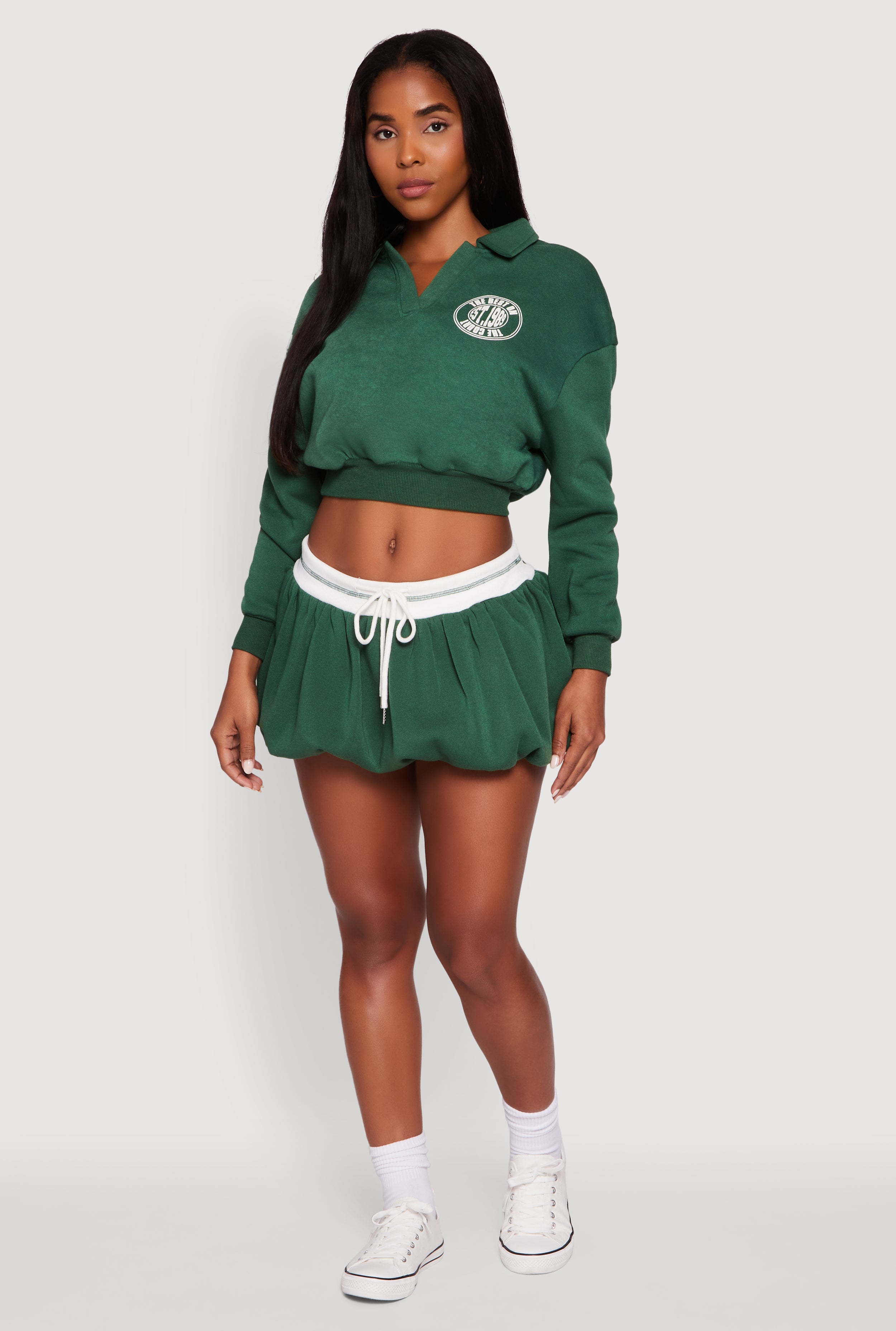 Bubble Hem Fleece Lined Hooded Crop Sweatshirt