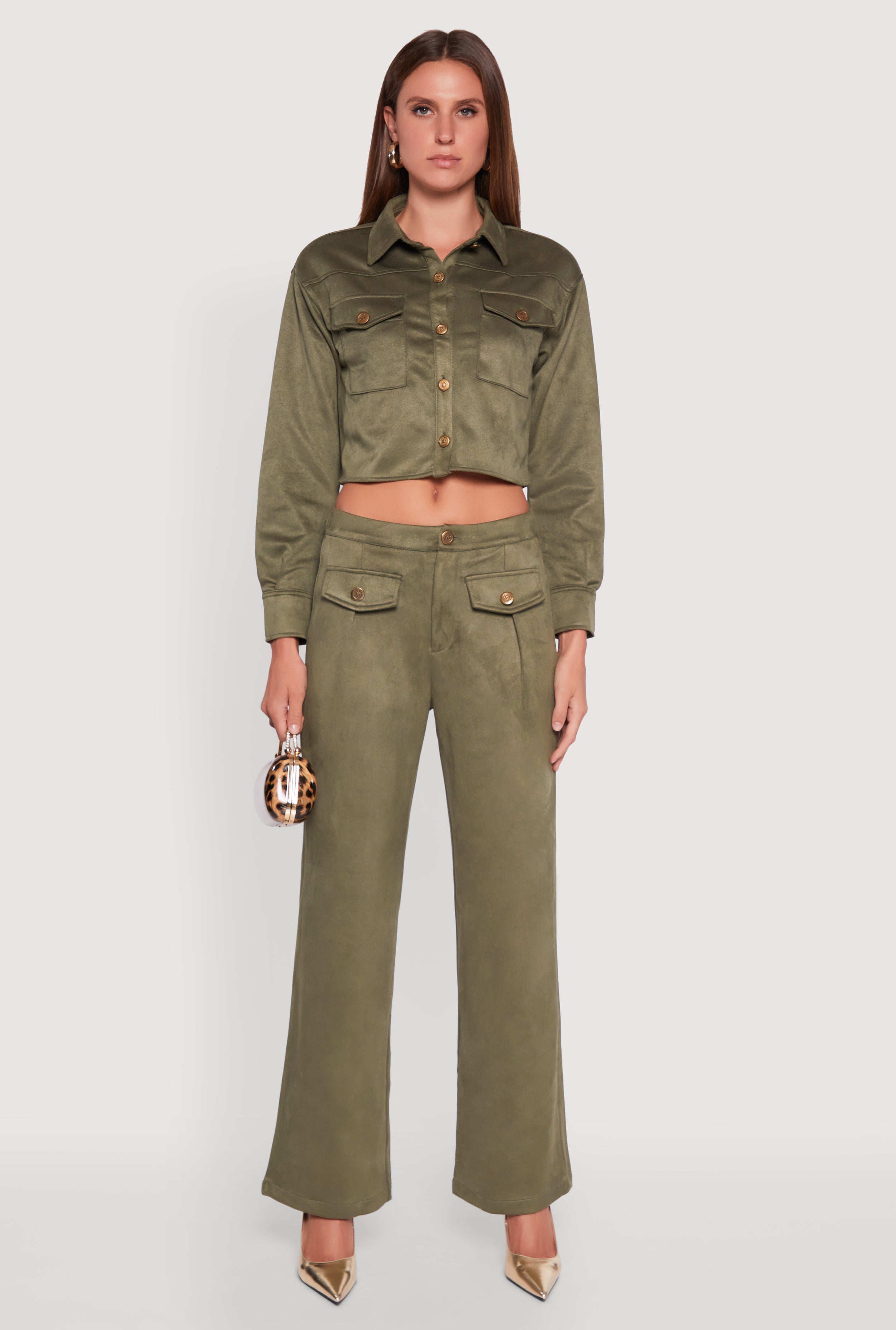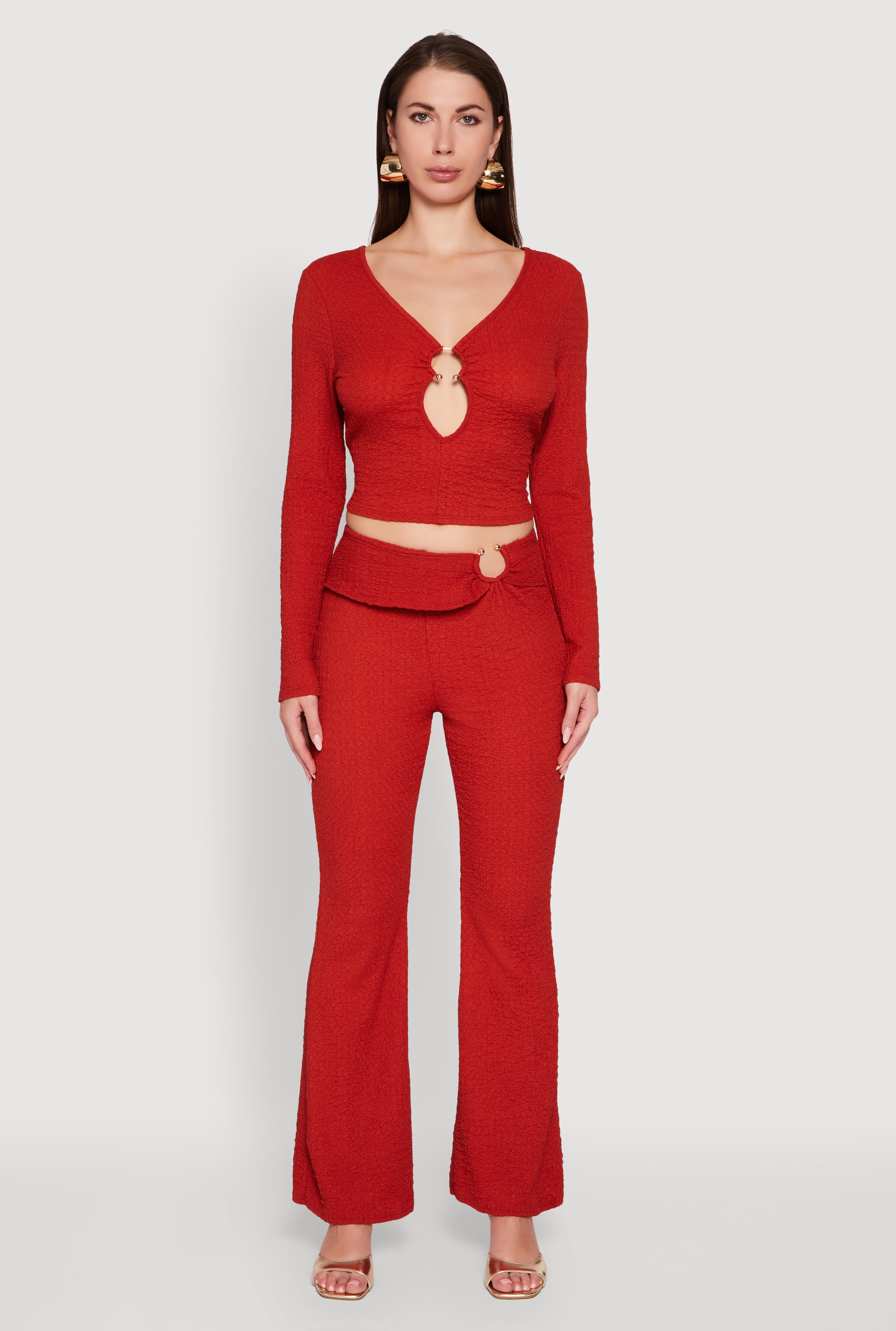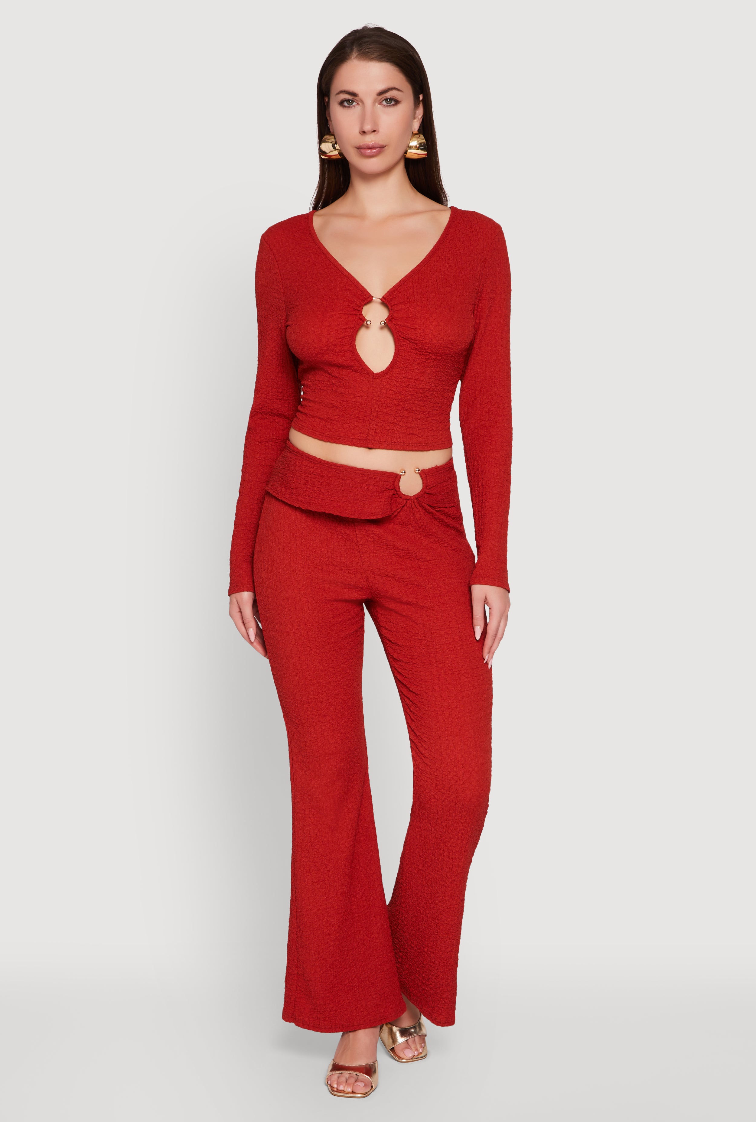 Metallic O-Ring Keyhole Belted Front Flare Pants