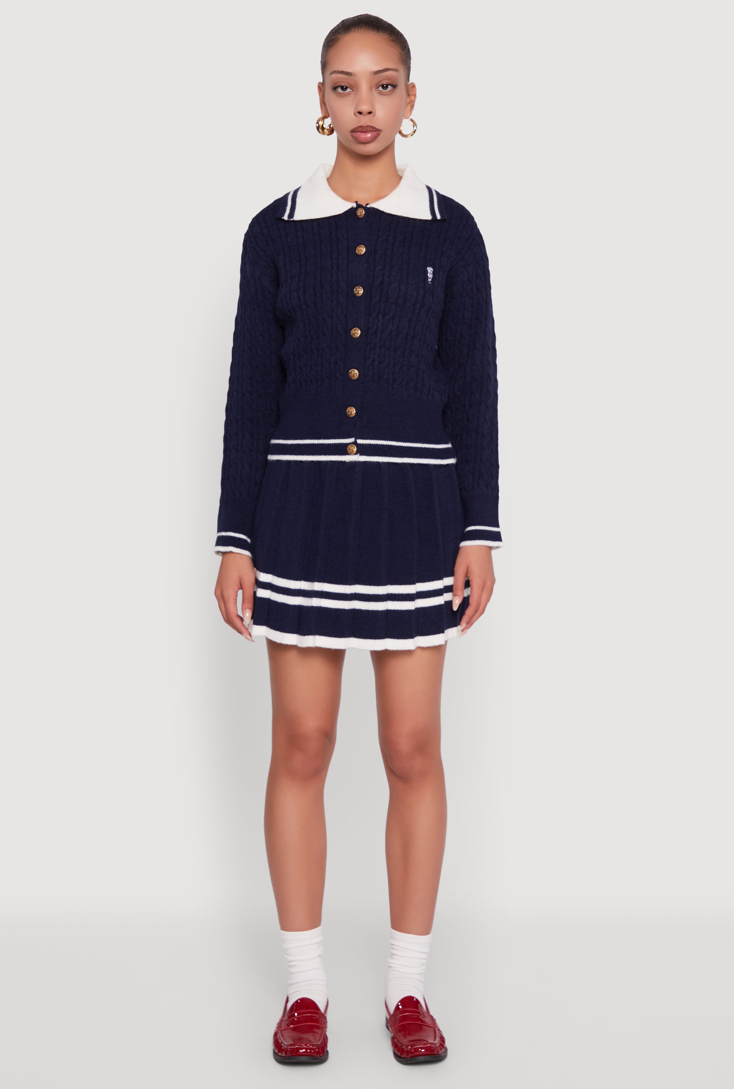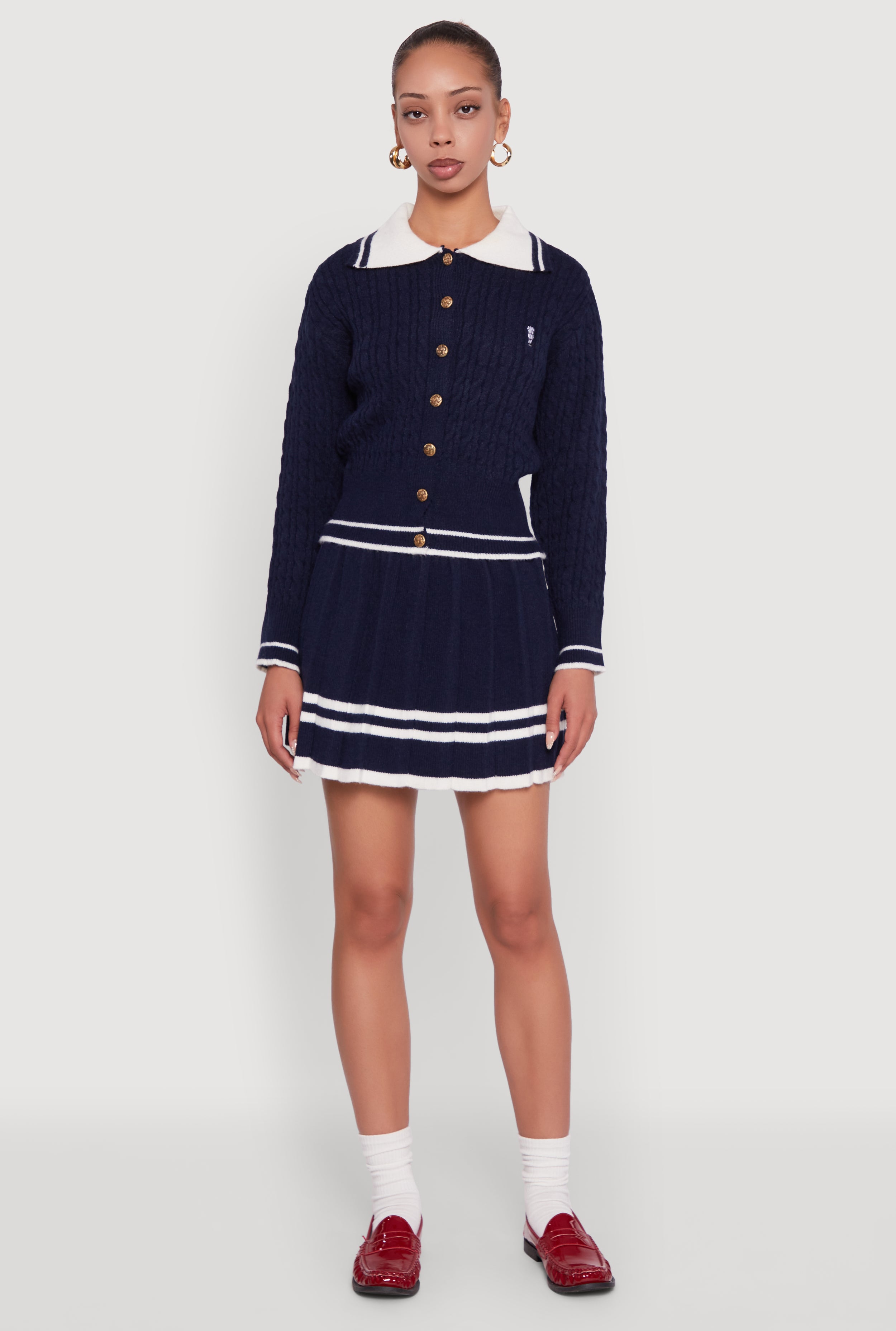 Textured Knit Bow Detail Side Slit Mini Skirt