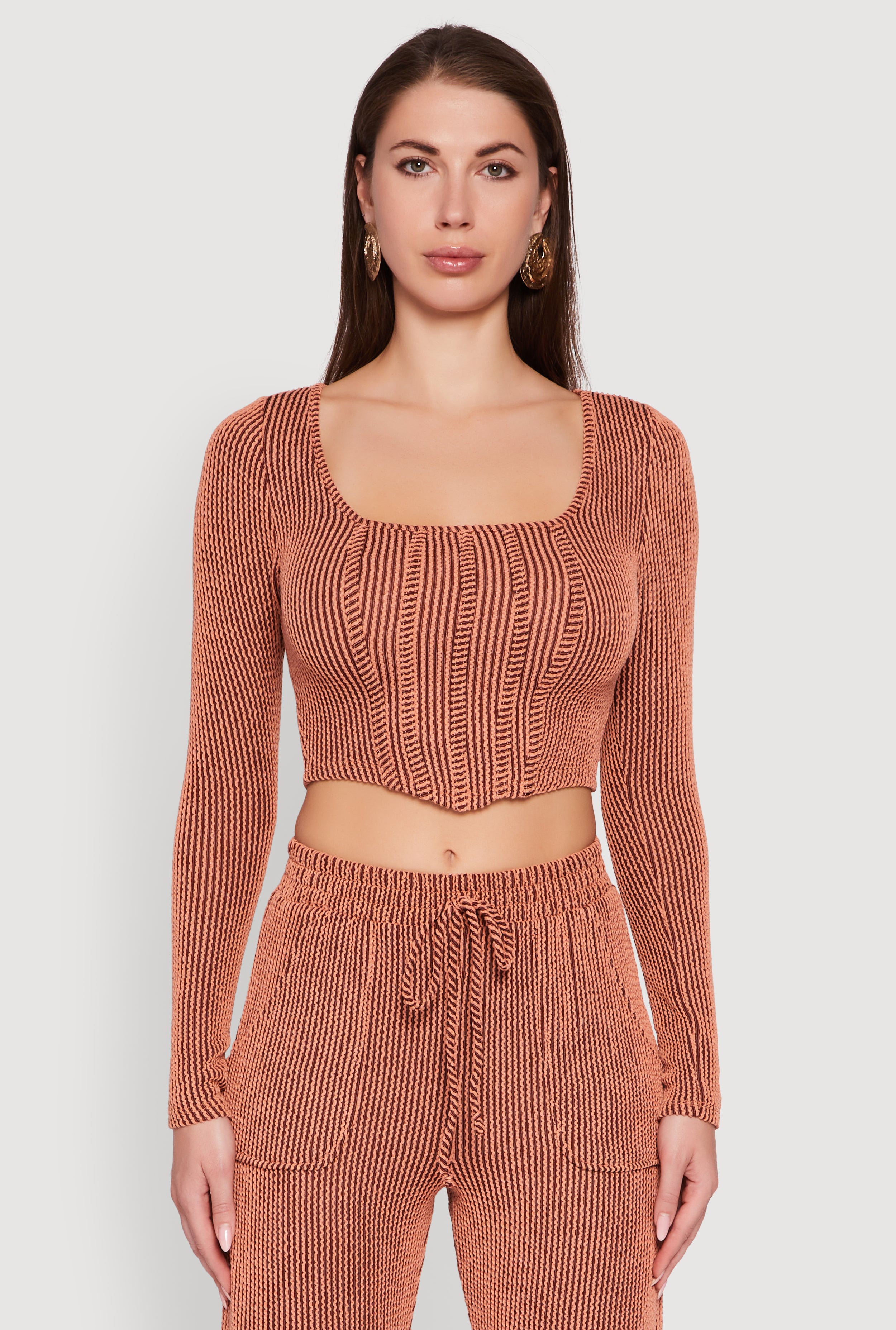 Rib Knit Shadow Stripe Corset Detail Crop Top