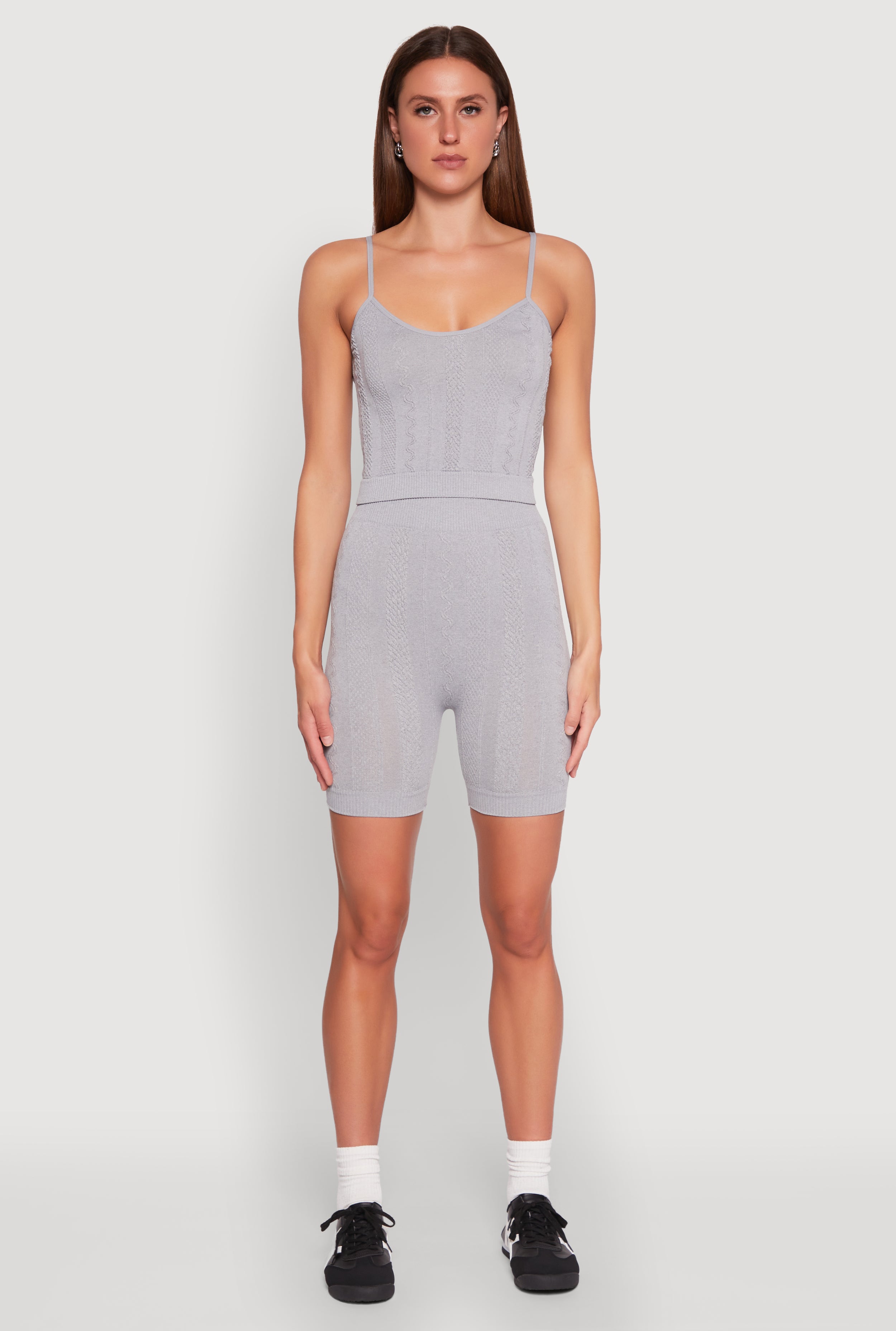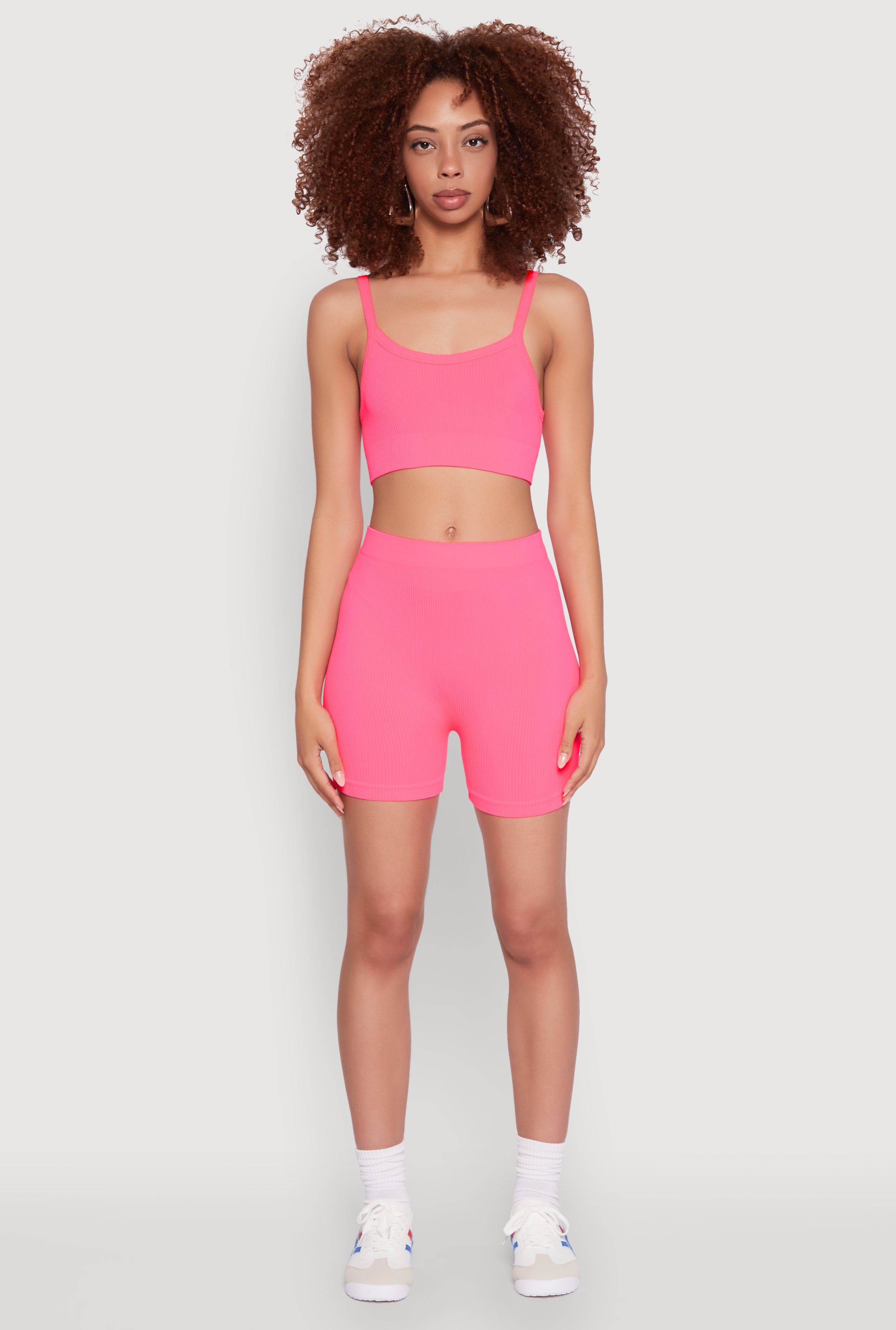 Seamless Textured Knit Cropped Cami and Bike Shorts