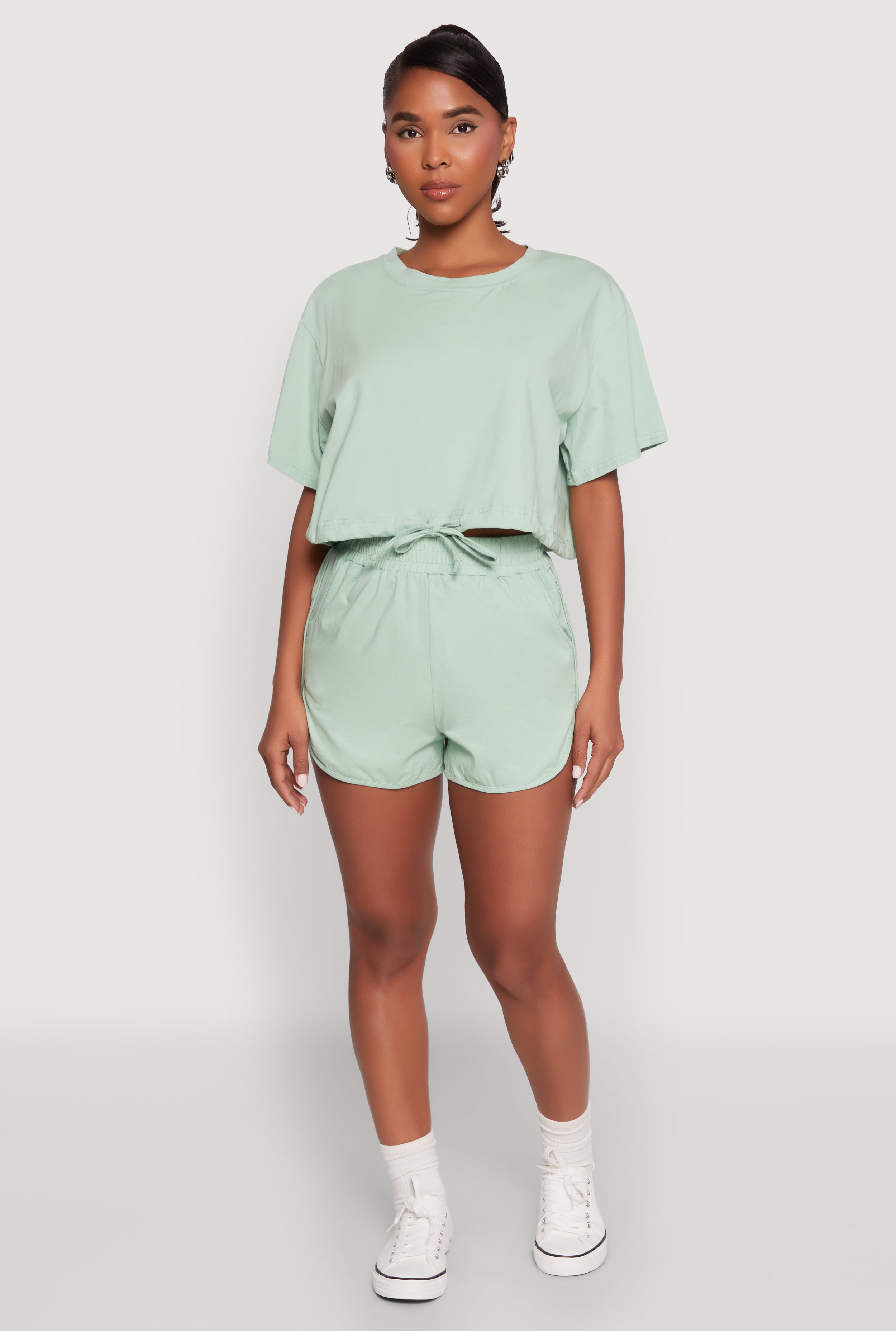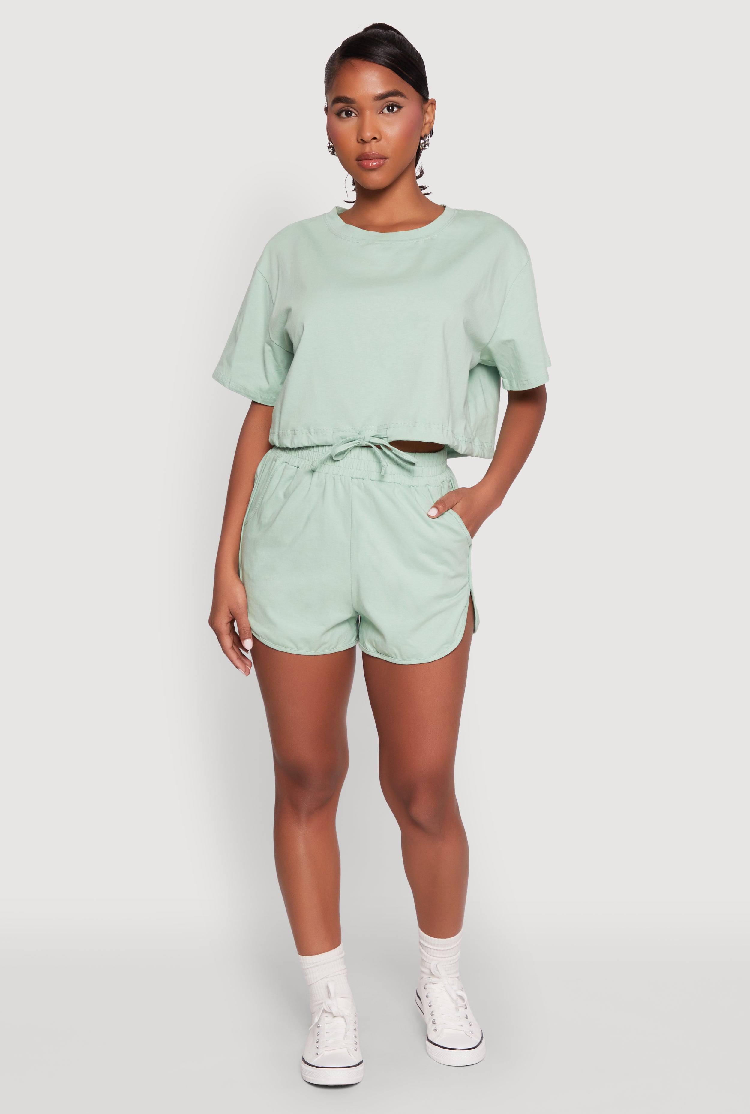 Daisy Short Sleeve Drawstring Hem Crop Top