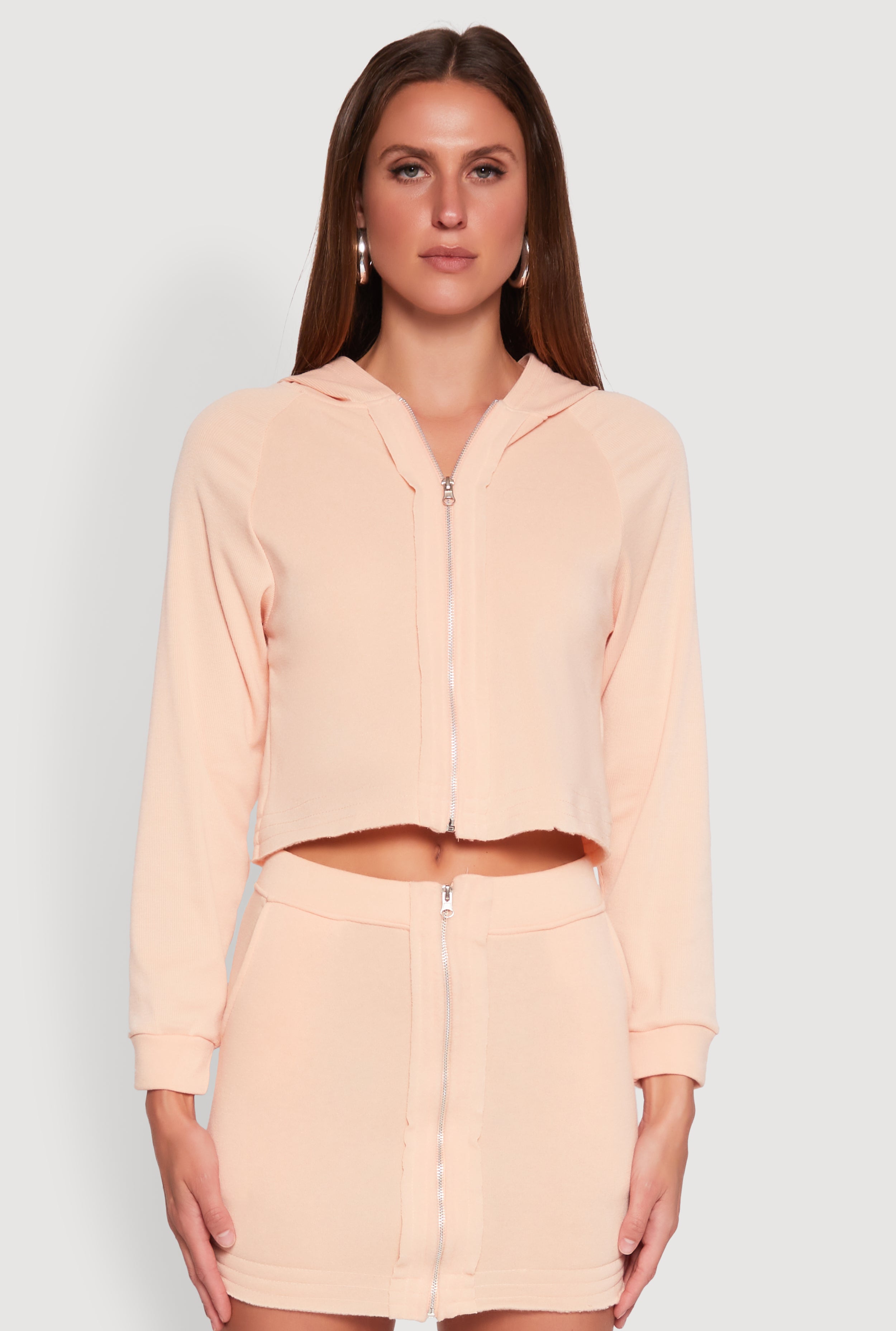 Fleece Lined Rib Knit Zip Front Sweatshirt