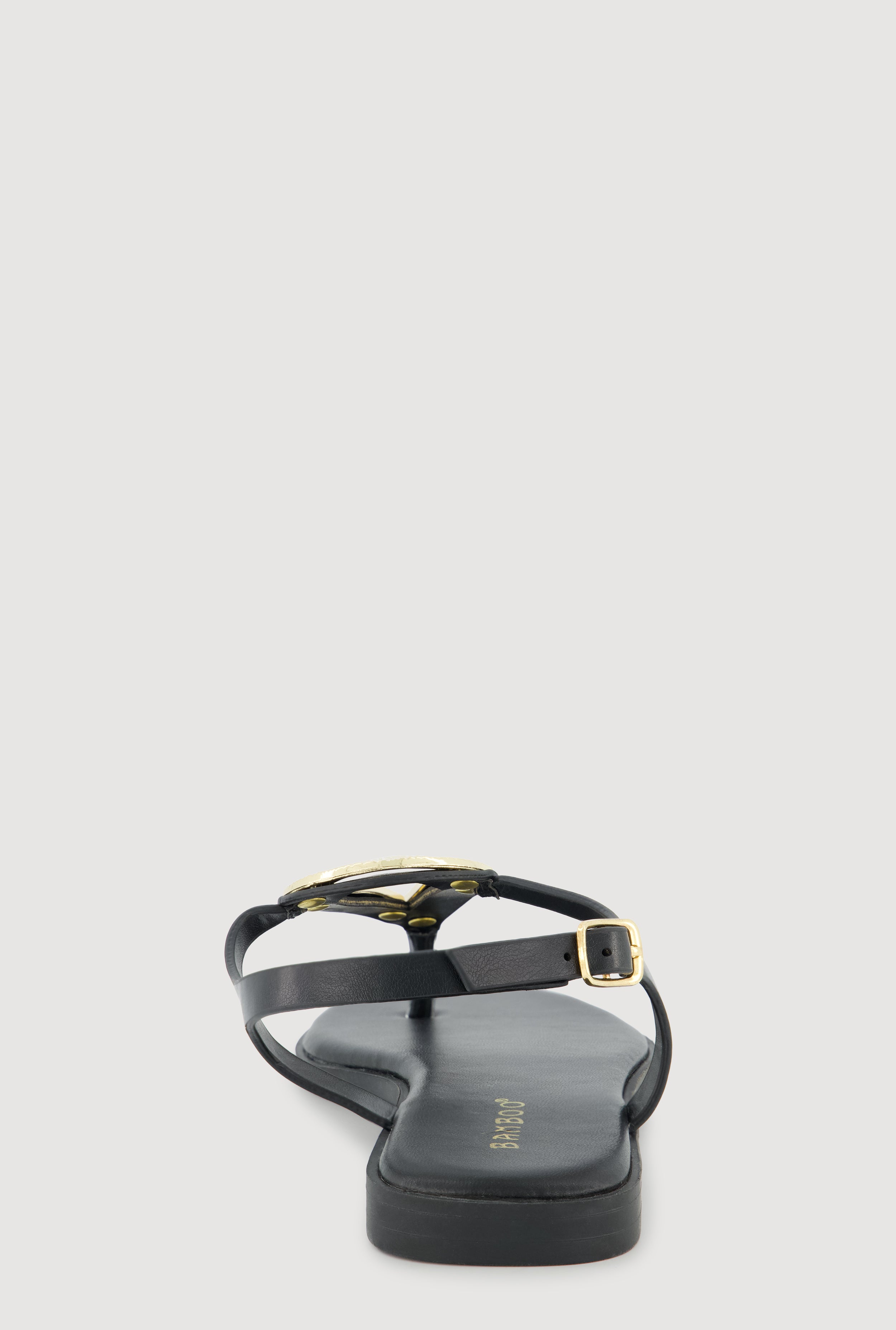Step into effortless style with these Metallic Loop Pendant Ankle Strap Thong Sandals. Perfect for sunny days and casual nights, they bring a sleek metallic shine to your look without sacrificing comfort. The ankle strap keeps you secure while the open toe design lets your feet breathe and shine. Whether you're heading to brunch or a beach day, these sandals are your new go-to for easy, chic vibes.