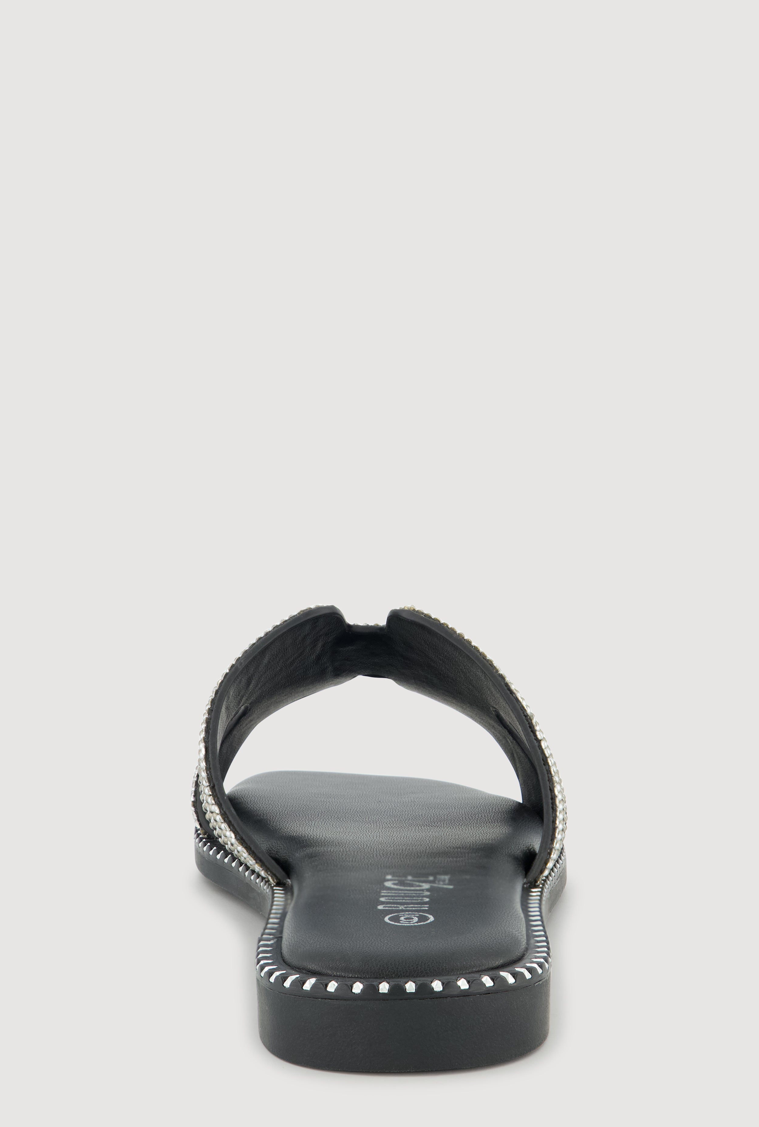Rhinestone Beaded H Band Slide Sandals with Studded Trim
