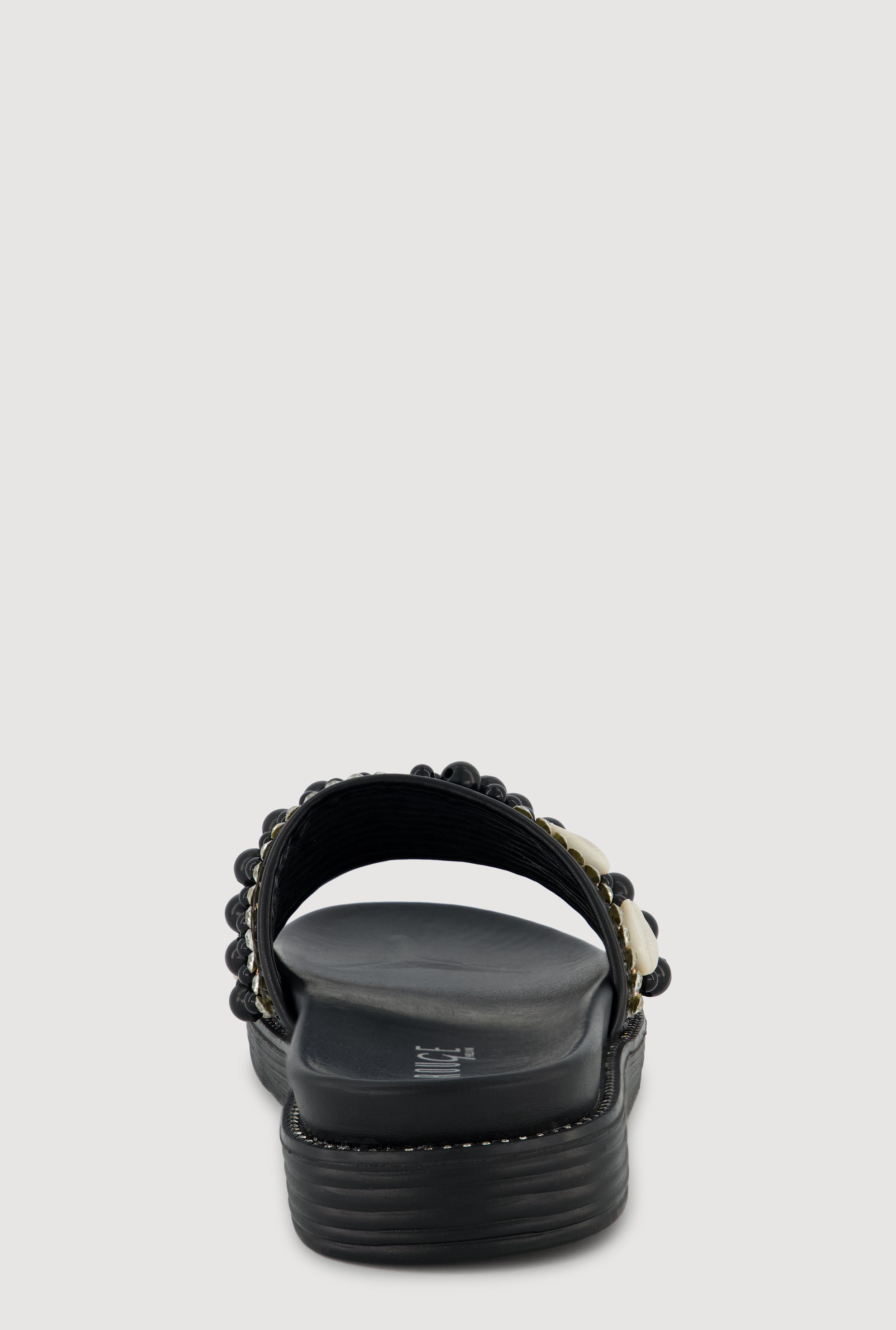 Step into effortless style with these Rhinestone Faux Pearl Band Slide Sandals. Designed to elevate your look with a touch of sparkle, these open-toe slides feature dazzling rhinestones and chic faux pearl accents that catch the light with every step. Perfect for sunny days, casual outings, or adding a glam twist to your everyday outfit, these sandals combine comfort and fashion in one easy slide-on design.