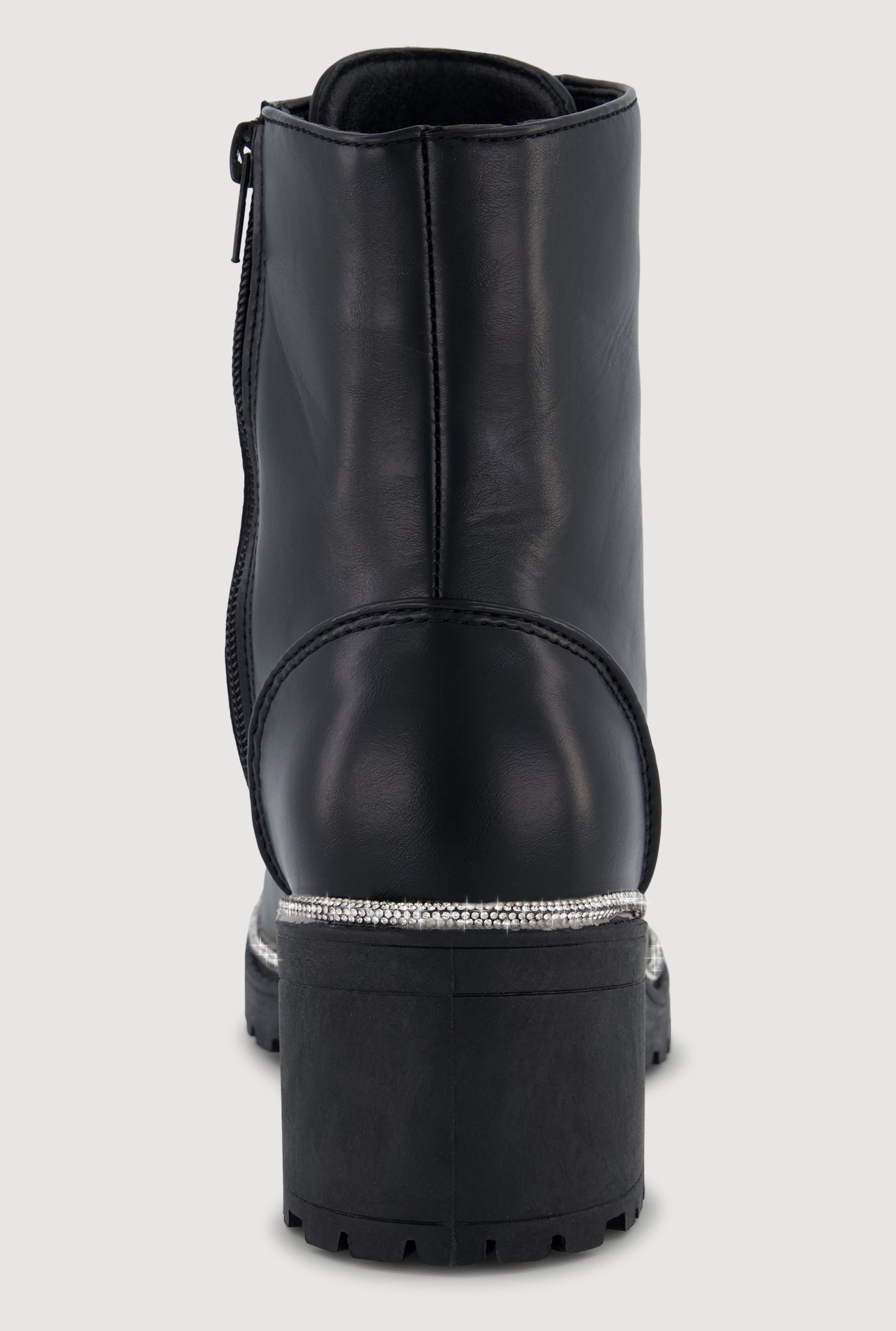 • Rhinestone Trim Lace Up Chunky Heel Combat Boots