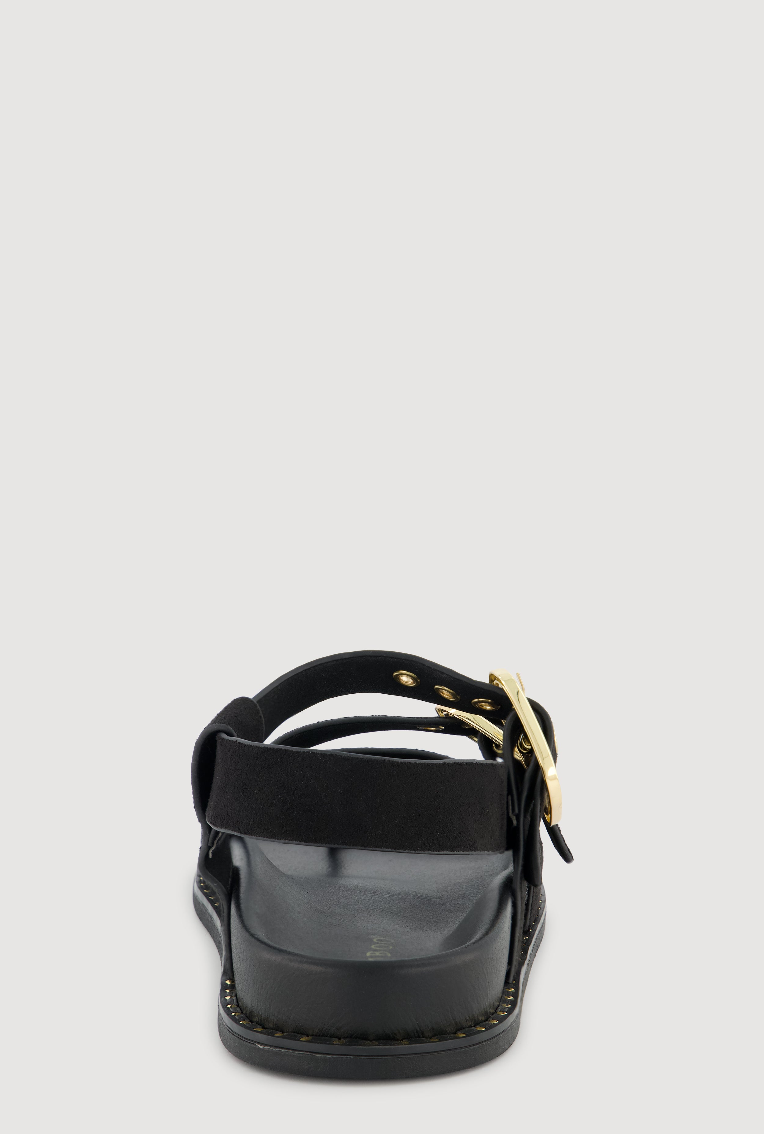 Buckled Studded Trim Faux Suede Toe Loop Slide Sandals