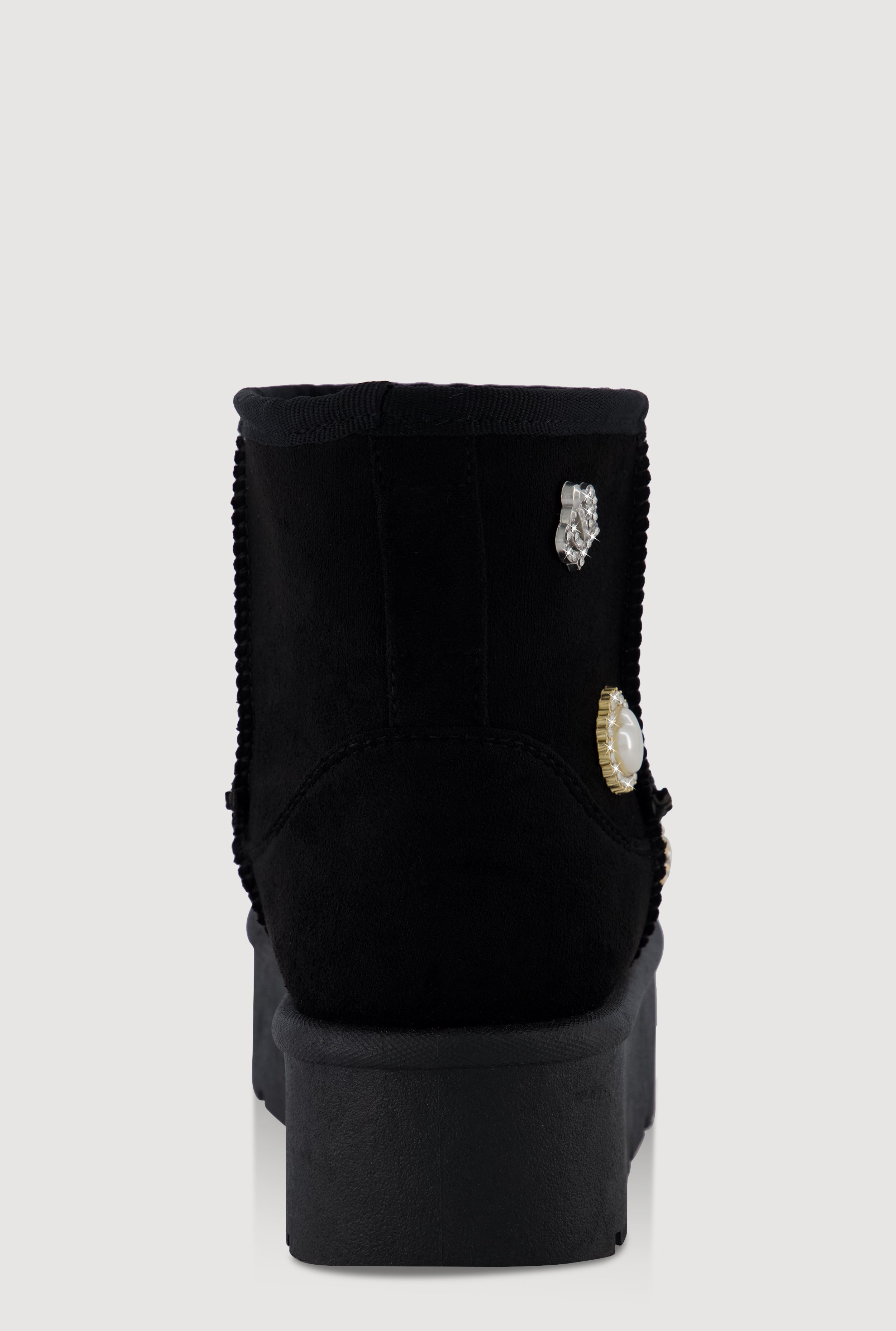 Step up your shoe game with these Faux Suede Platform Booties featuring sparkling rhinestone charms. Designed for those who love a little extra shine and a lot of style, these ankle-high booties bring effortless cool to any outfit. The comfy flat platform heel and easy pull-on design make them perfect for all-day wear, whether you’re hitting the city streets or catching up with friends. Get ready to turn heads and feel fabulous without breaking the bank.