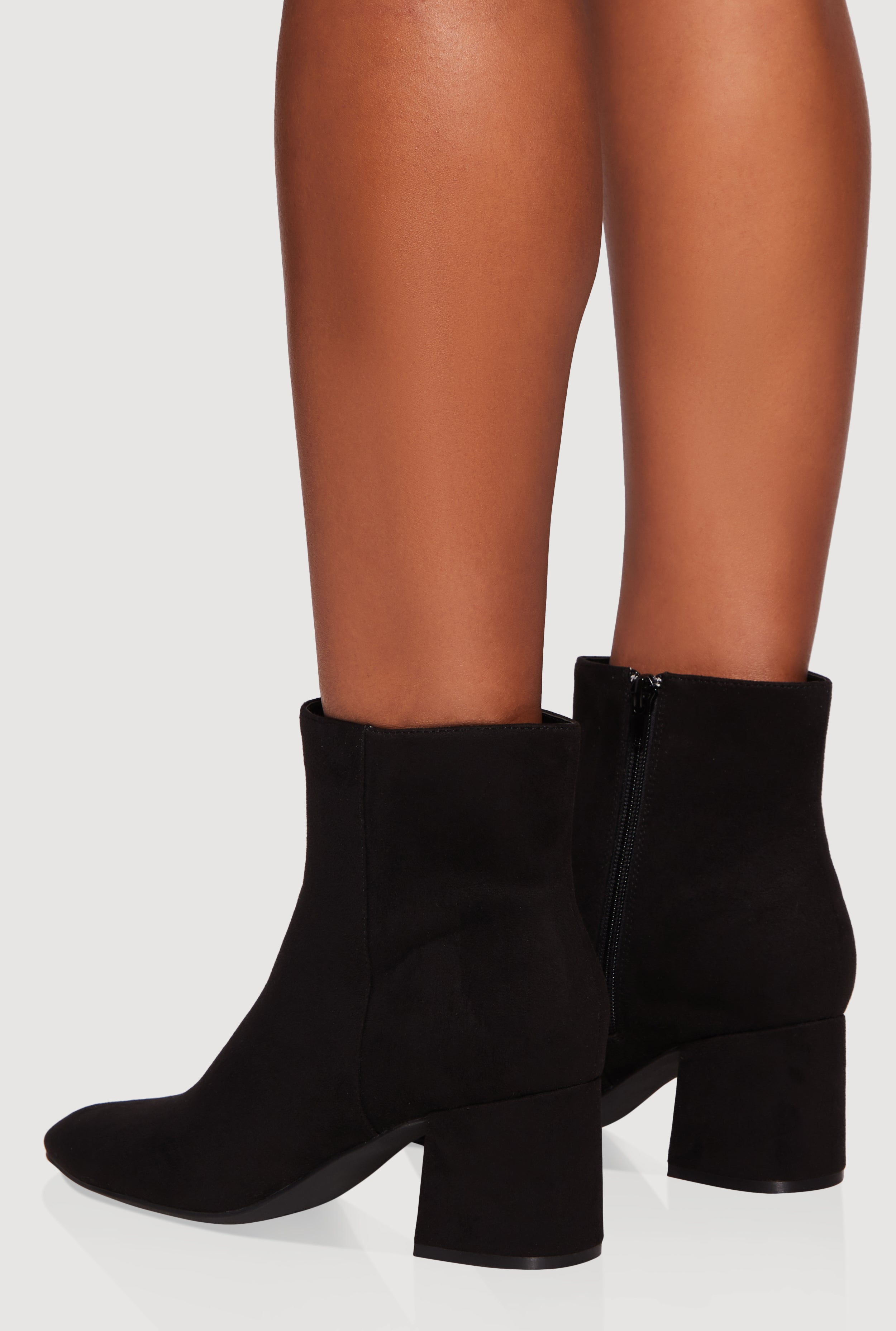 Side Zip Block Heel Pointy Toe Booties