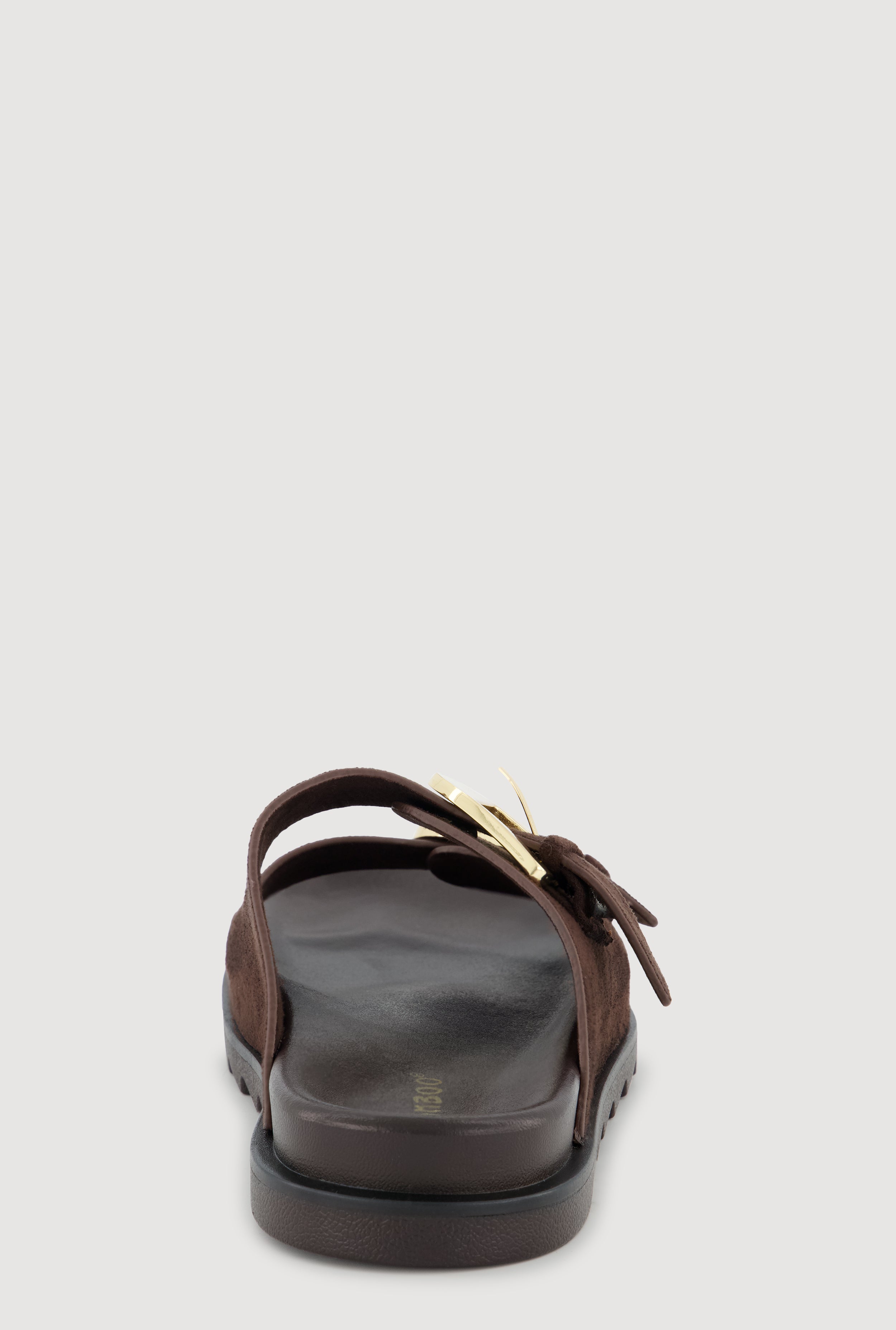 • Faux Suede Double Metallic Buckle Slide Sandals