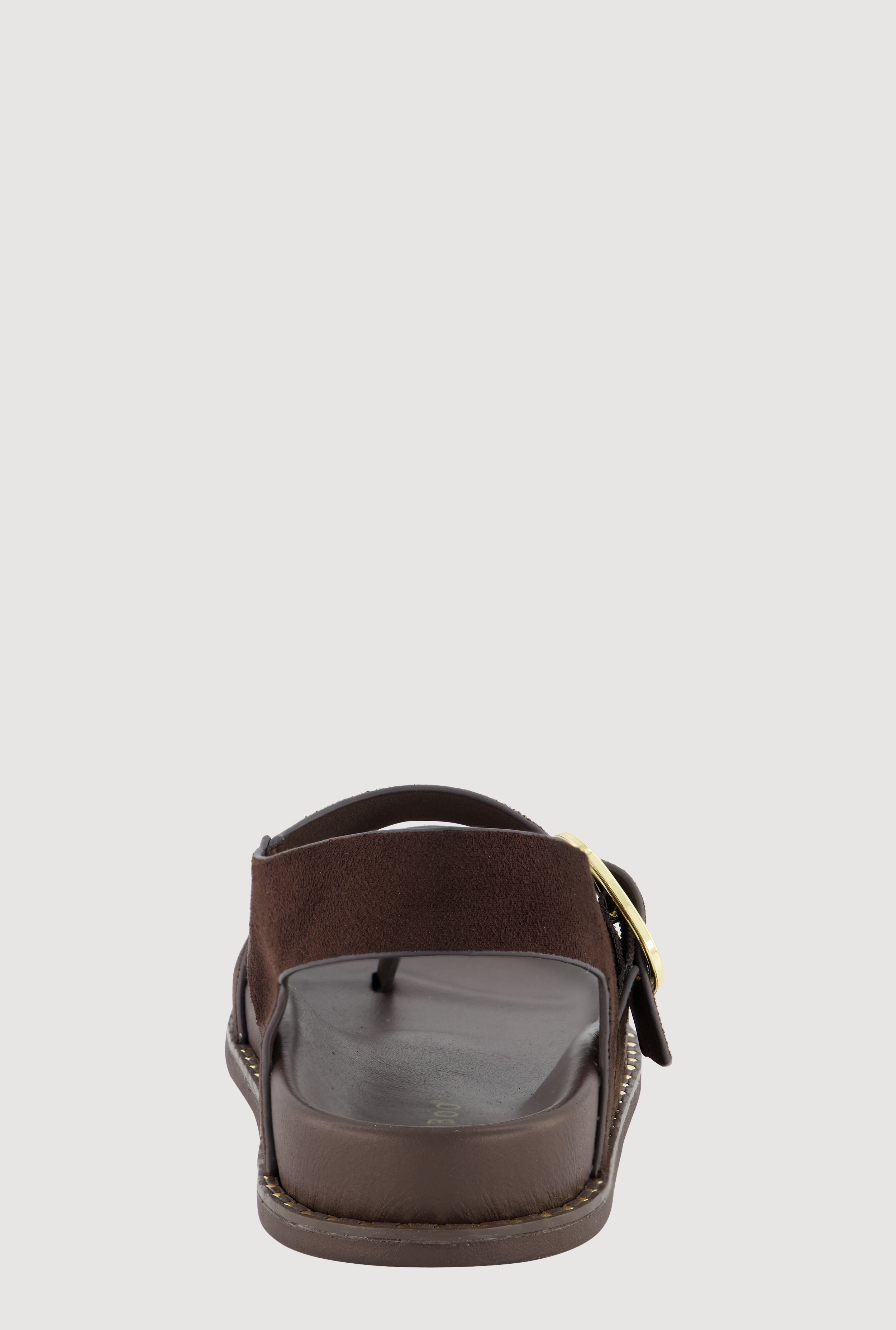 Metallic Buckle Faux Suede Toe Loop Sandals
