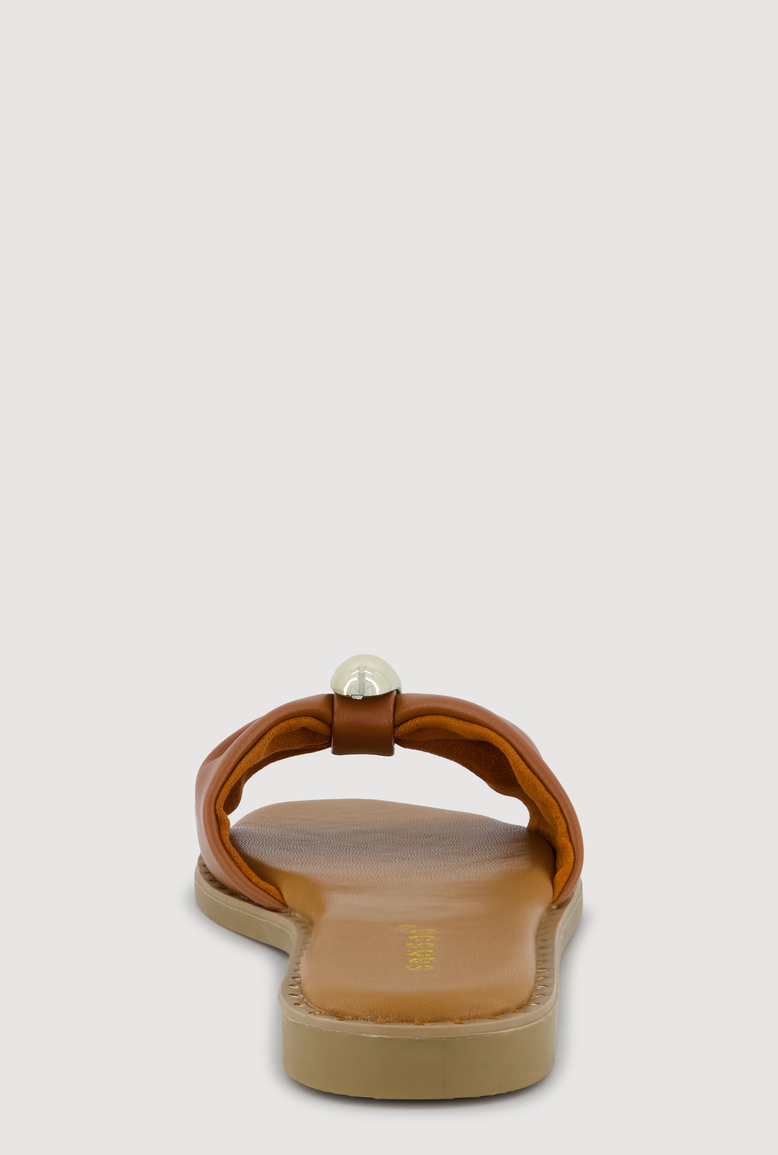 Step into effortless style with the Bow Band Metallic Detail Slide Sandals. These chic slides feature a playful bow and eye-catching metallic accents that add a touch of glam to any casual outfit. Perfect for sunny days or laid-back nights, their open-toe design keeps your feet cool while the flat heel ensures all-day comfort. Whether you're hitting the beach or strolling through the city, these slides bring a trendy vibe without breaking the bank.