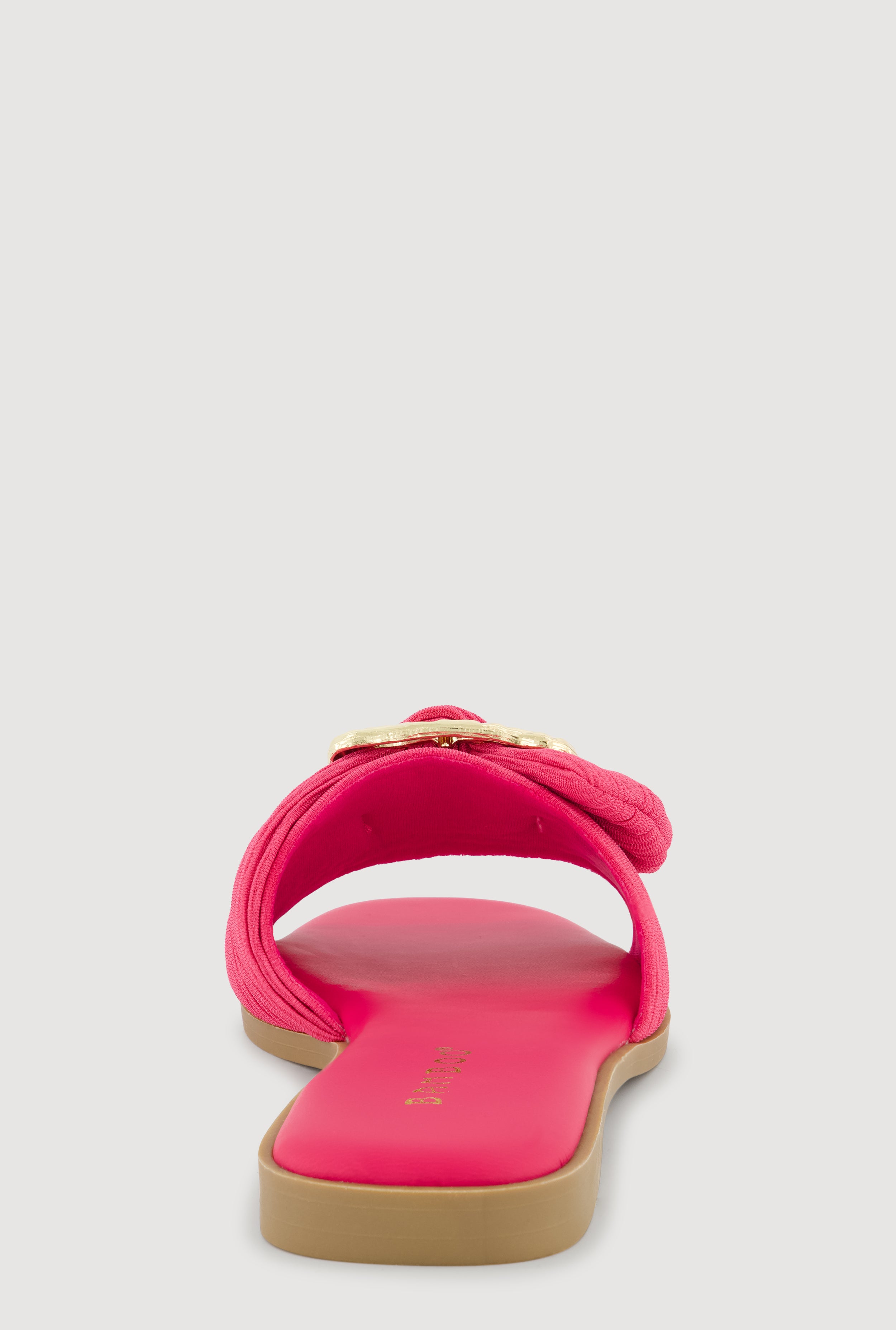 Step into effortless style with these Metallic Buckle Band Slide Sandals. Perfect for sunny days and weekend vibes, their sleek metallic finish adds a touch of glam to any outfit. The open toe design keeps your feet cool while the flat heel ensures all-day comfort. Whether you're hitting the beach or running errands, these slides make it easy to look cool without trying too hard.