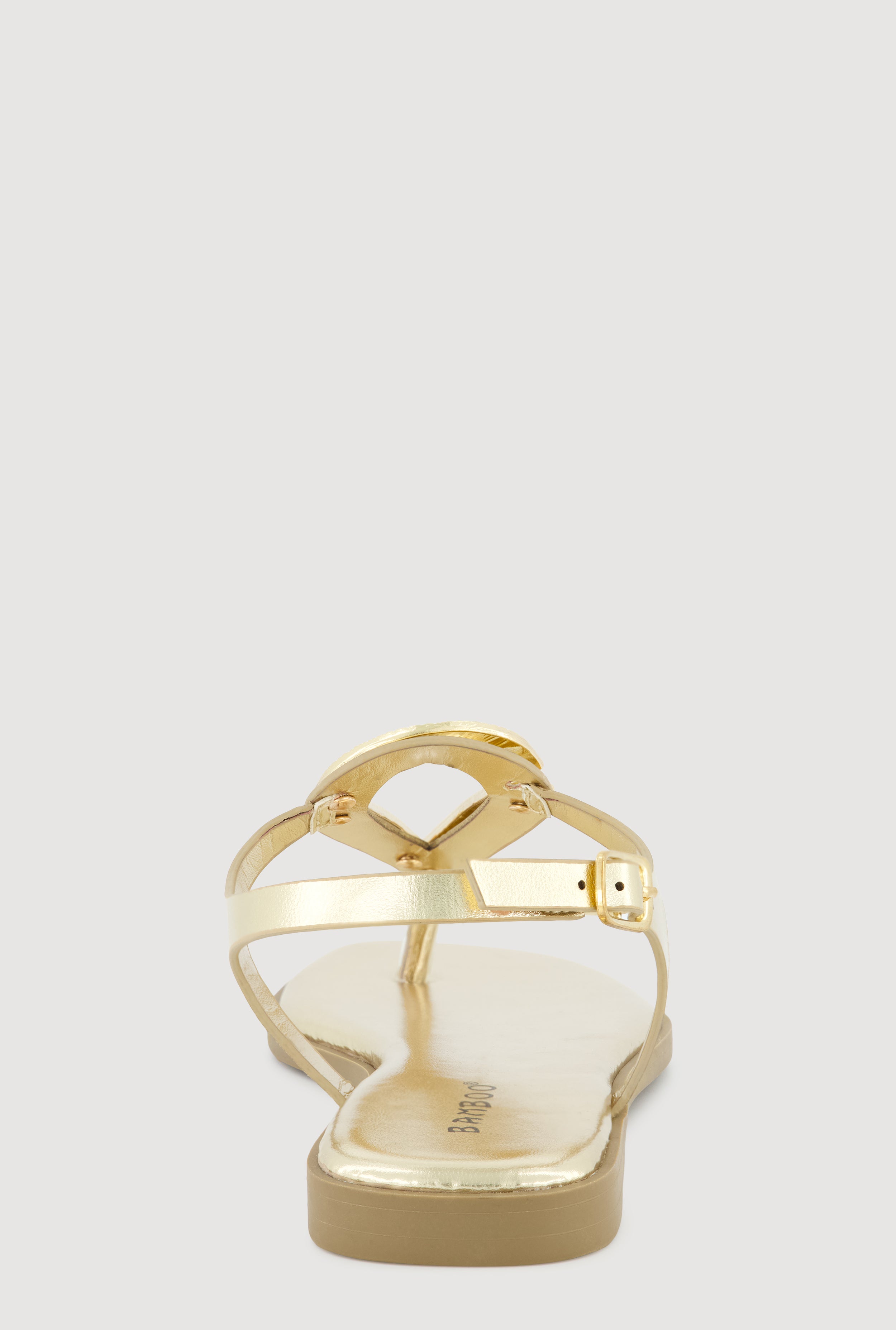Step into effortless style with these Metallic Loop Pendant Ankle Strap Thong Sandals. Perfect for sunny days and casual nights, they bring a sleek metallic shine to your look without sacrificing comfort. The ankle strap keeps you secure while the open toe design lets your feet breathe and shine. Whether you're heading to brunch or a beach day, these sandals are your new go-to for easy, chic vibes.