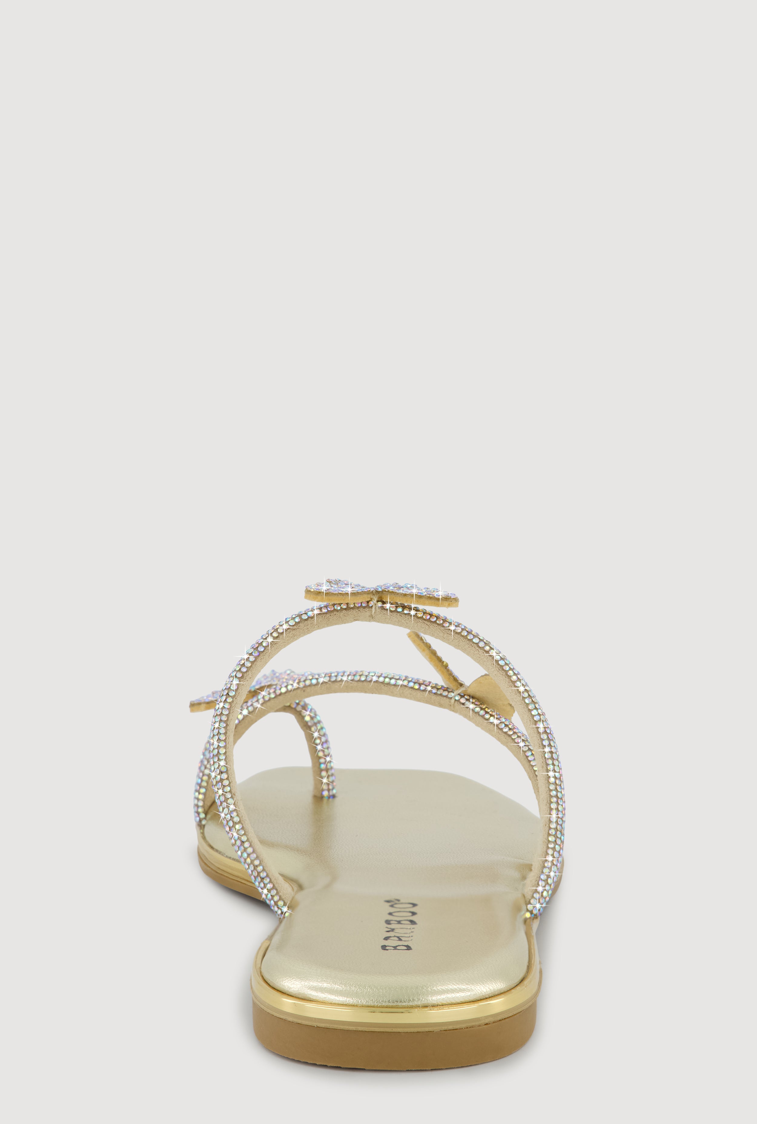 Step into summer sparkle with these Rhinestone Butterfly Toe Loop Sandals. Designed to catch eyes and keep you comfy, these flat sandals feature a chic open toe and a delicate toe loop adorned with shimmering rhinestones. Perfect for adding a touch of glam to your casual looks or dressing up your beach day outfit, they blend style and ease effortlessly.