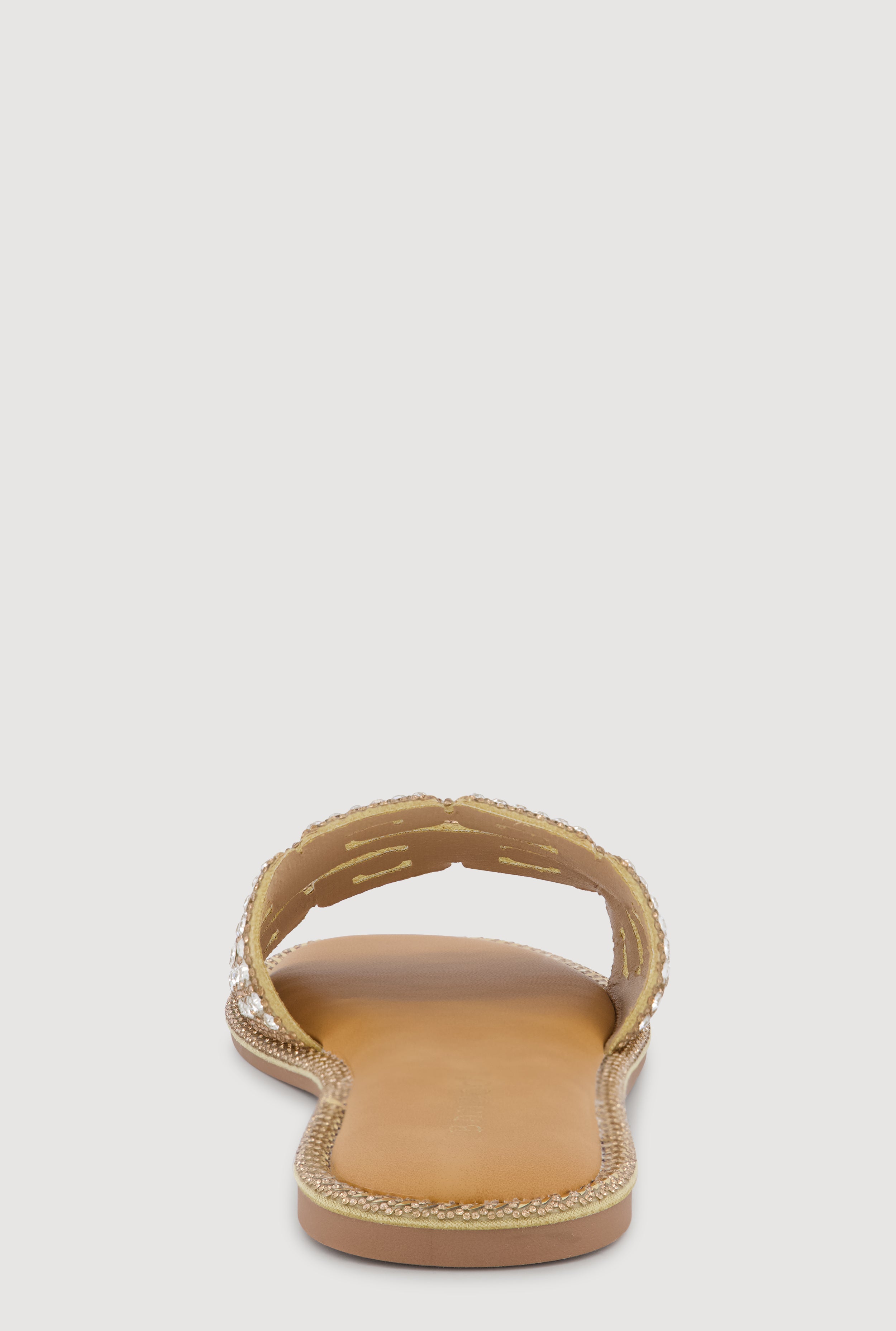 These slide sandals feature a flat sole and an open toe design for easy wear. The standout band showcases a geometric Greek key pattern embellished with rhinestones, adding a touch of sparkle. Perfect for casual occasions, they elevate any outfit with a subtle yet stylish finish.