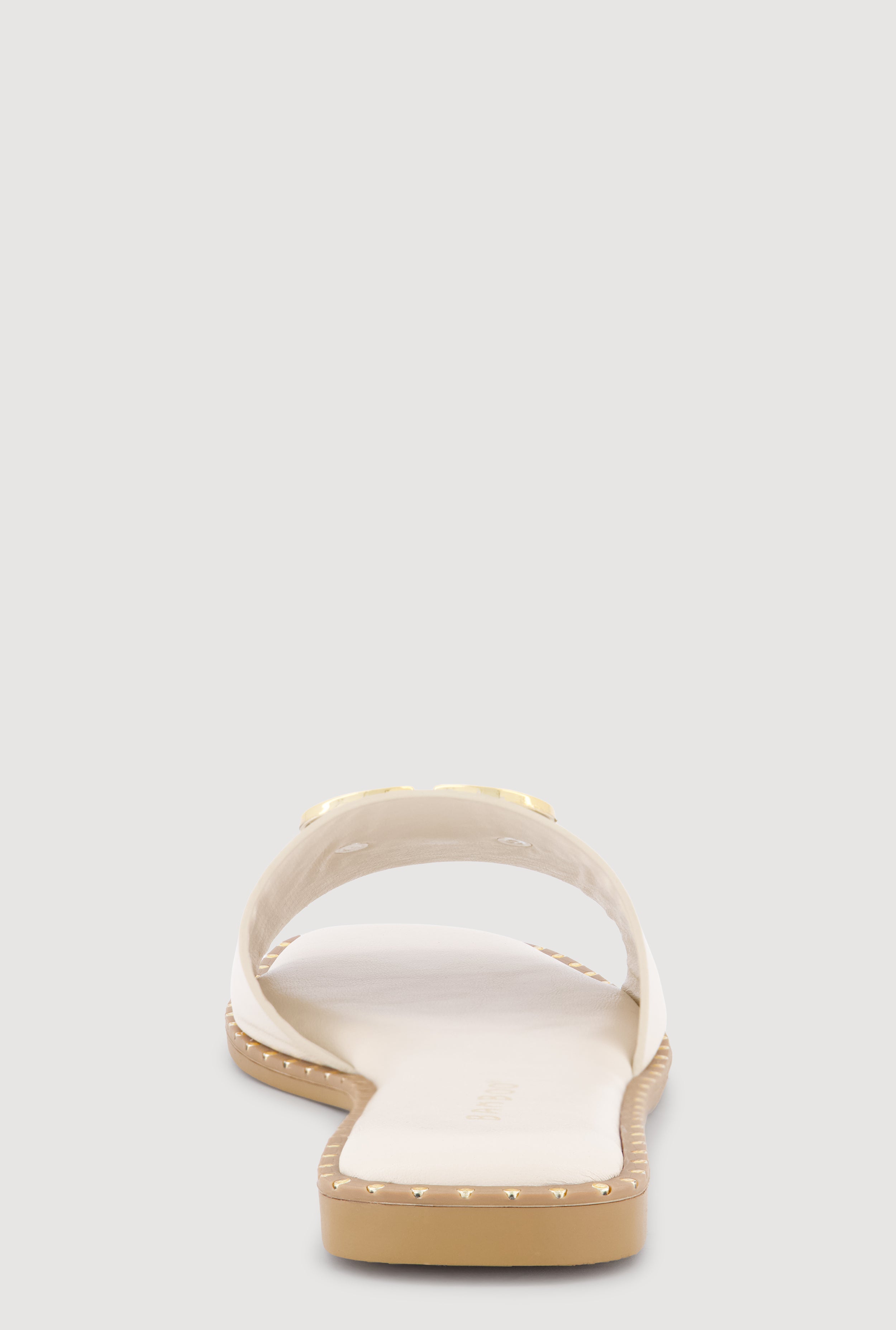 Step up your summer style with these Metallic Rhinestone Pendant Single Band Open Toe Sandals. Designed to catch eyes and add a touch of sparkle to any outfit, these flat heel slides combine comfort and glam effortlessly. Perfect for beach days, casual hangouts, or festival vibes, they bring a fresh twist to your everyday look.