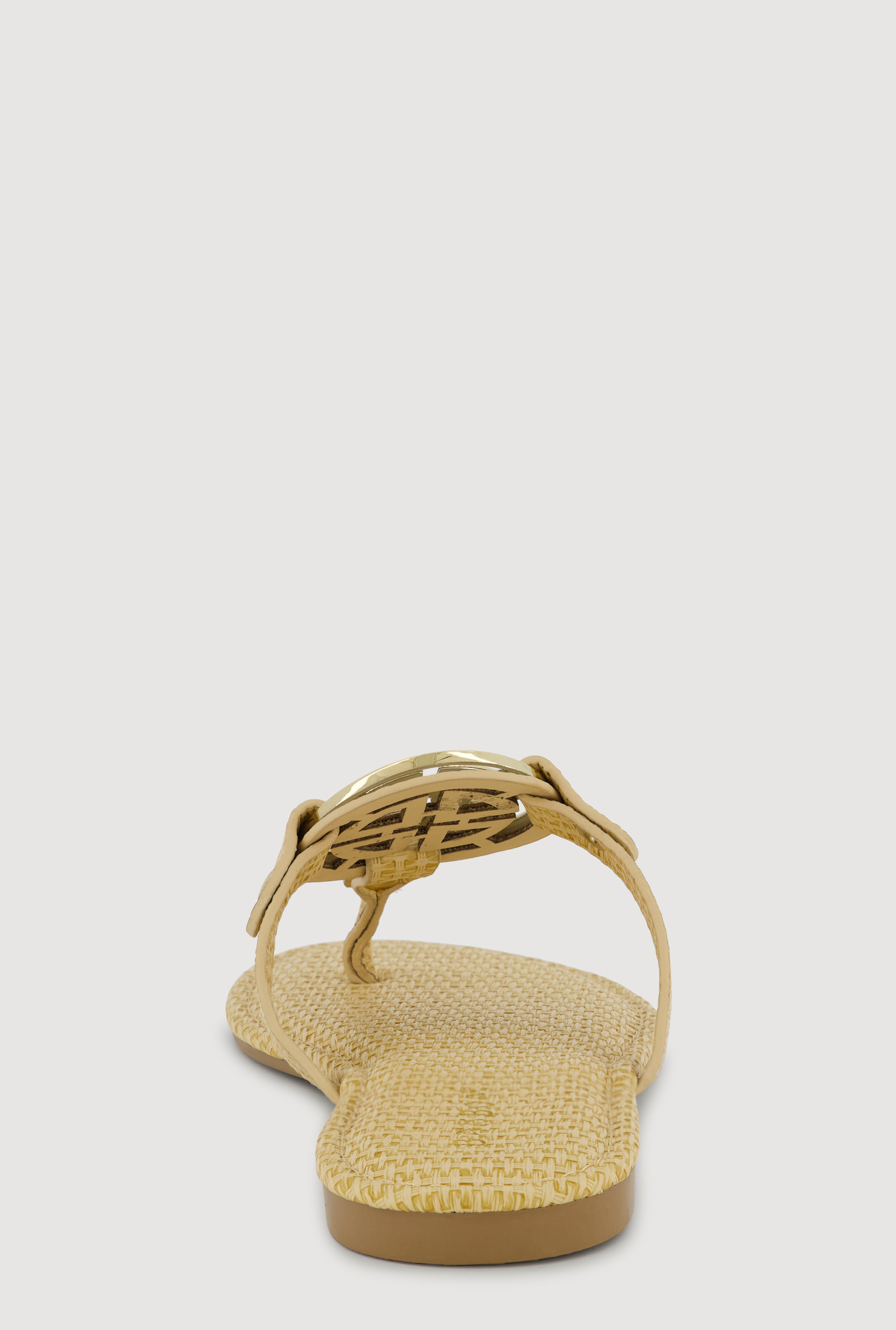 Step into effortless style with these Metallic Geometric Pendant Studded Thong Sandals. Perfect for sunny days and casual outings, they combine eye-catching metallic accents with a trendy thong design to keep your look fresh and fun. Whether you're hitting the beach or strolling through the city, these sandals deliver comfort and a bold statement that turns heads.
