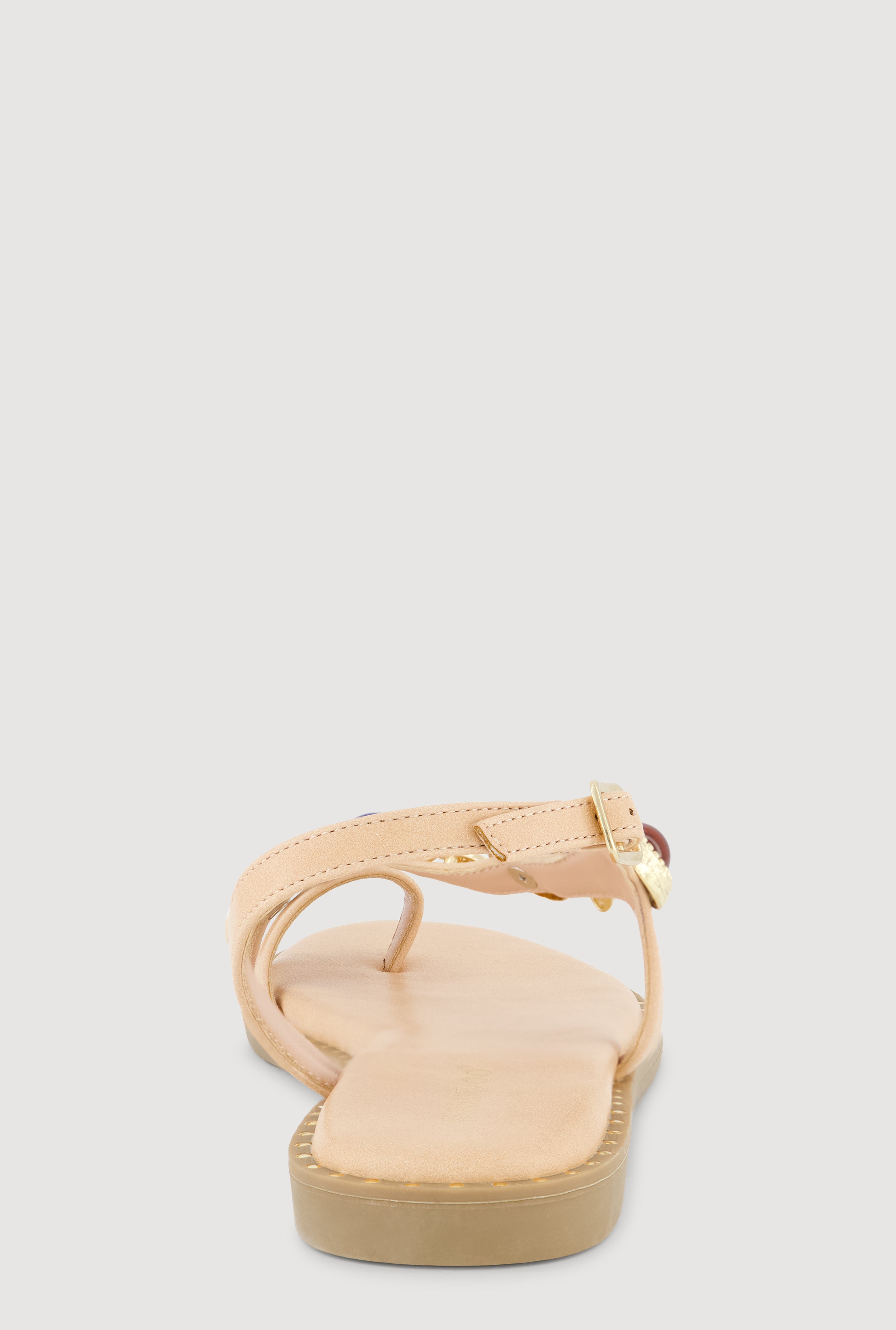 Step into effortless style with the Charm Detail Toe Loop Sandals. These flat-heeled beauties combine the perfect open-toe design with eye-catching charm accents that add a playful sparkle to every step. Whether you're hitting the beach or brunch, the toe loop keeps you comfy and secure while the metallic and rhinestone details bring that extra wow factor. Ready to shine without breaking the bank? These sandals are your new go-to for easy, breezy vibes all season long.