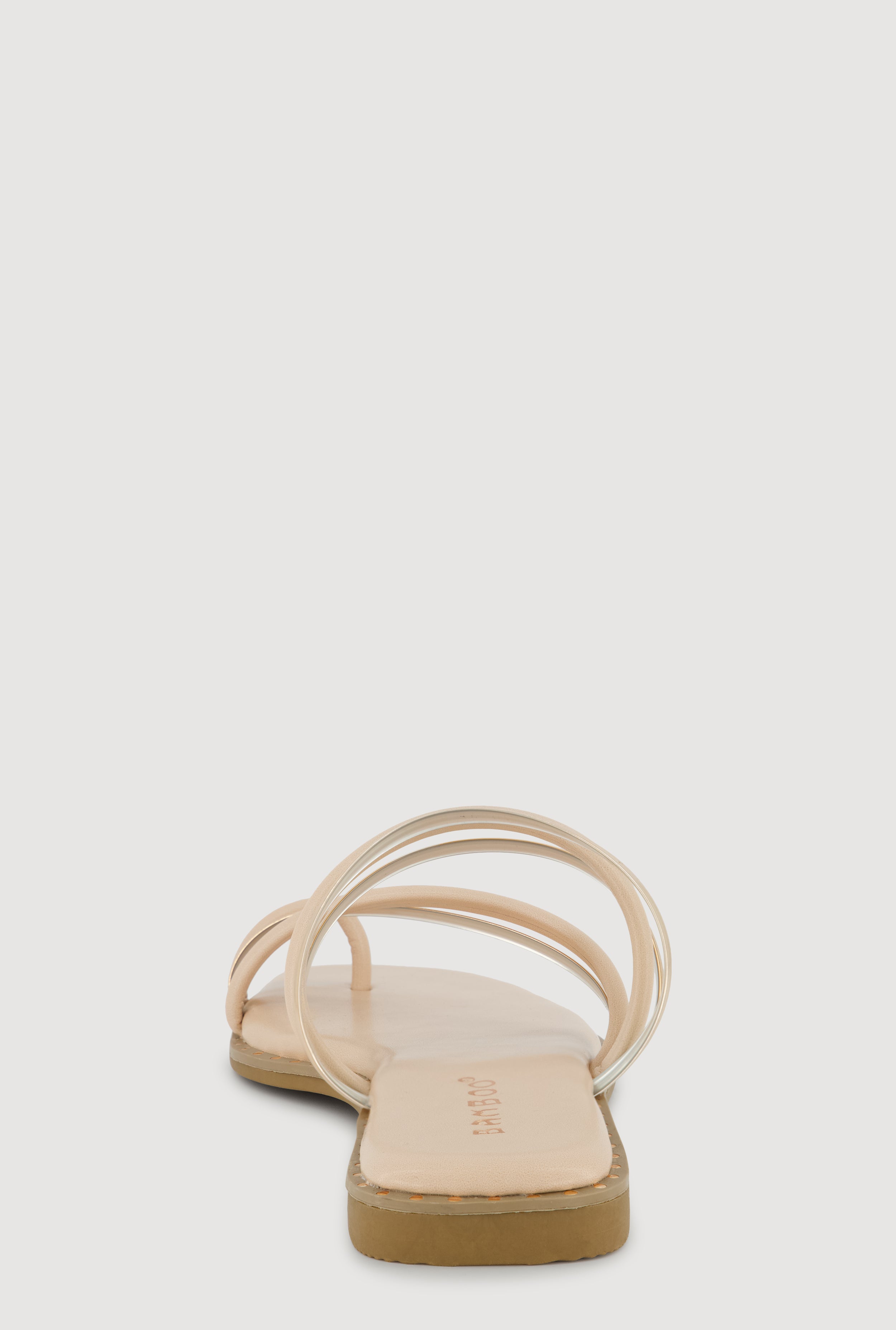 Step out in style with these Metallic Asymmetrical Strappy Toe Loop Sandals that bring a fresh twist to your warm-weather wardrobe. Featuring a sleek metallic finish and an eye-catching asymmetrical design, these slides add a dash of sparkle and modern edge to any outfit. The open toe and flat heel make them perfect for all-day comfort, while the unique toe loop keeps your feet secure as you stroll. Whether you're hitting the beach or the city streets, these sandals are your go-to for effortless cool vibes.
