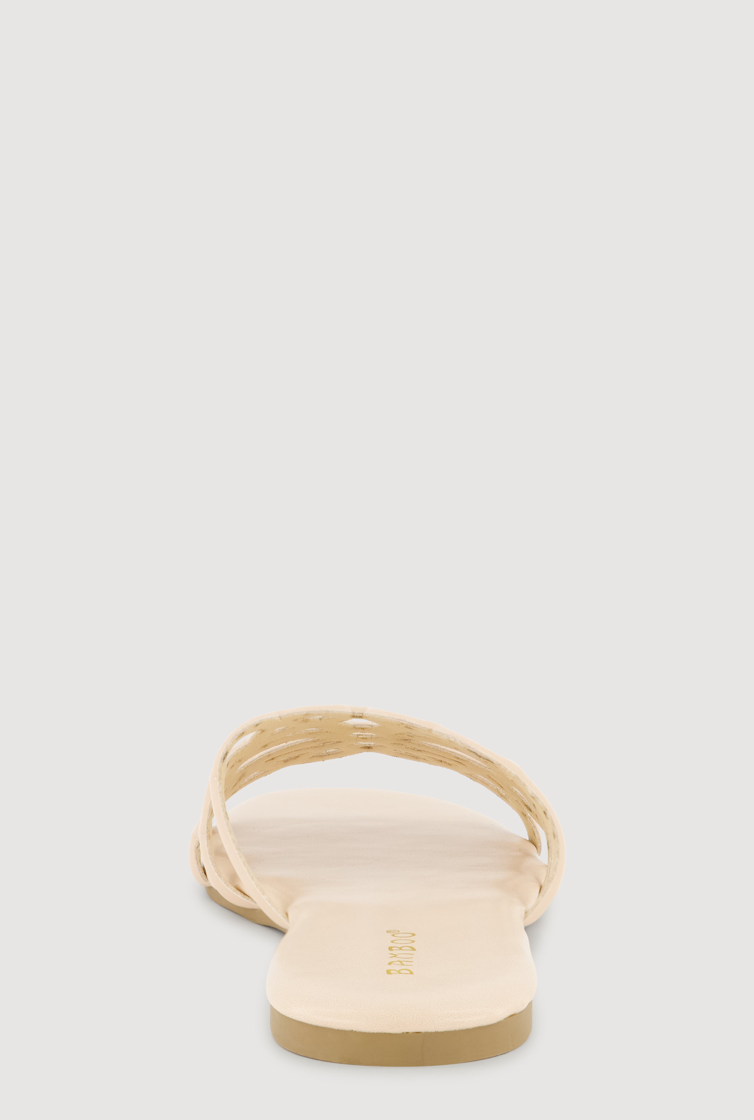 Step into effortless style with these Faux Leather Geometric Band Detail Slide Sandals. Perfect for those sunny days when you want to keep it cool and casual, these slides blend modern design with everyday comfort. The geometric band adds a trendy twist that makes your outfit pop without trying too hard. Whether you're hitting the beach or running errands, these sandals offer a laid-back vibe with a fashion-forward edge.