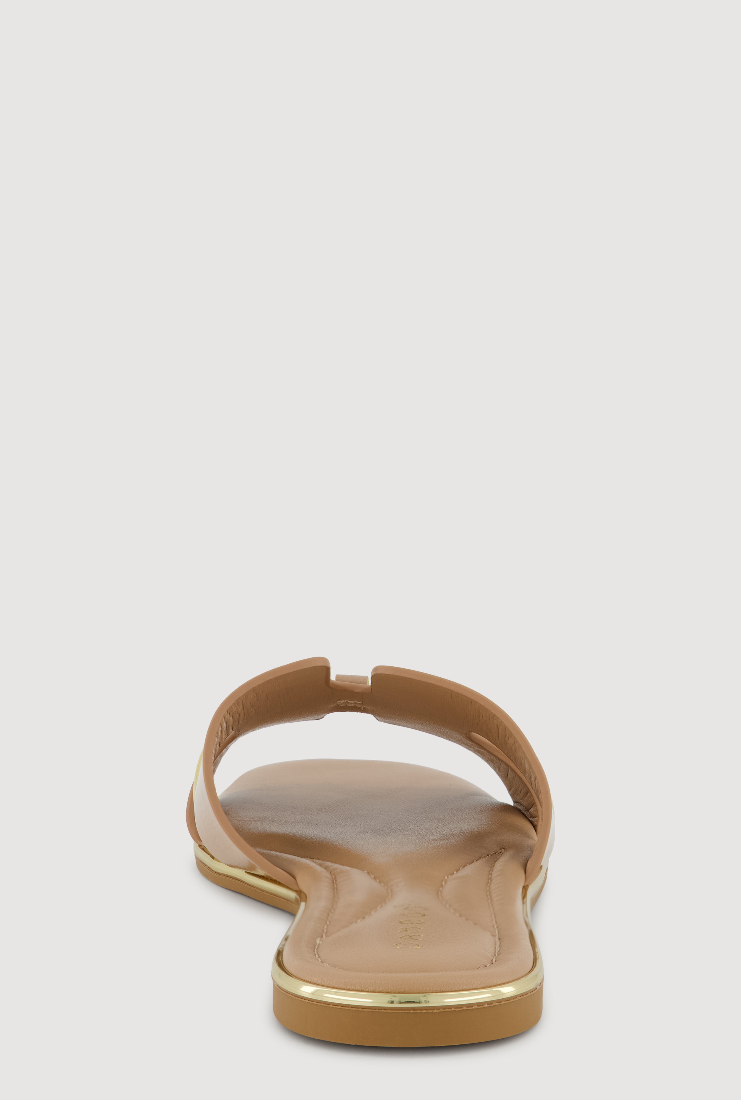 Step into effortless style with these Metallic Trim H Band Slide Sandals. Perfect for sunny days and casual outings, their sleek open-toe design keeps your feet cool while the metallic trim adds a subtle pop of shine. These flat-heeled slides are easy to slip on and off, making them your go-to for laid-back vibes with a touch of glam. Whether you’re heading to the beach or running errands, these sandals blend comfort and trend without breaking the bank.