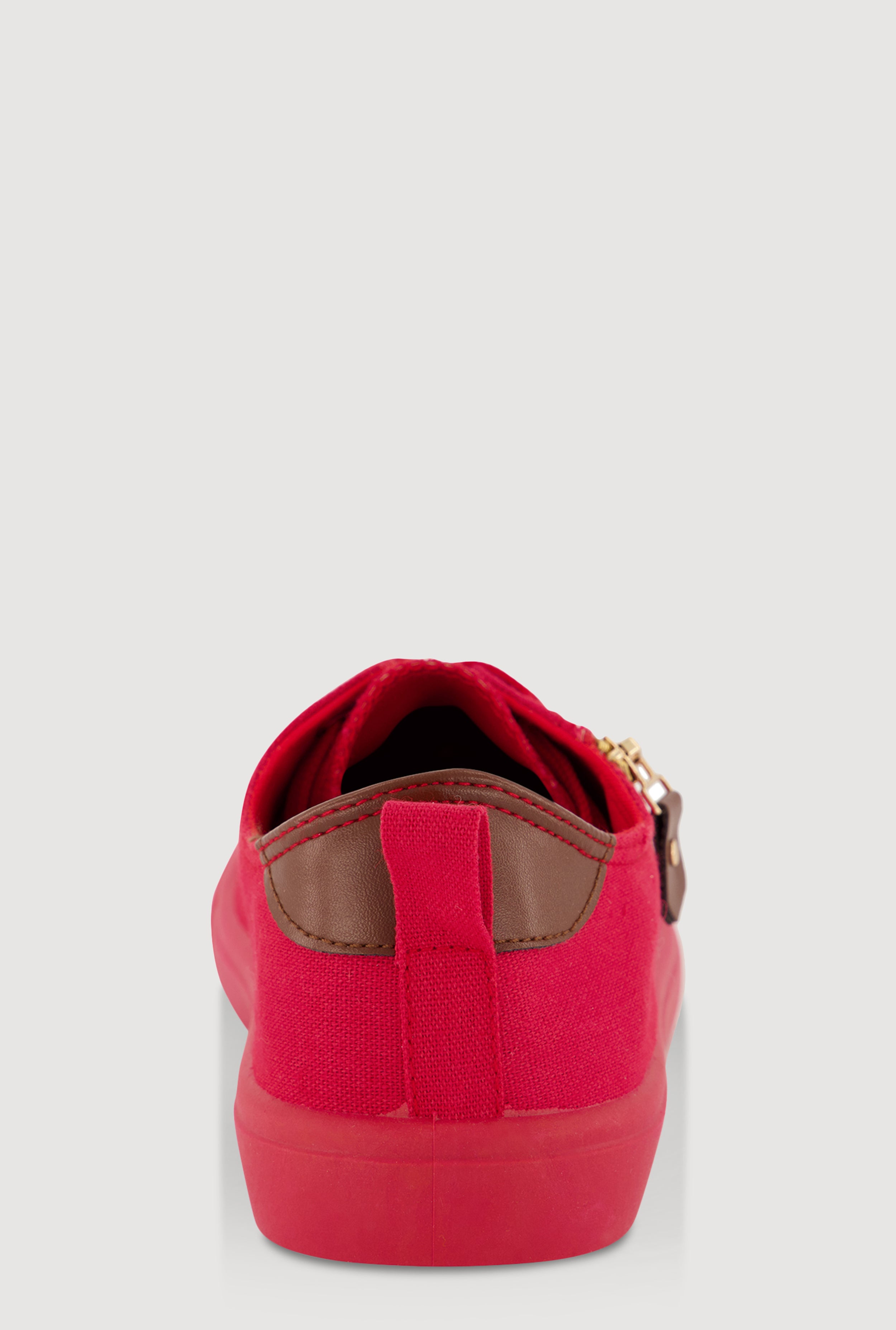 Step up your sneaker game with these Zipper Detail Lace Up Low Top Sneakers. Perfect for those who love a mix of edgy and casual, these kicks feature ornamental zippers and classic lace-up styling for a trendy look that stands out. The round toe and flat heel keep comfort front and center, making them your go-to for all-day wear. Whether you're hitting the streets or hanging out with friends, these sneakers add a cool vibe to any outfit.