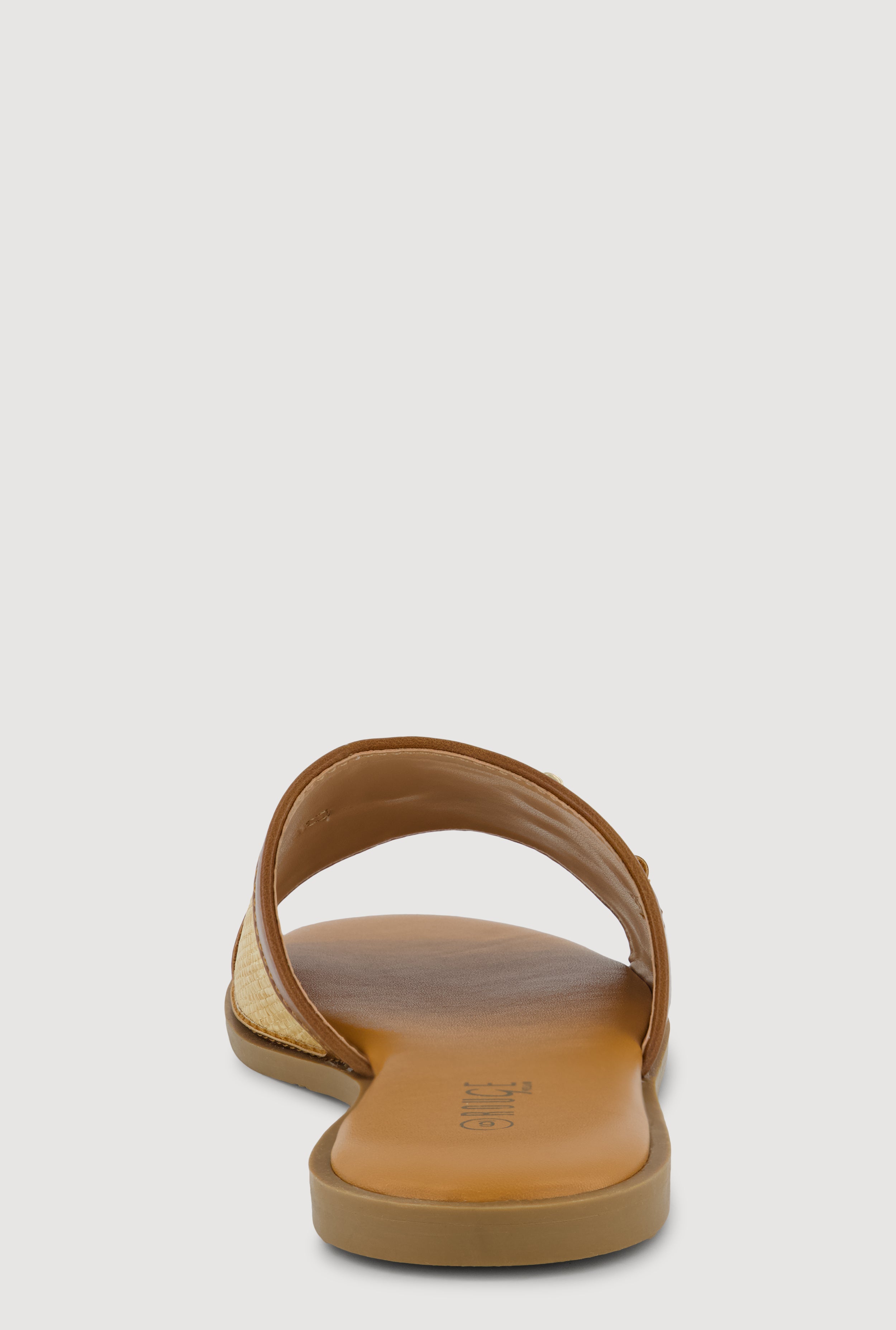 Slide into effortless style with these open-toe sandals designed for casual vacation vibes. Crafted with faux leather and tweed textures, they feature a signature horsebit detail that adds a polished finish to any warm-weather outfit.