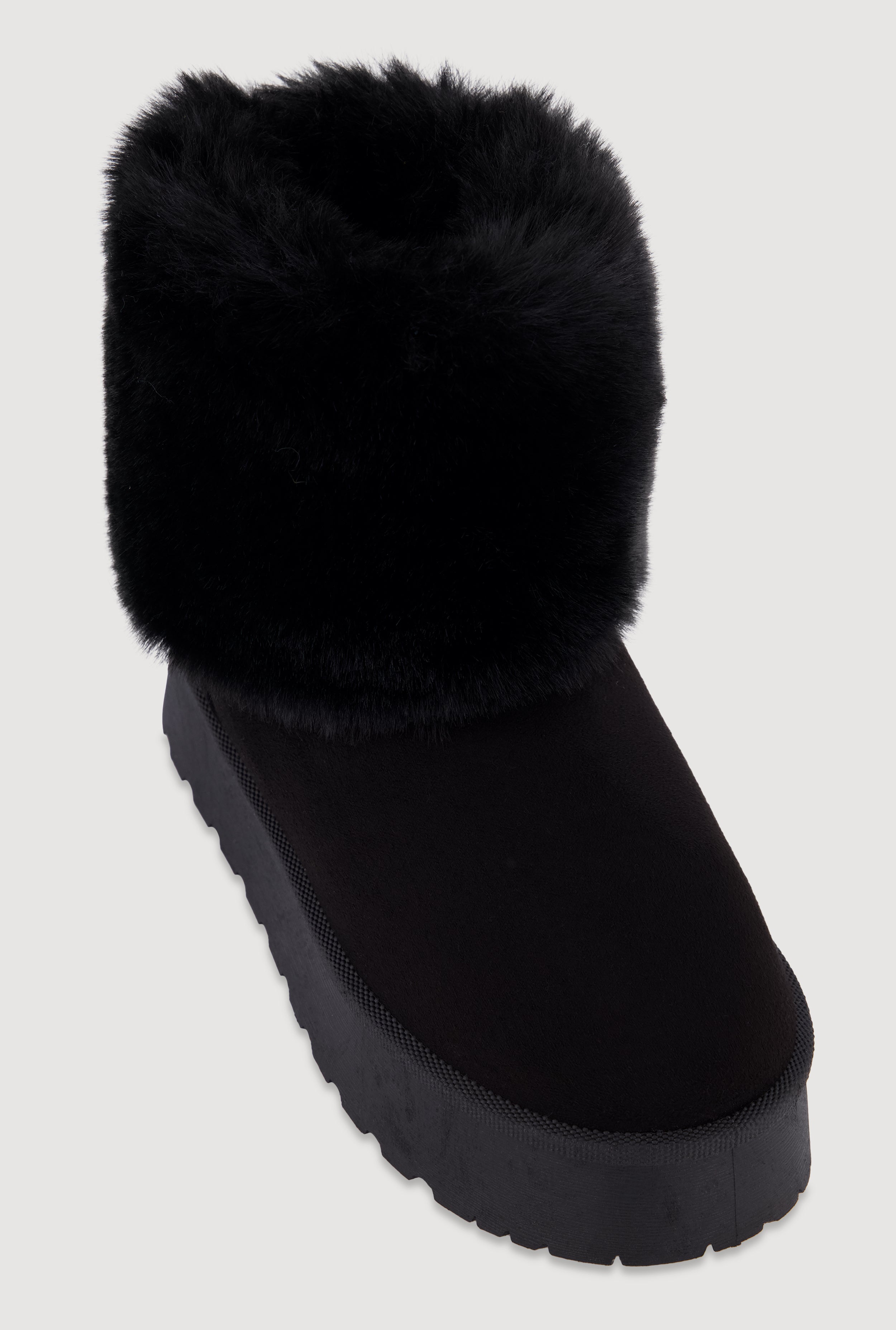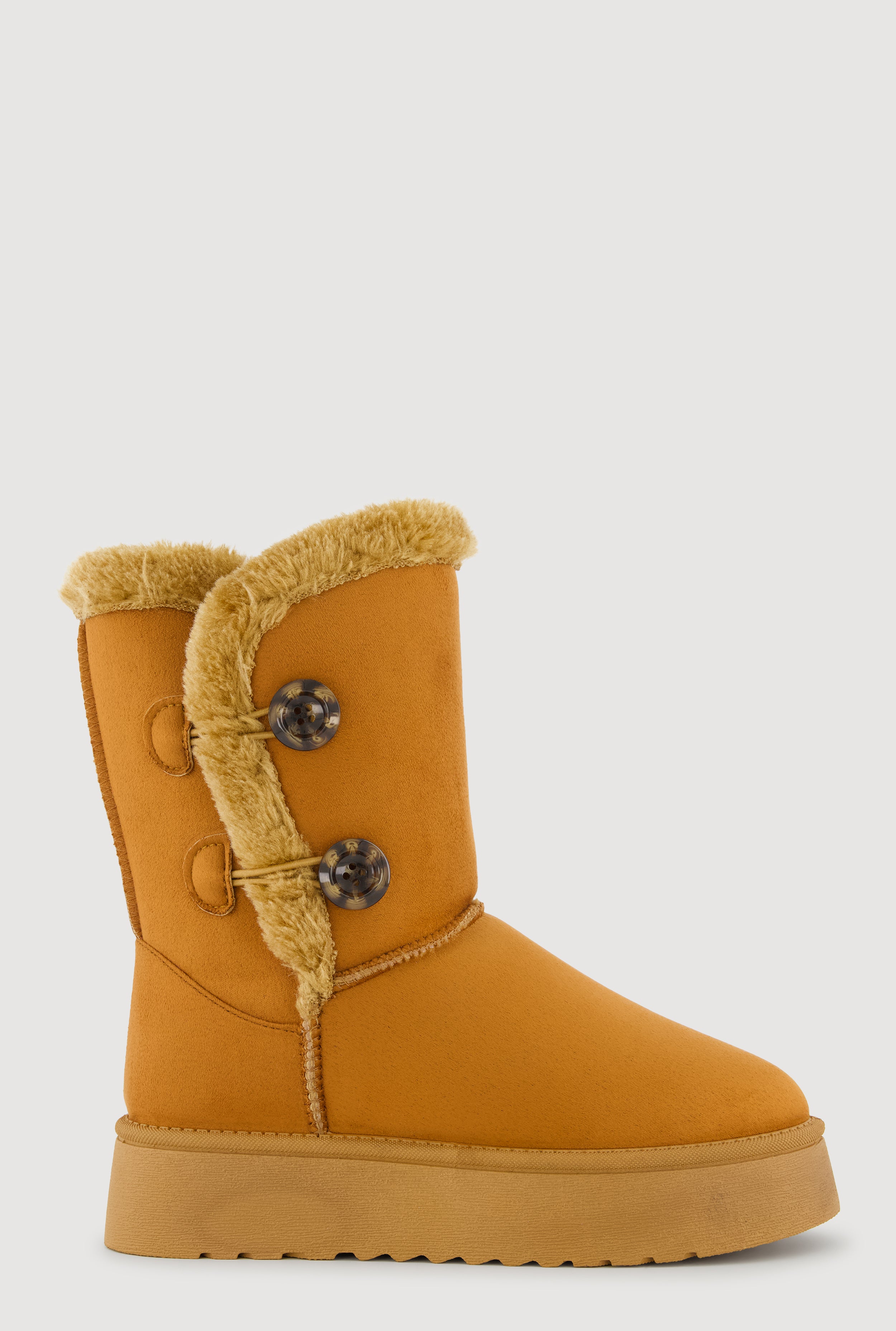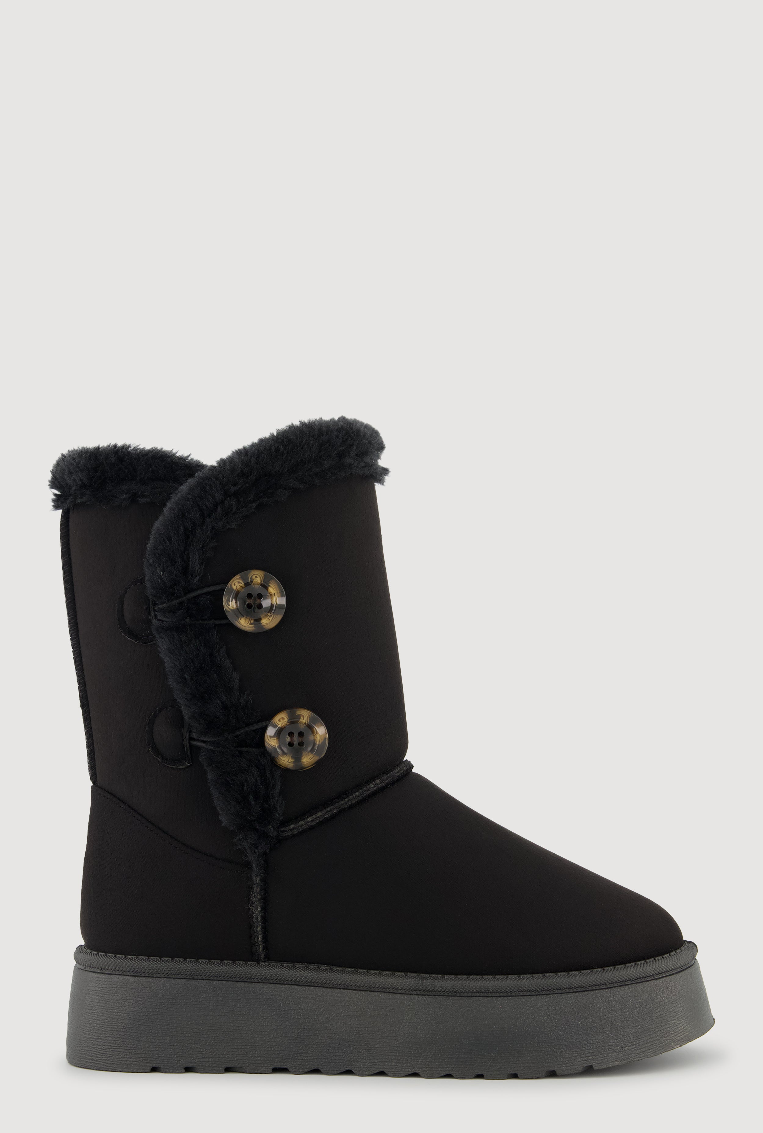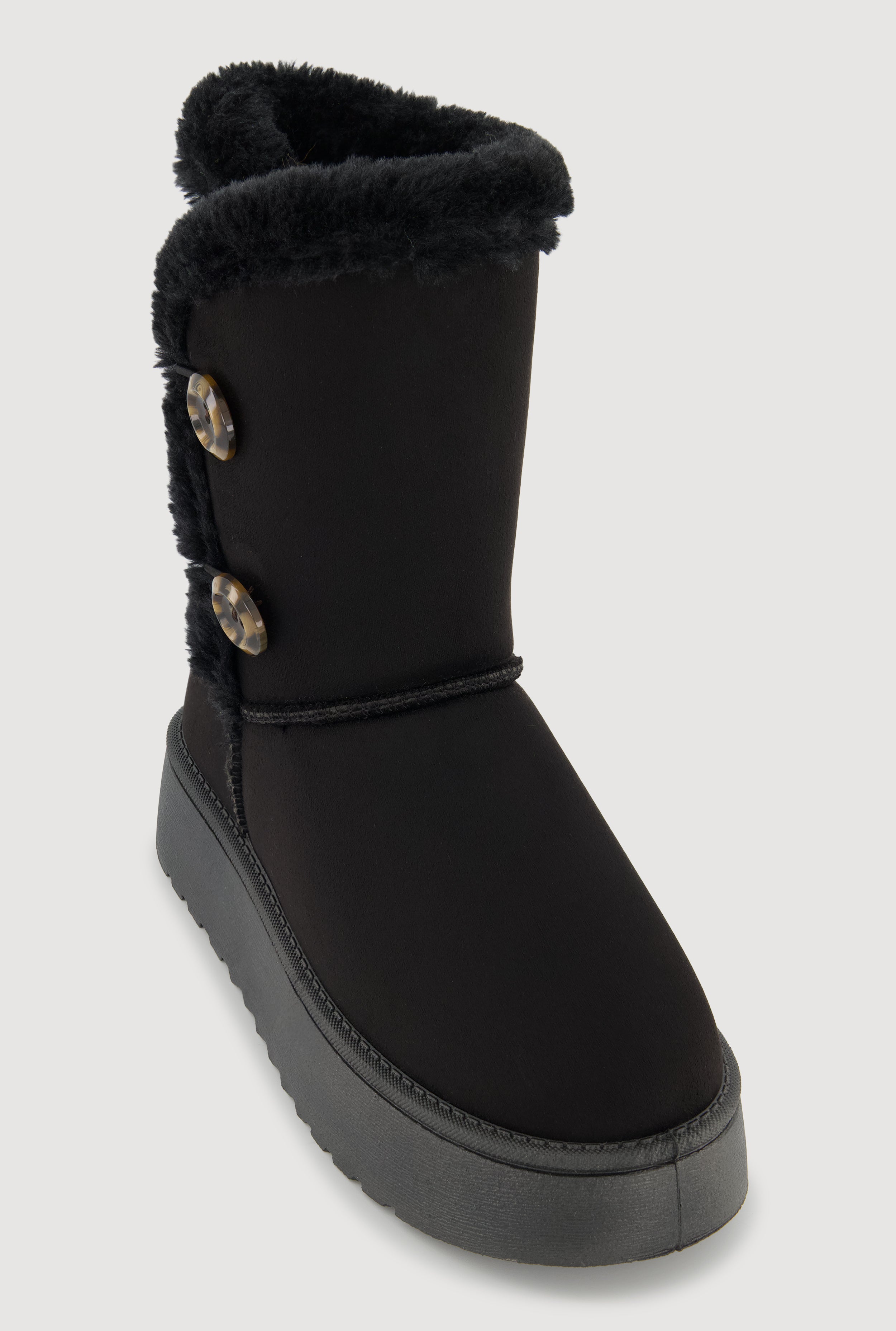 Faux Fur Lined Button Loop Side Mid-Calf Platform Boots