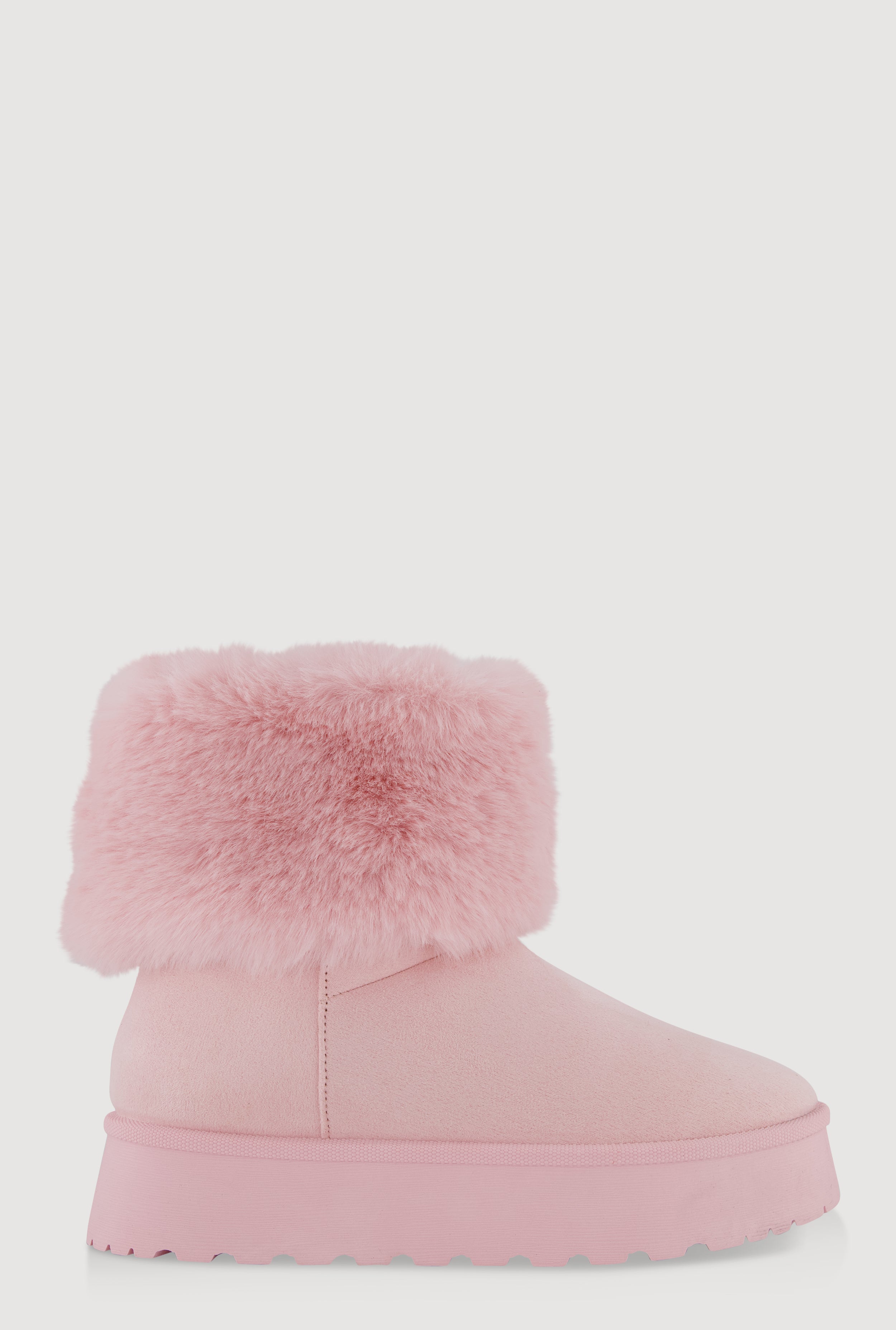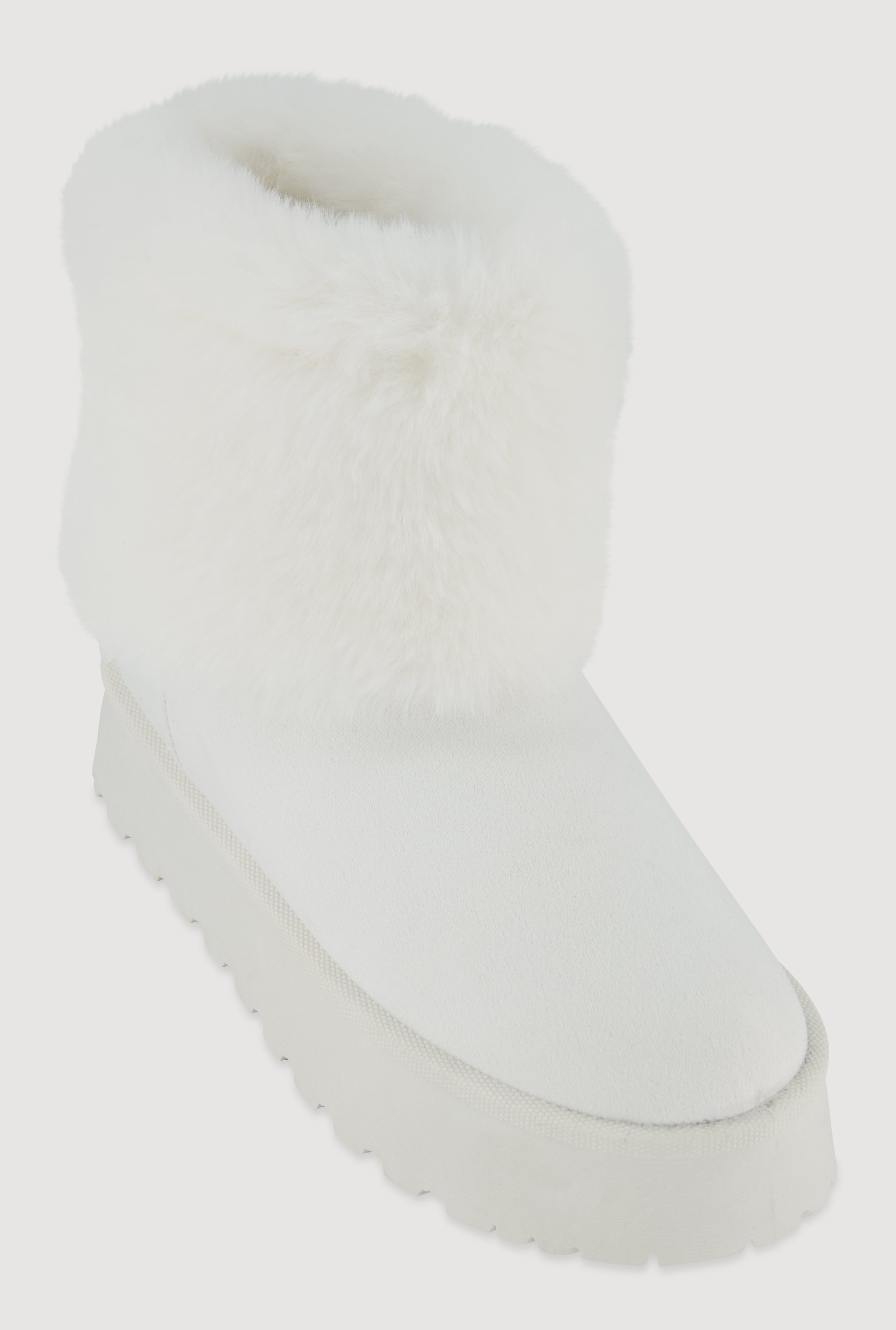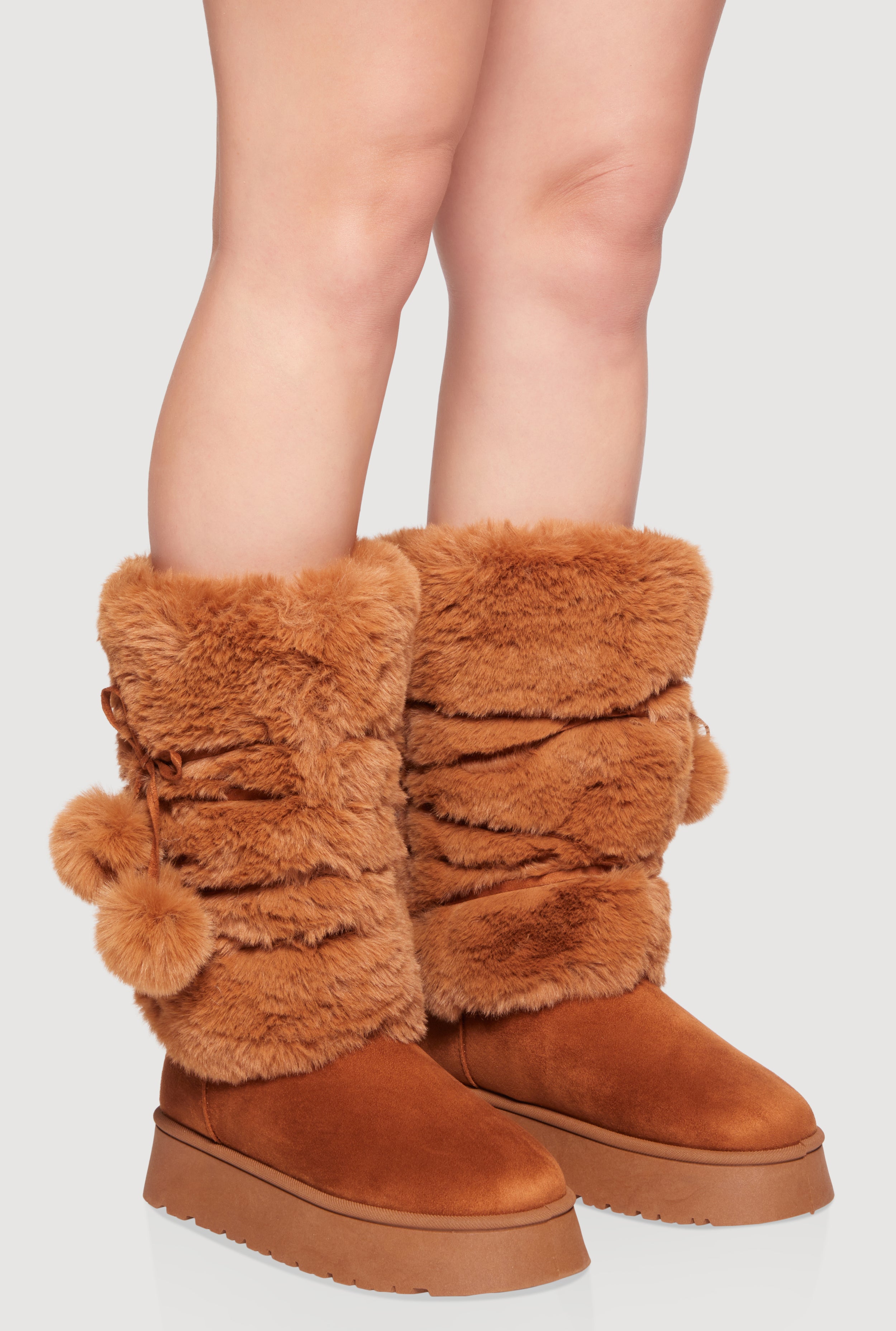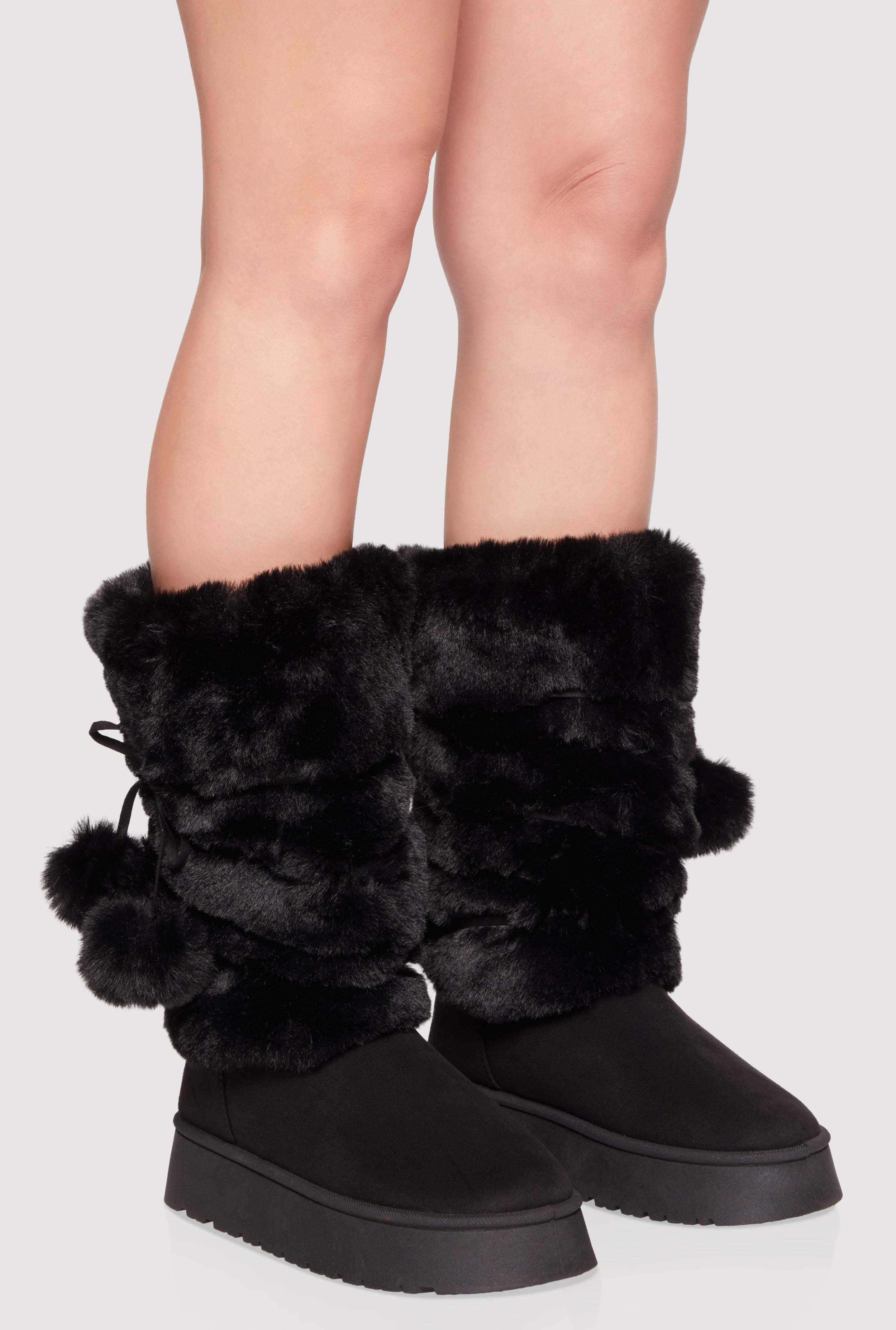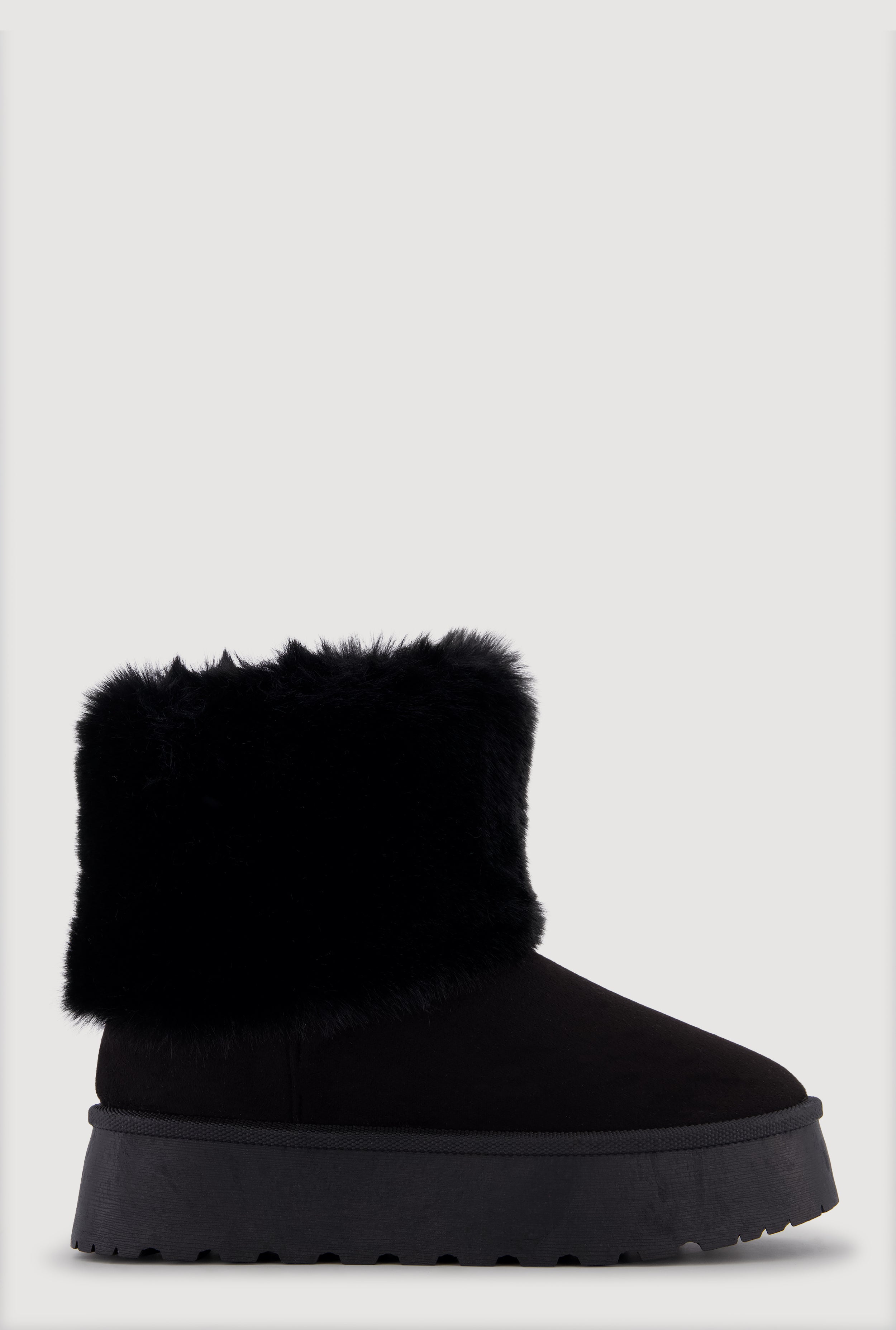 Faux Fur Lined Button Loop Side Mid-Calf Platform Boots