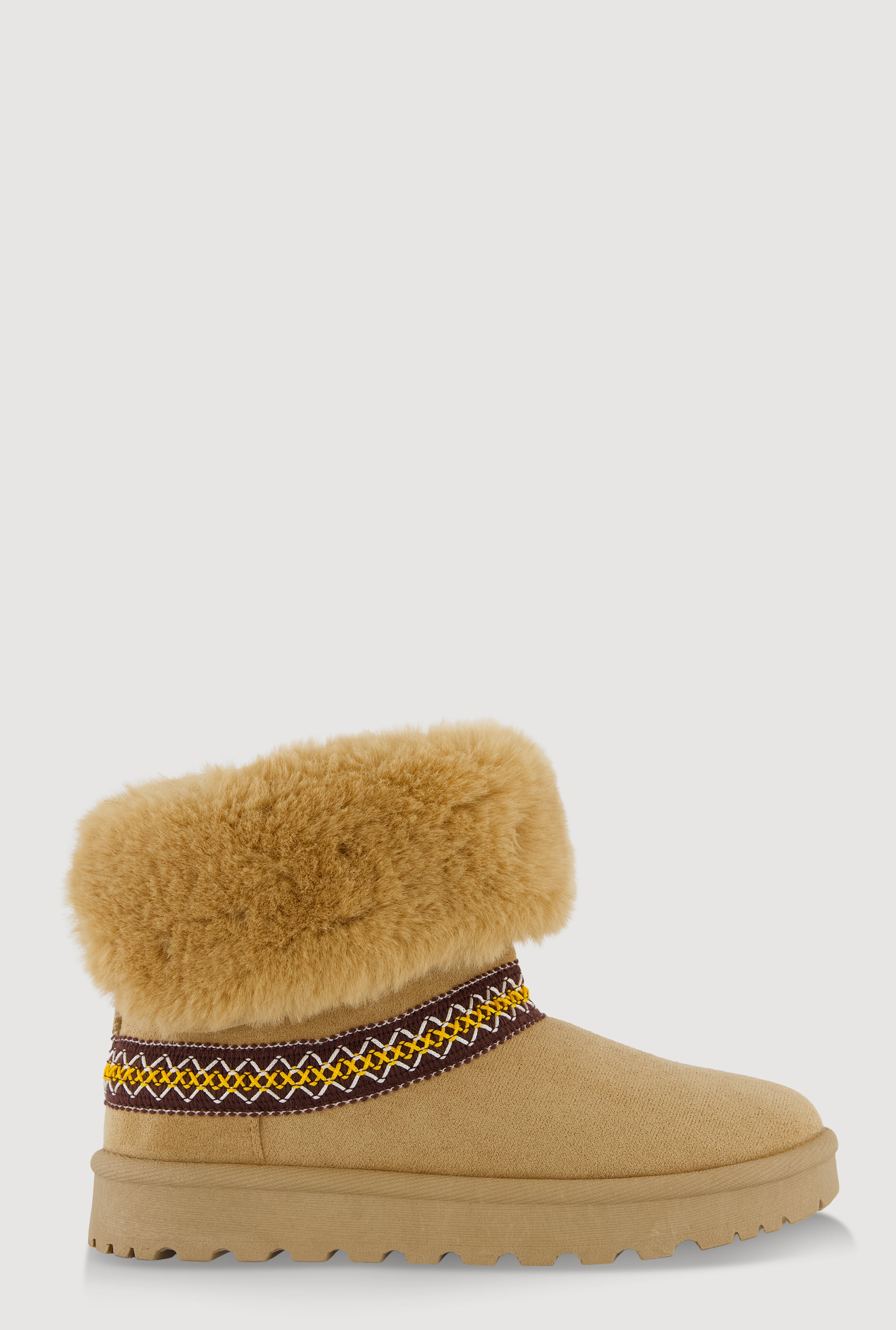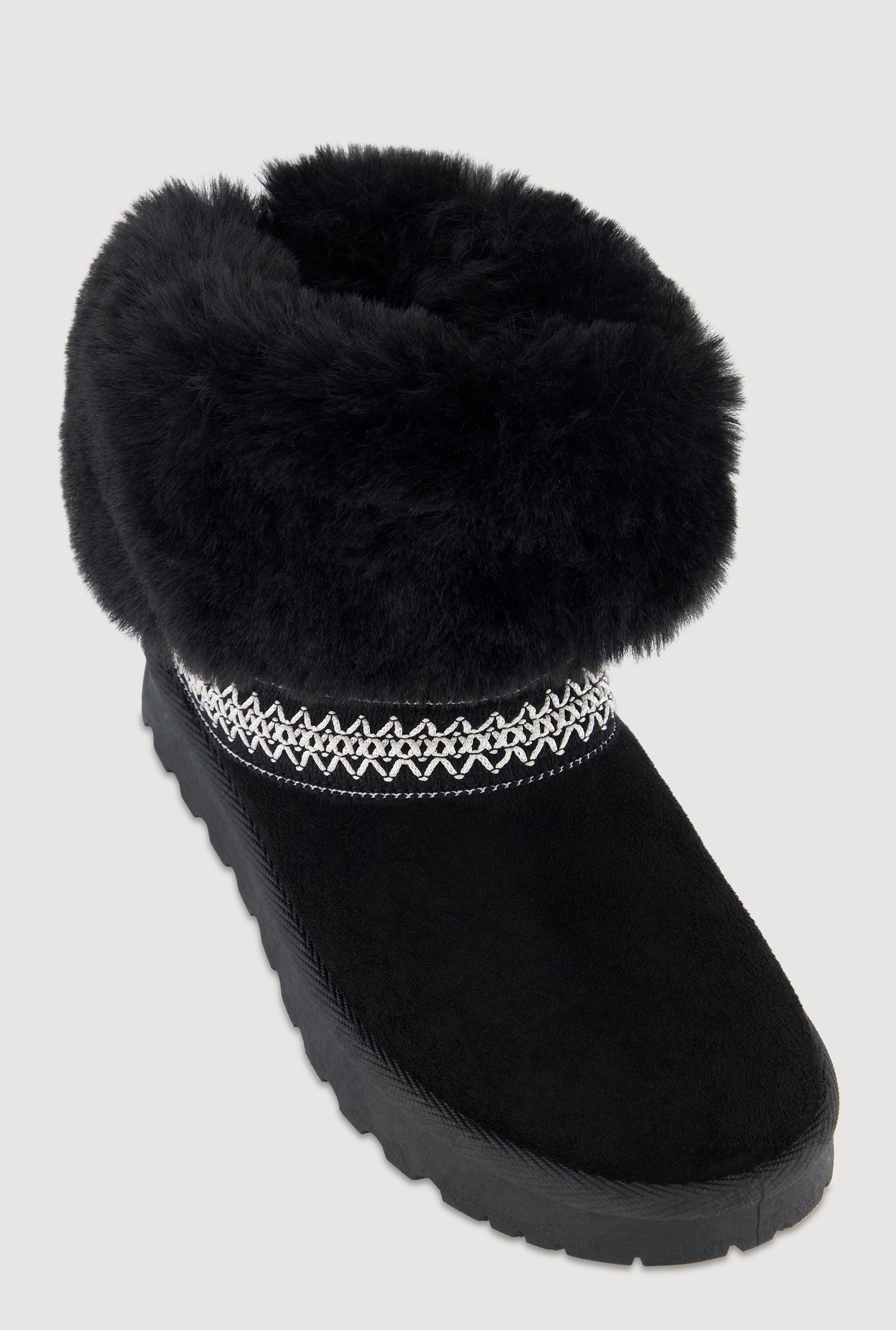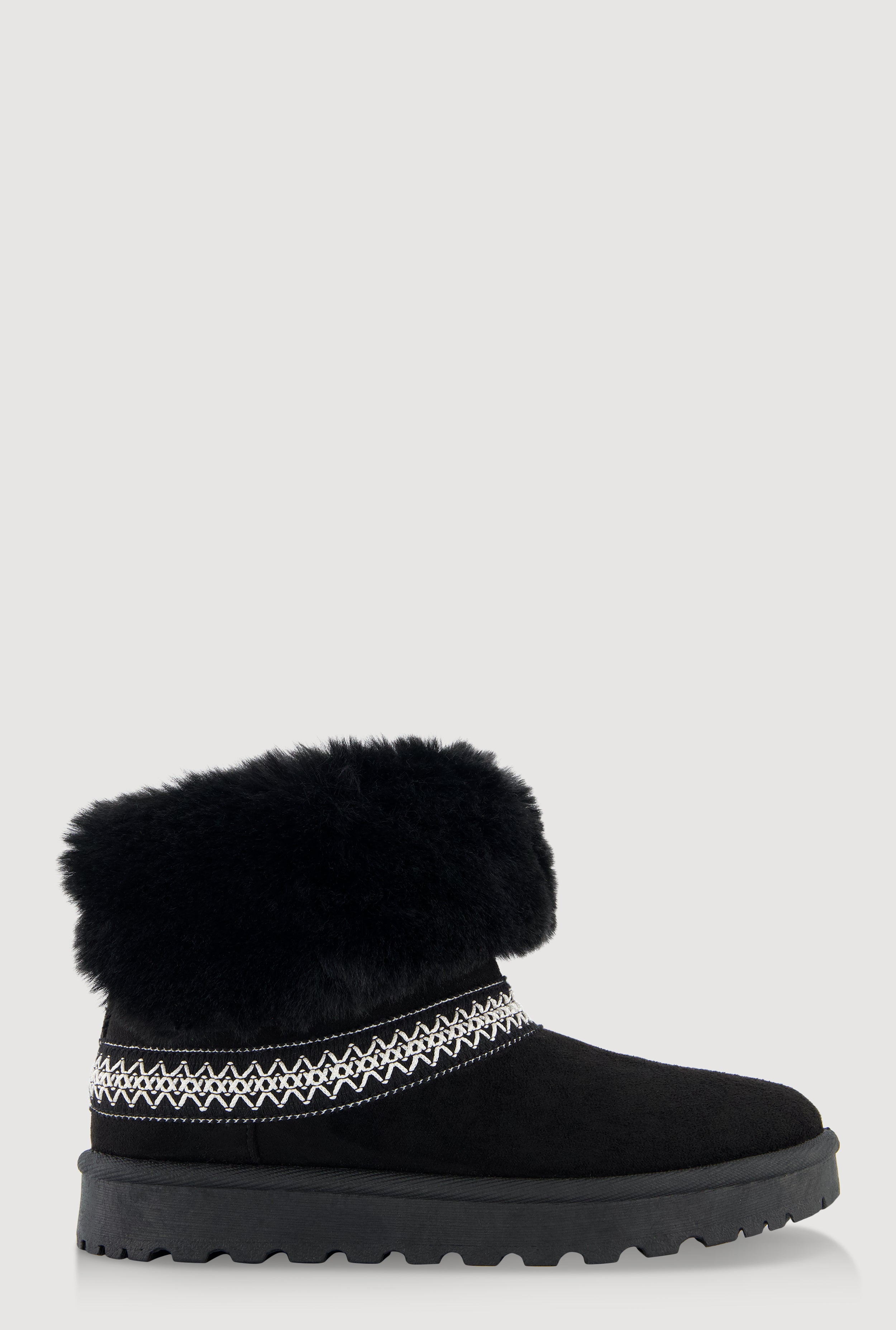 Embroidered Detail Faux Fur Cuff Ankle Boots