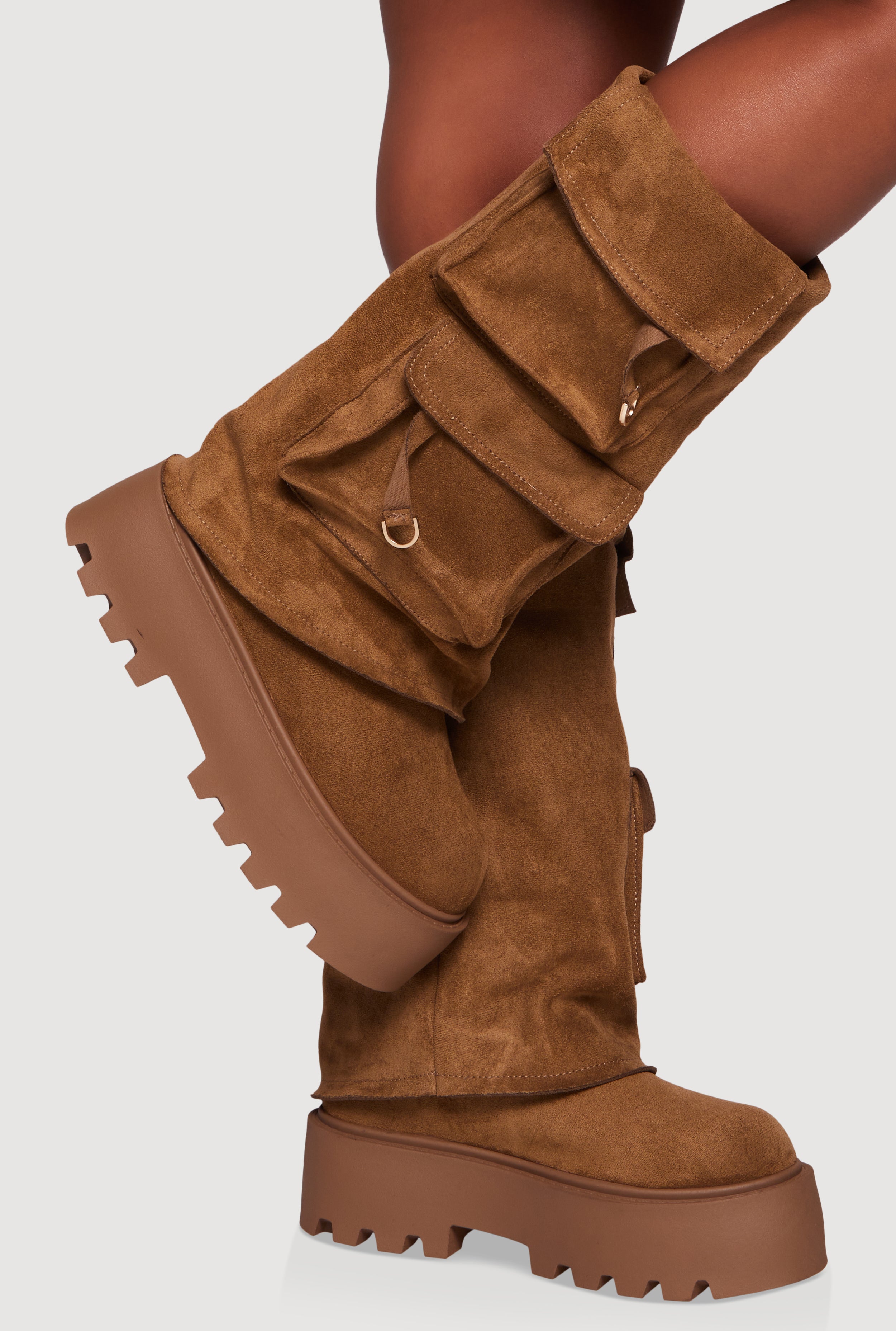 Faux Suede Cargo Pocket Lug Sole Slouch Boots