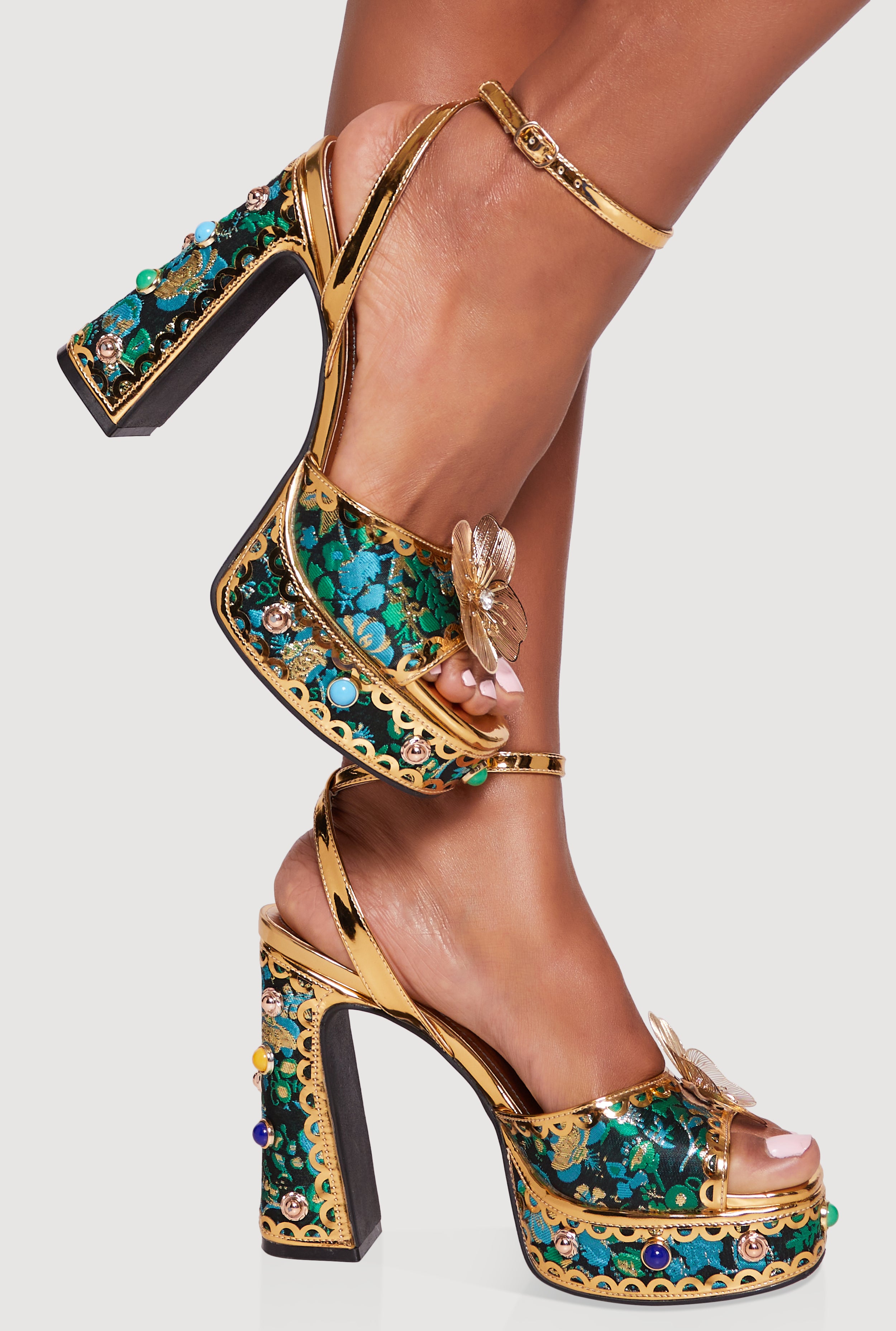Rhinestone Bow Detail Faux Pearl Studded Platform Heels